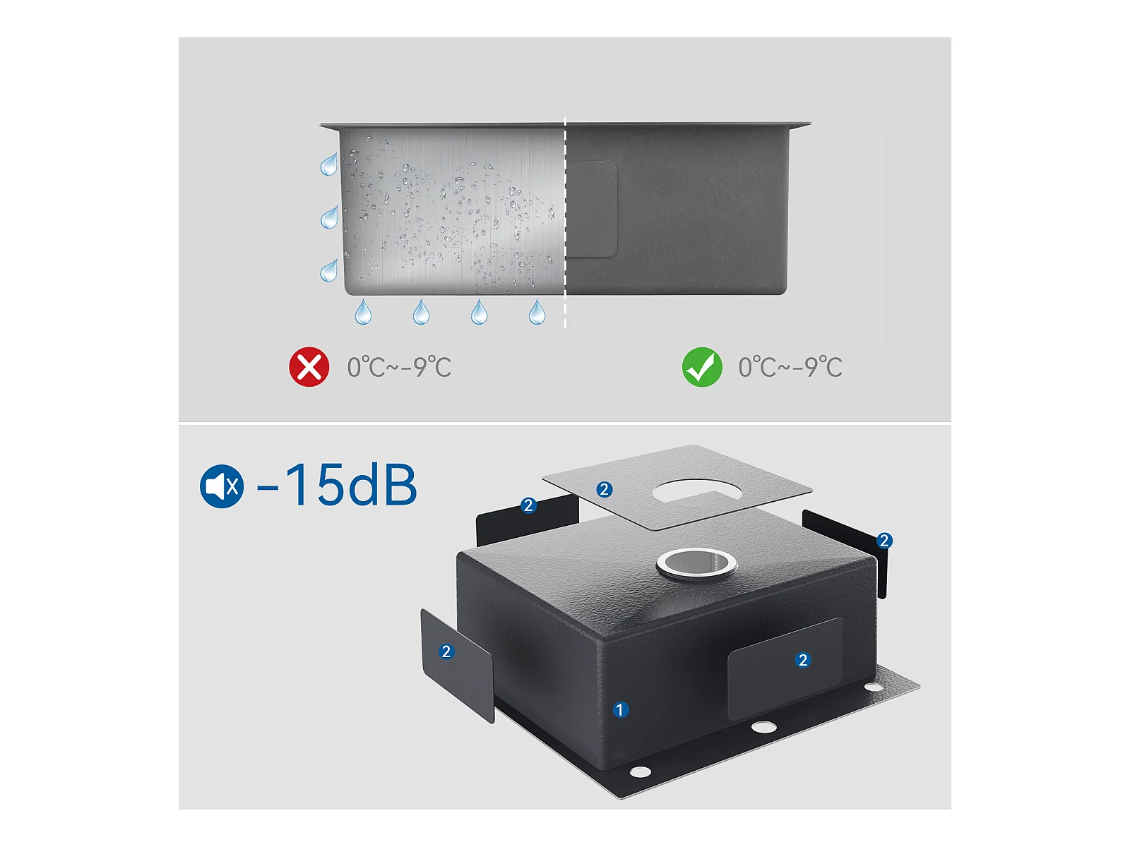 Évier Encastré 44x44x20CM- Évier de Cuisine 1 Bac en Acier Inoxydable 304,Argent+robinet de cuisine rétractable à deux fonctions, chromé