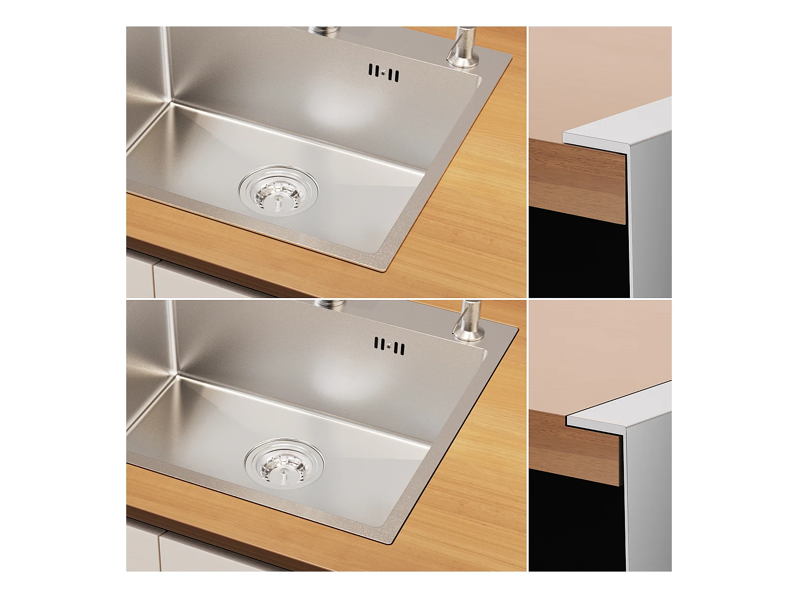 Evier Cuisine 1 Bac 54*49*20 CM,Inox 304,Evier à Encastrer/à Fleur de Plan avec Distributeur de Savon,Lavabo Cuisine avec 3 Trous,Nanoargent