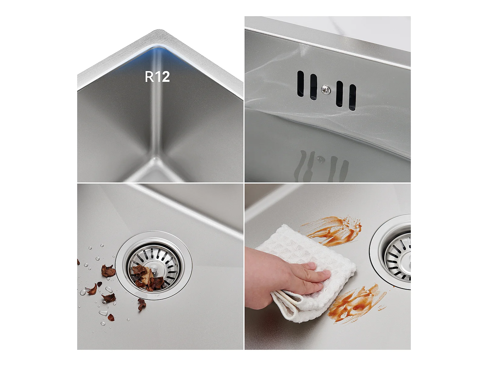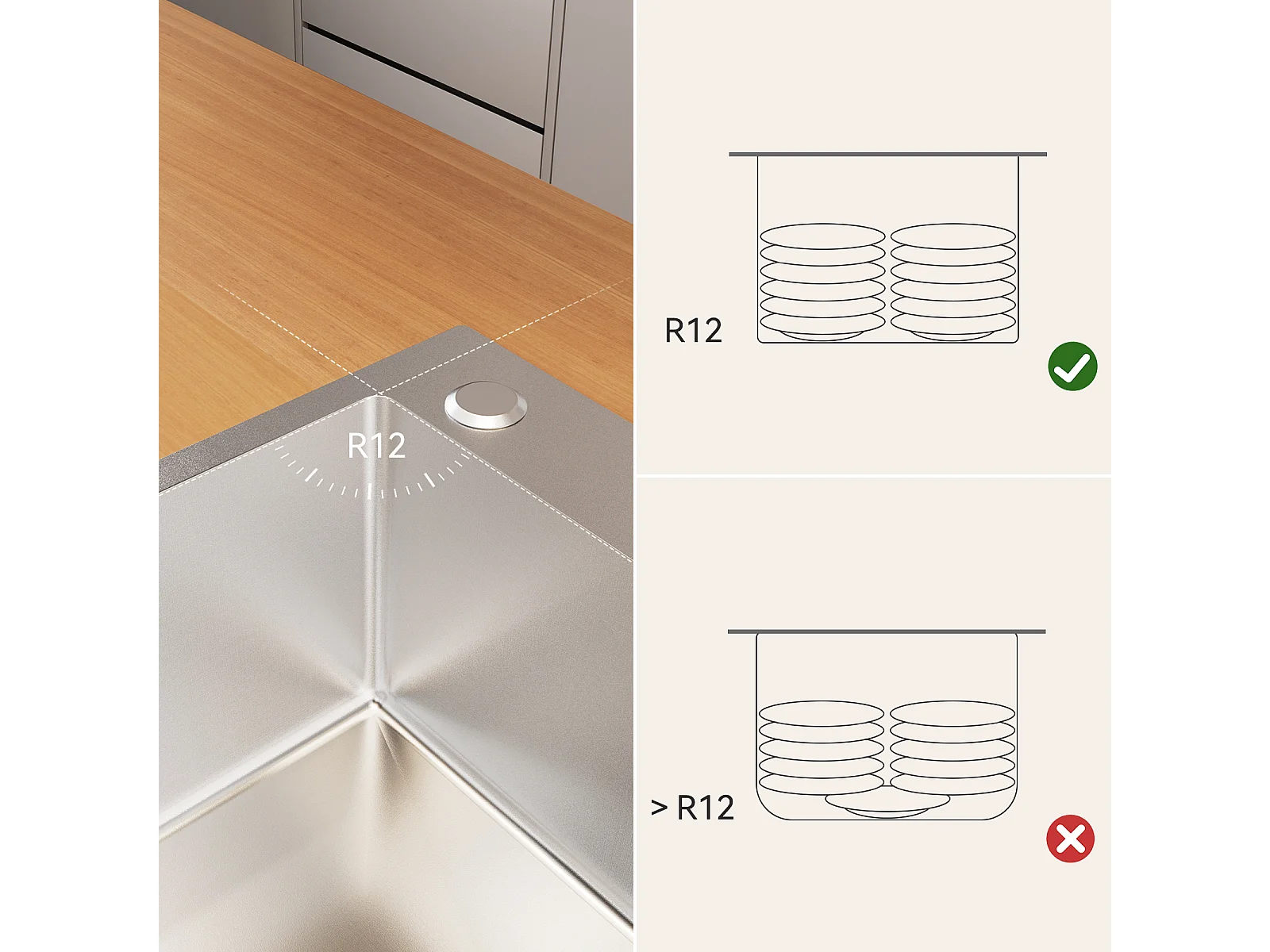 Évier Encastré 44x44x20CM- Évier de Cuisine 1 Bac en Acier Inoxydable 304,Argent+Mitigeur Cuisine avec Douchette Extractible Rotatif 360°