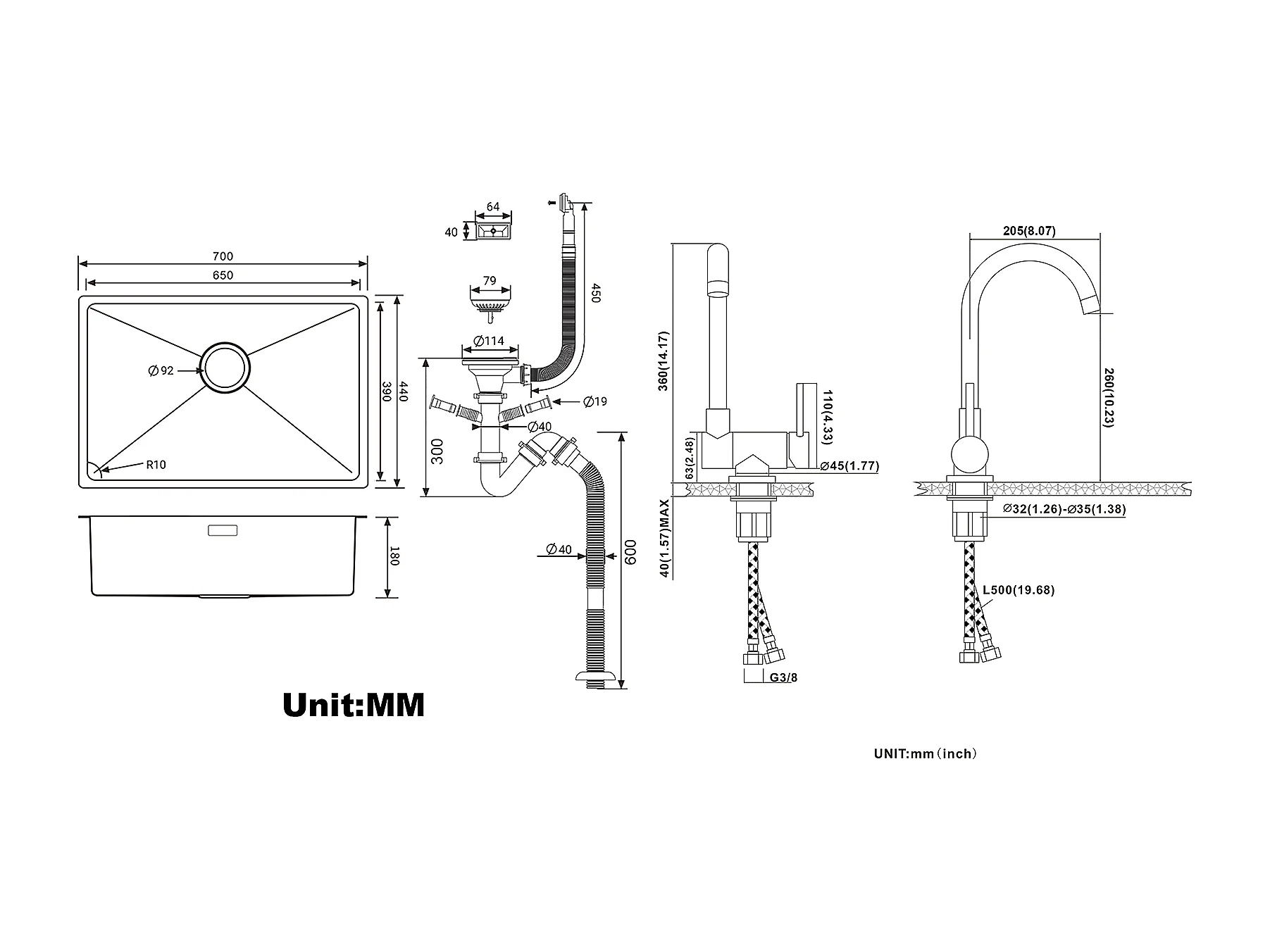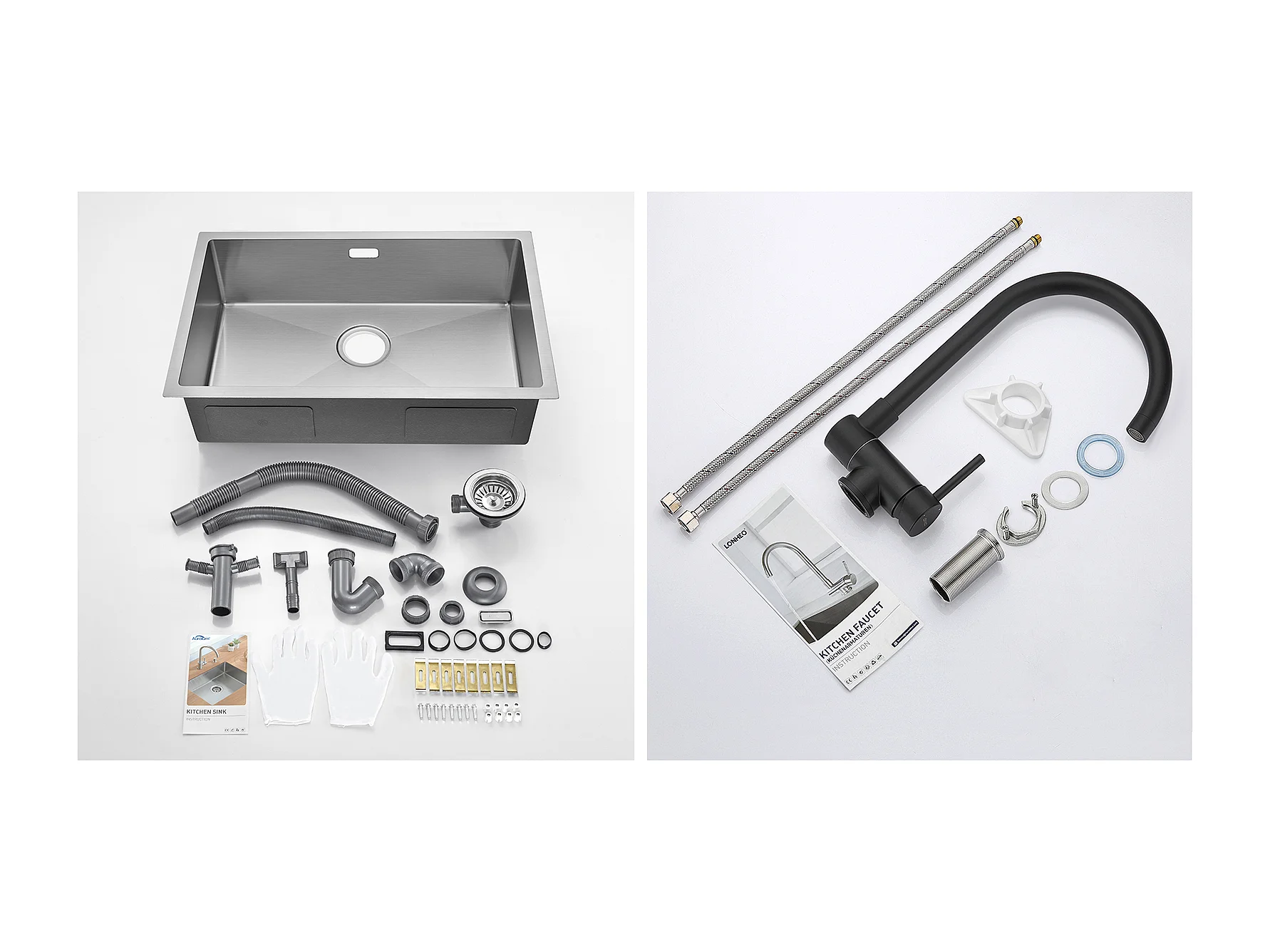 Évier Cuisine 1 Bac 70*44*19CMà Encastrer/Fleur/Sous-Plan,avec Siphon/Trop-Plein+Mitigeur Cuisine en Acier Inox 304 Rabattable Pivotant à 360°Noir