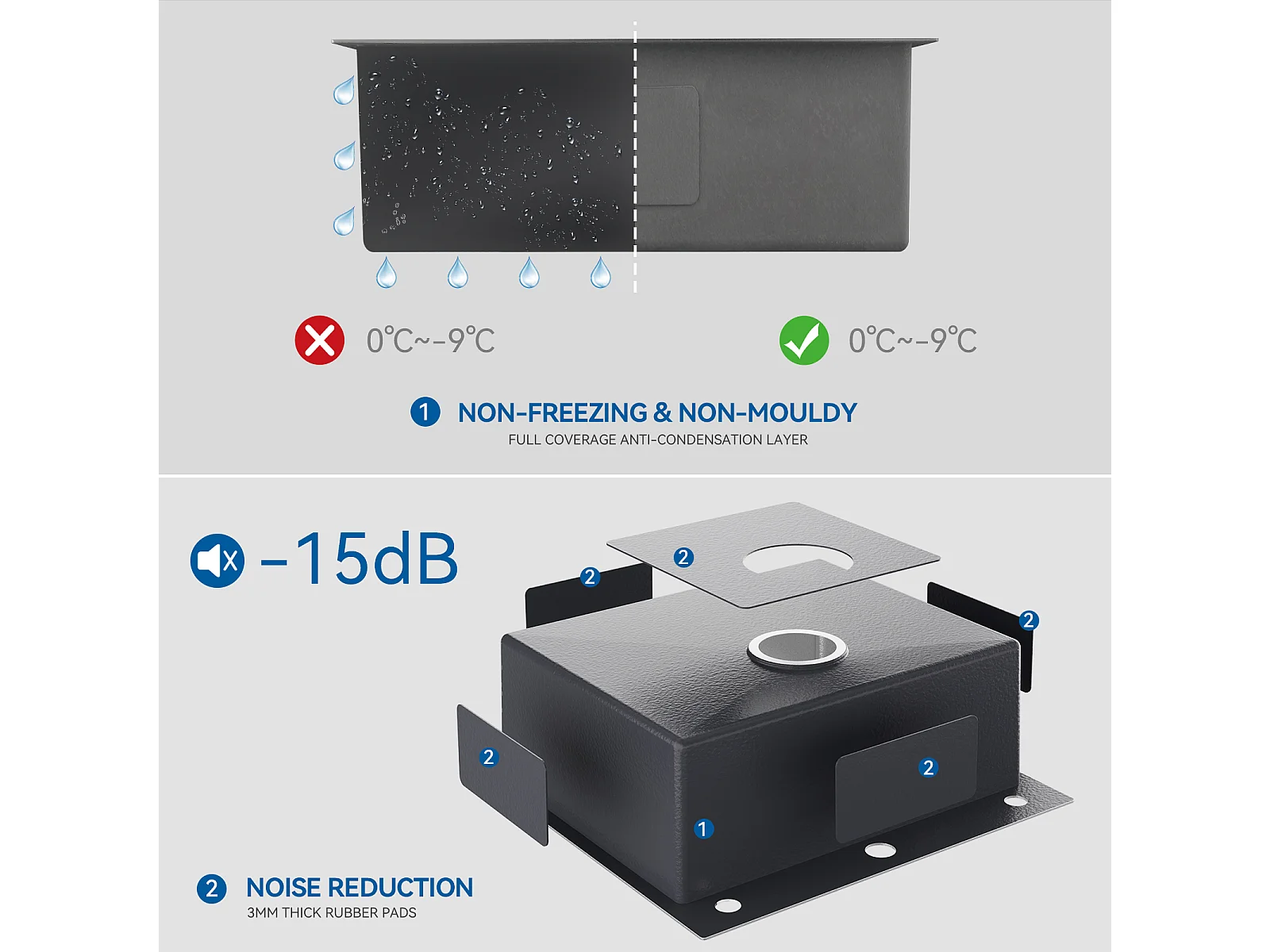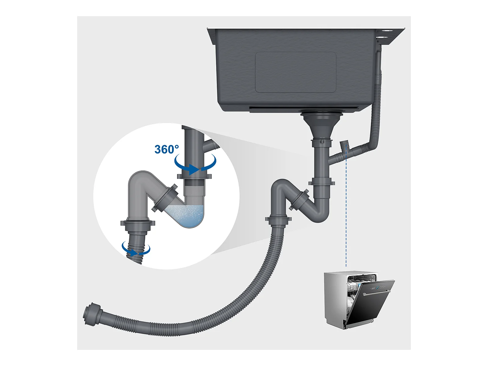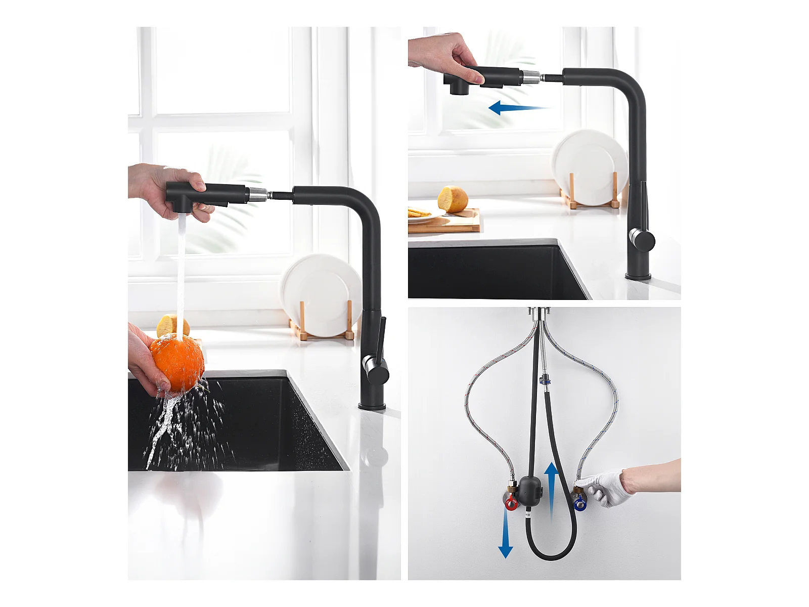 Evier Cuisine 1Bac 54*49*20 CM,Inox,Noir Gris,Evier avec Distributeur Savon+Robinet Cuisine avec Douchette Extractible,Rotatif 360°,Noir