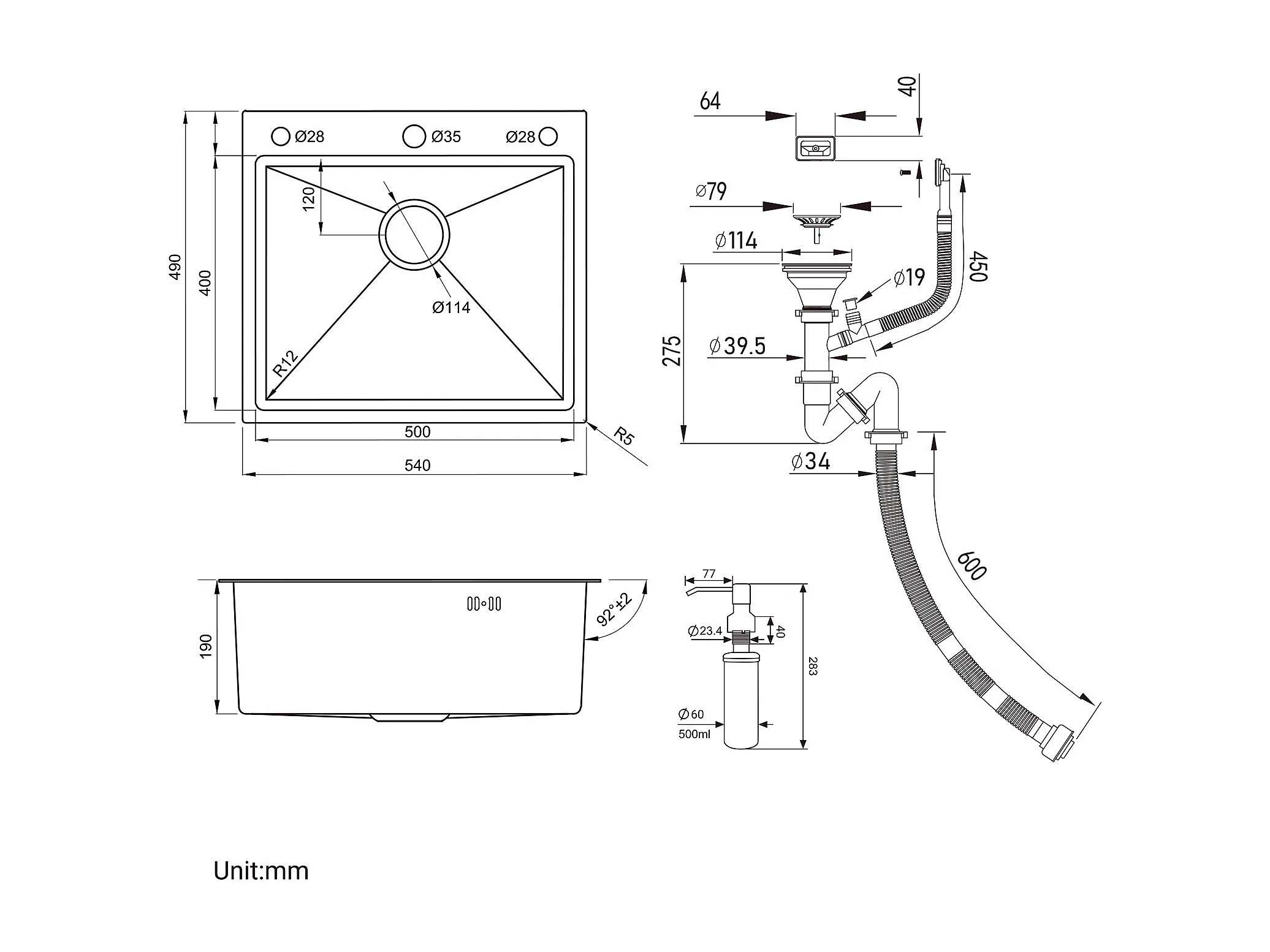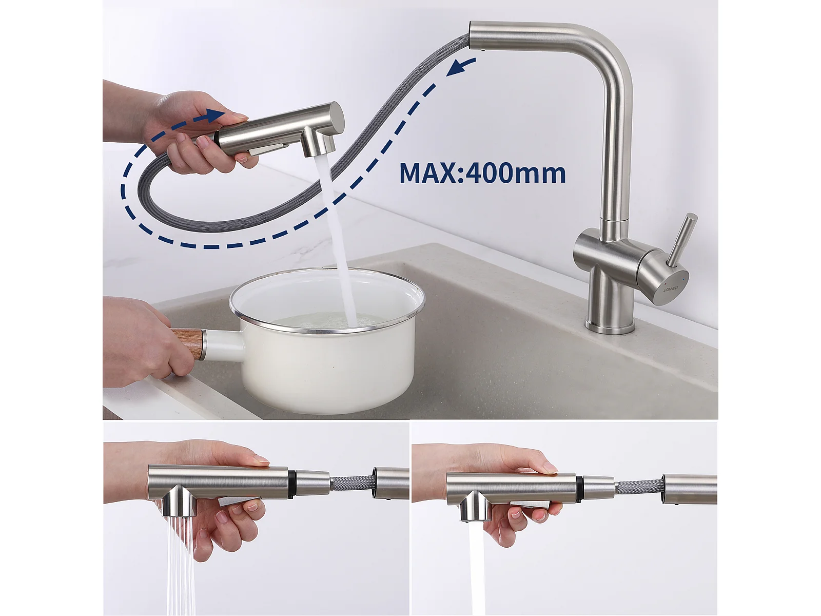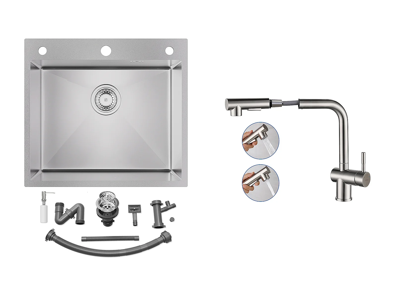 Evier Cuisine 54*49*20 CM,à Encastrer/à Fleur de Plan avec Distributeur Savon,Argent+Robinet Cuisine Douchette Extractible Deux Jets