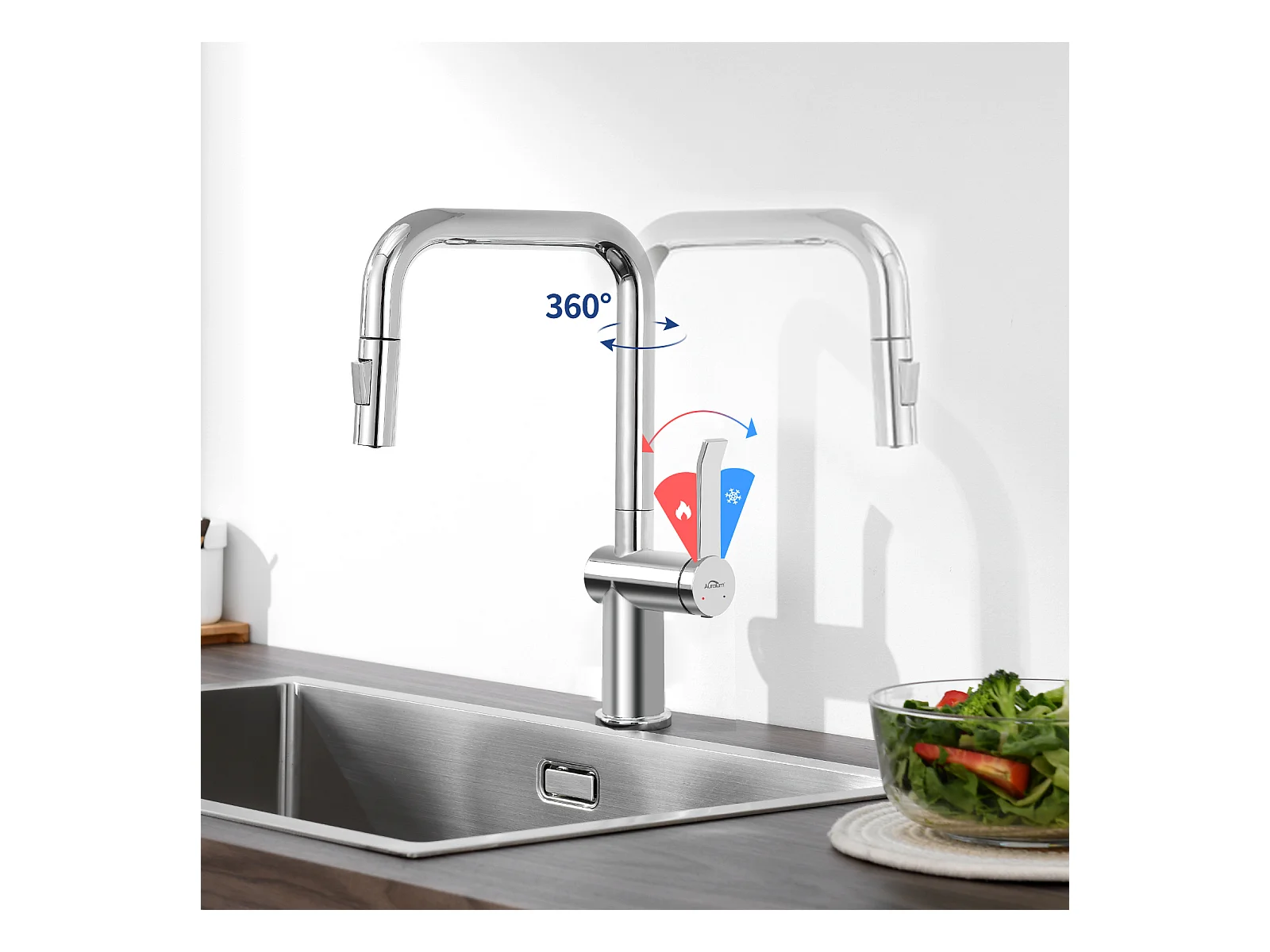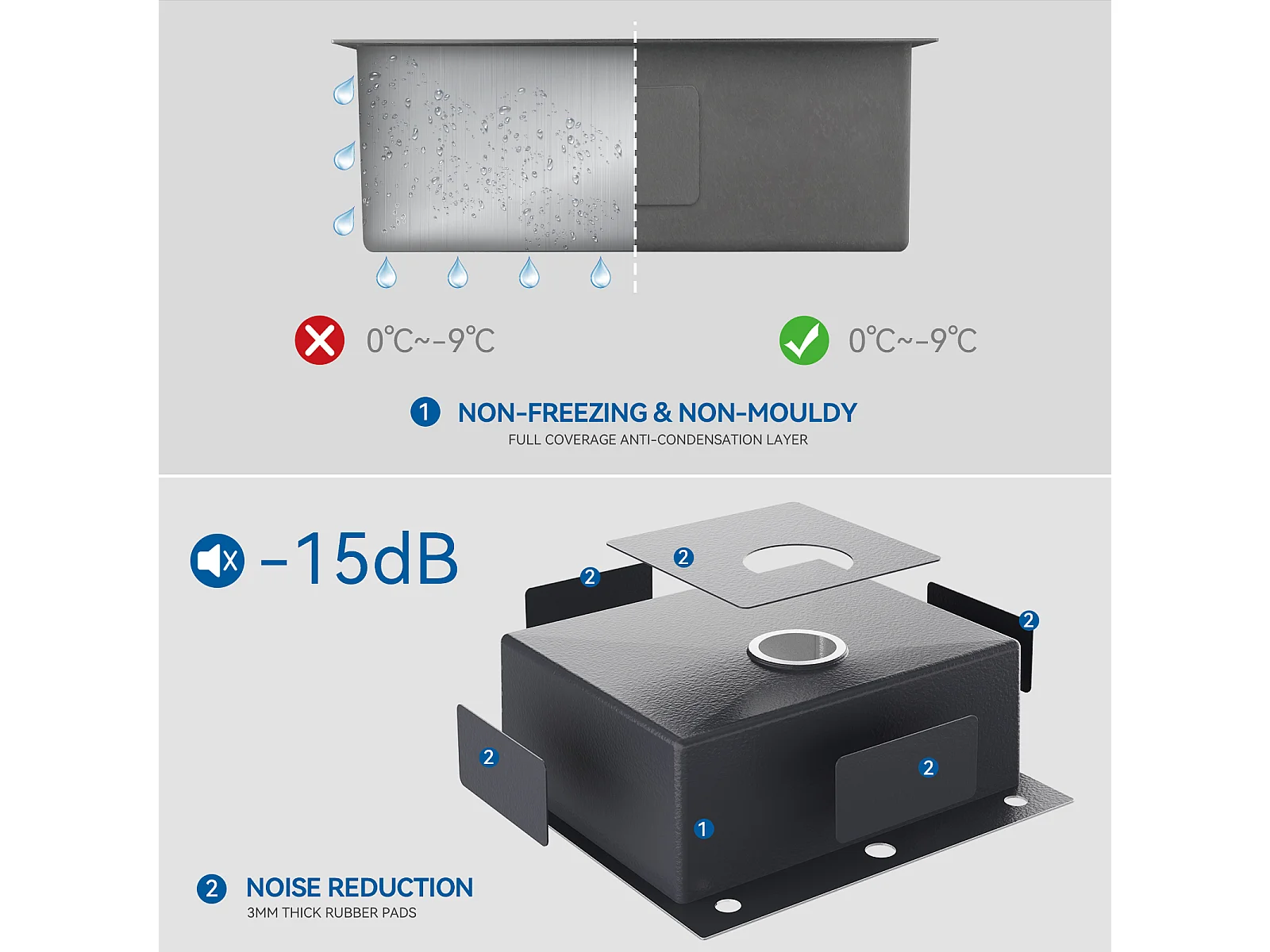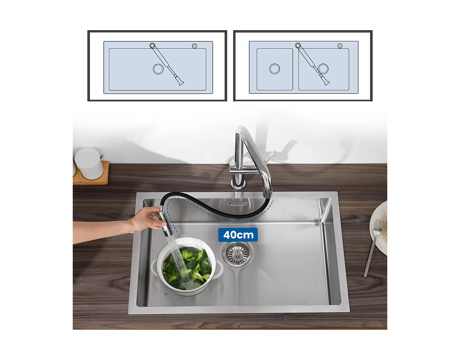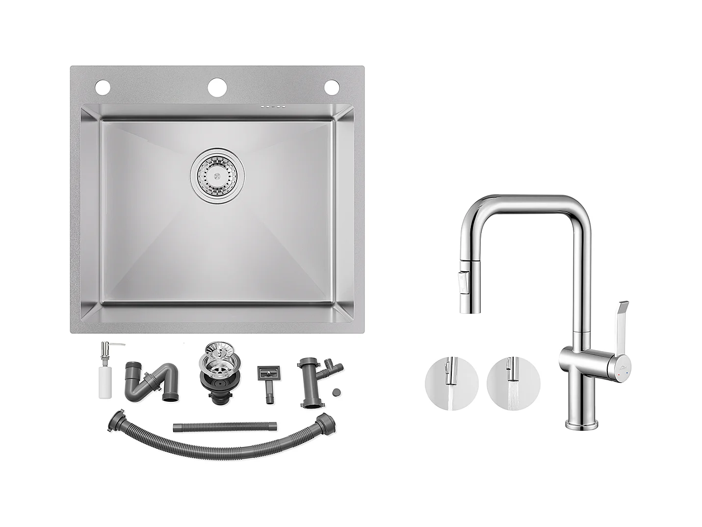 Evier Cuisine 54*49*20 CM,à Encastrer/à Fleur de Plan avec Distributeur Savon,Argent+Robinet de Cuisine avec Douchette Extractible,Chromé