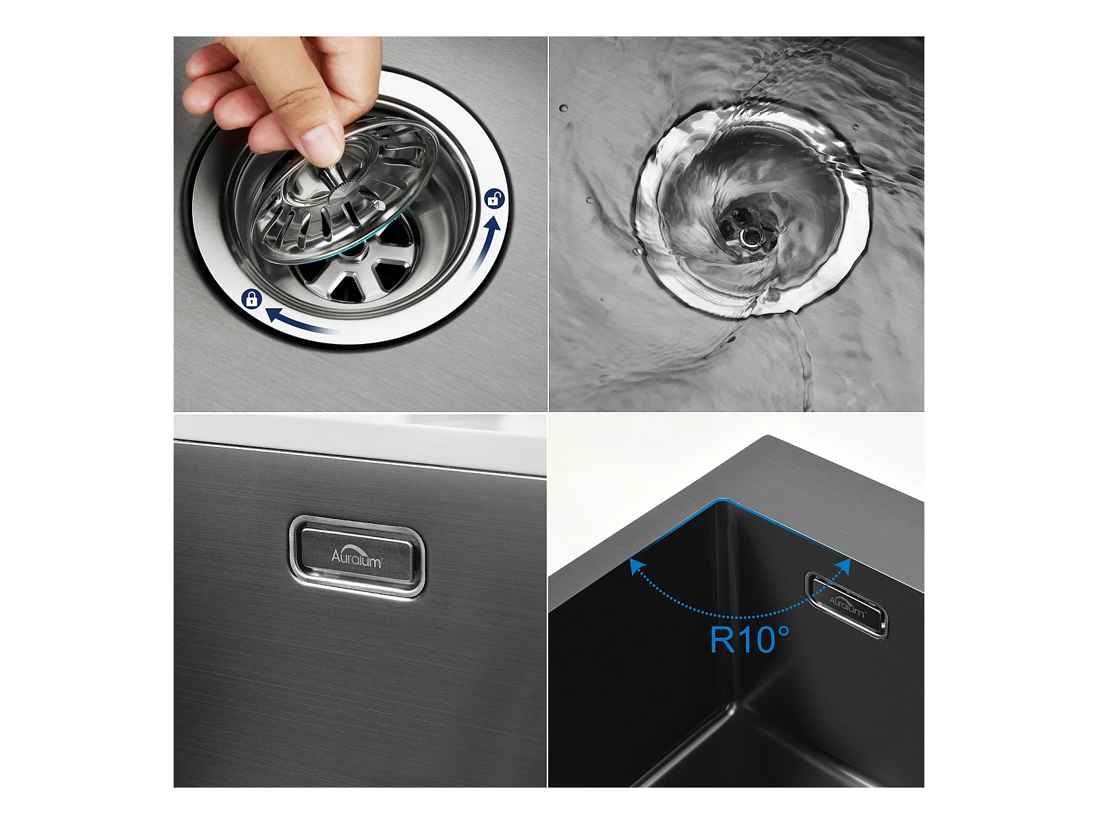 Évier Cuisine Noir 1 Bac 45x45CM Inox ,encastré/à Poser+Robinet Cuisine avec Douchette Extractible, Eau Froide/ Chaude,Bec en Forme U,Noir