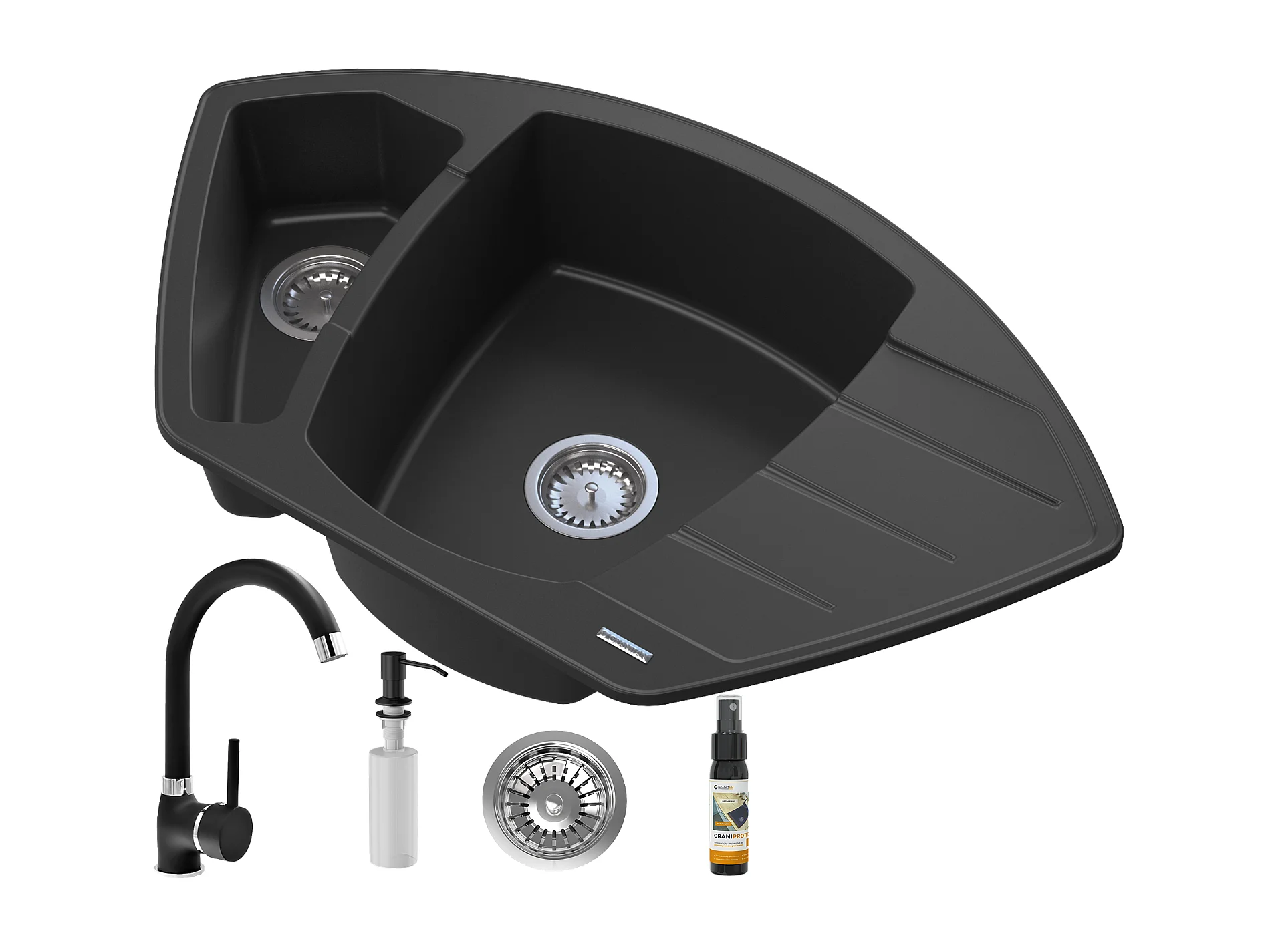 ÉVIER D'ANGLE EN GRANIT+BOÎTIER+DISTRIBUTEUR 7 COULEURS