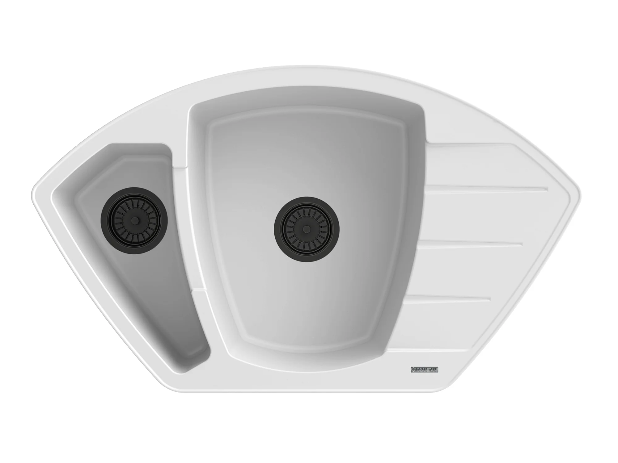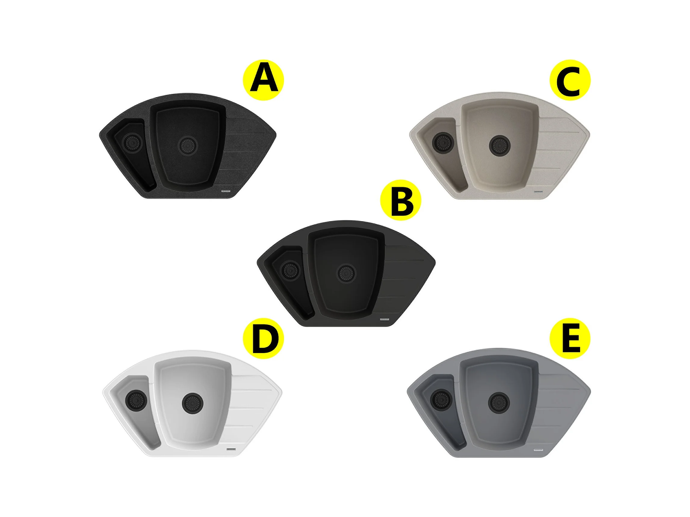ÉVIER D'ANGLE EN GRANIT SIPHON NOIR COMPACT