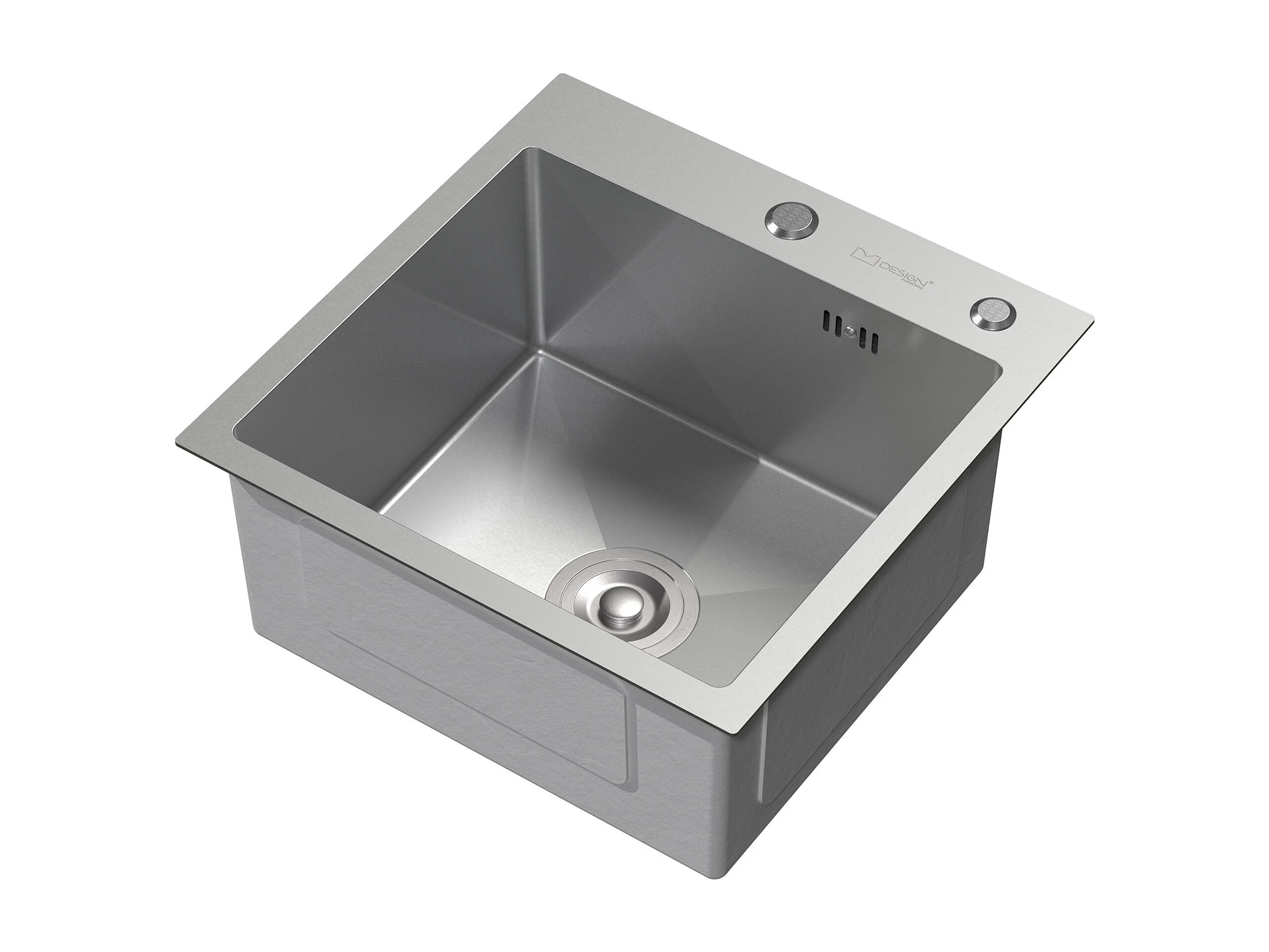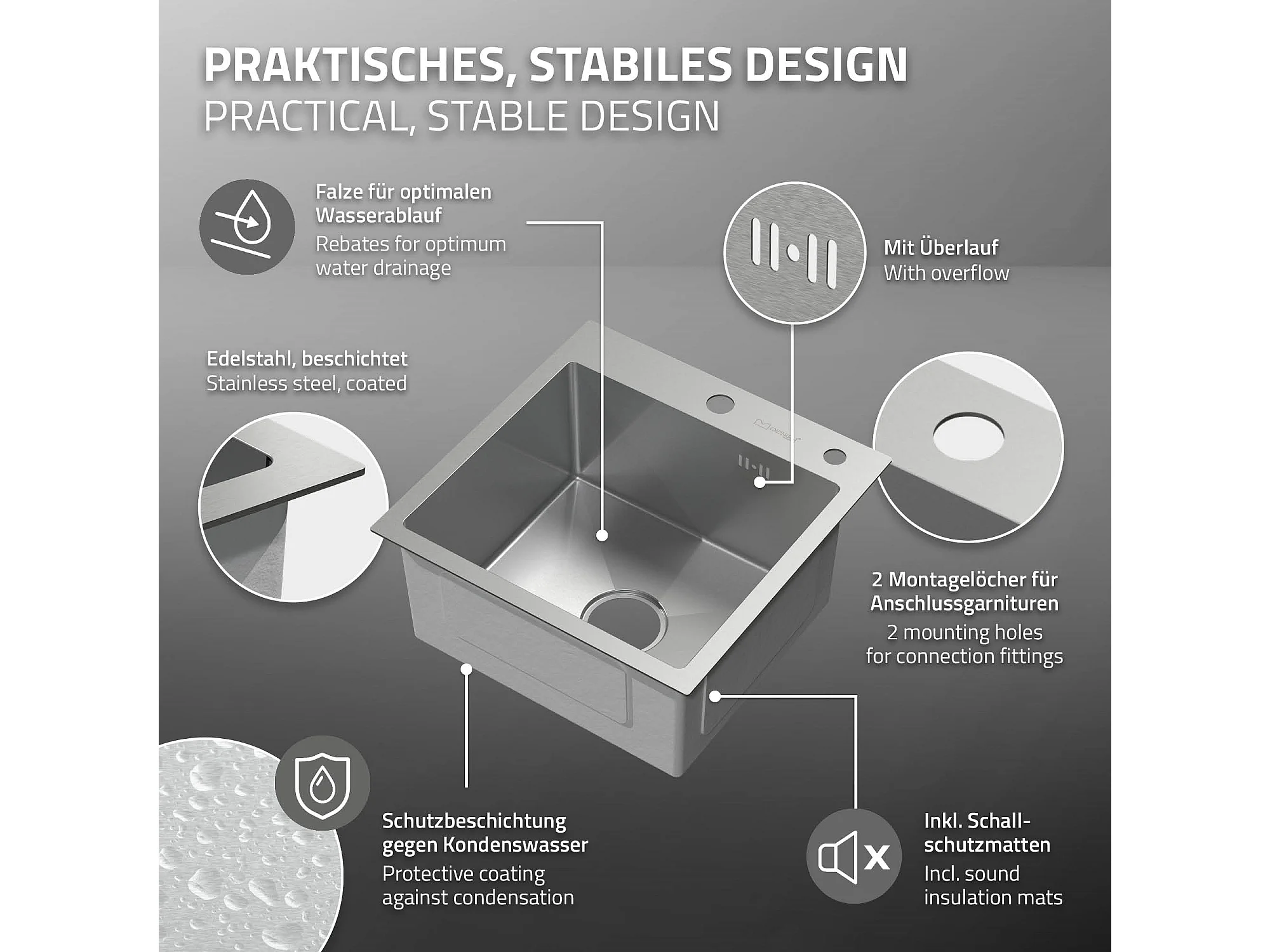 Évier de cuisine à encastrer en acier 45x45 cm avec 2 trous vidage et trop plein