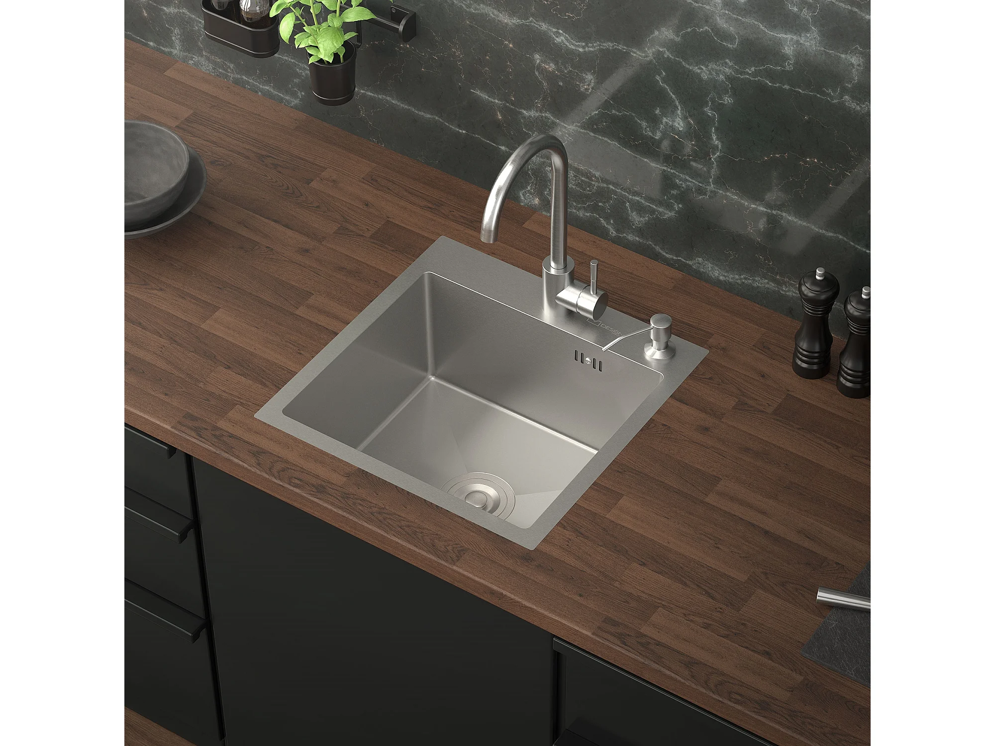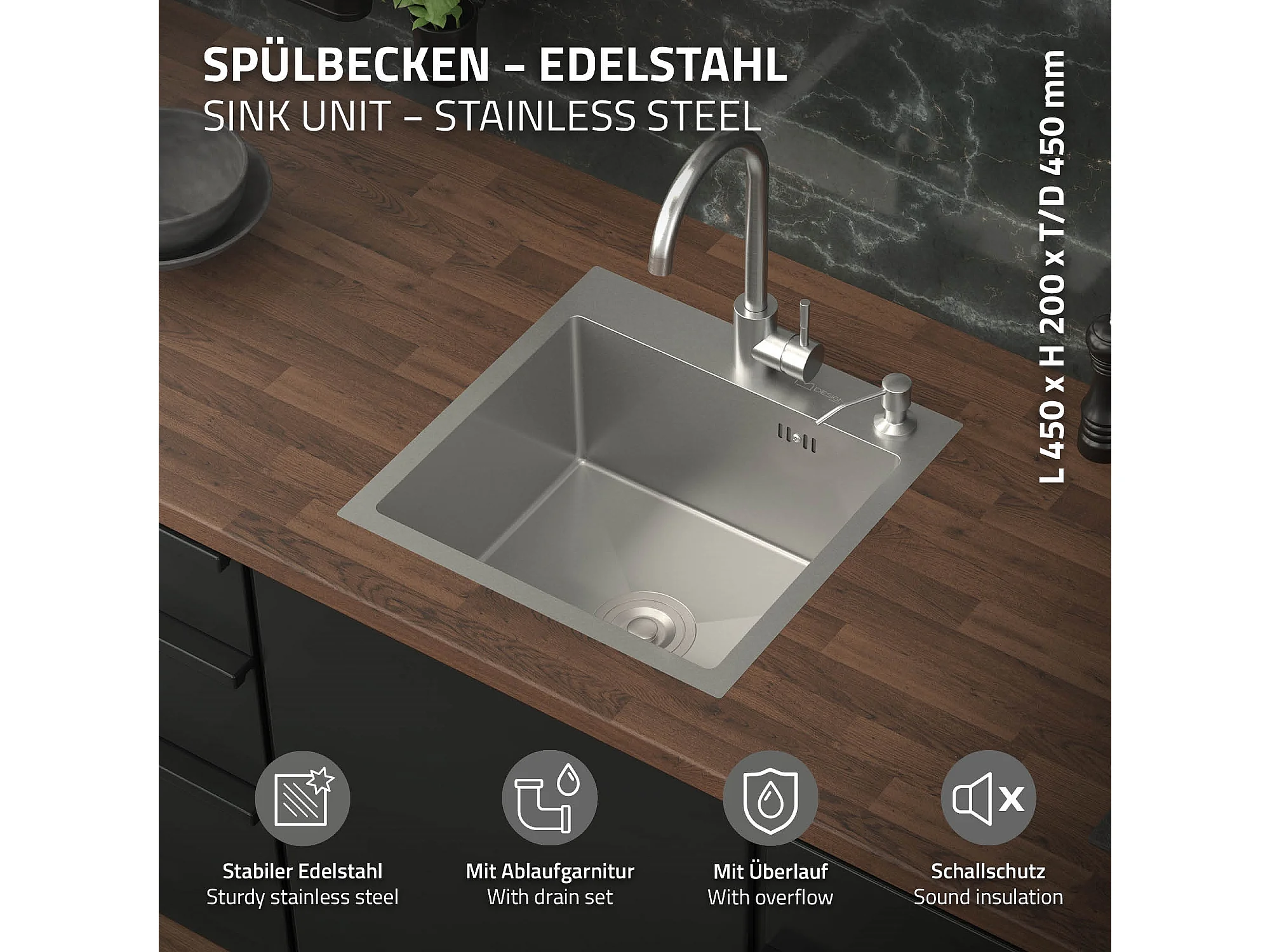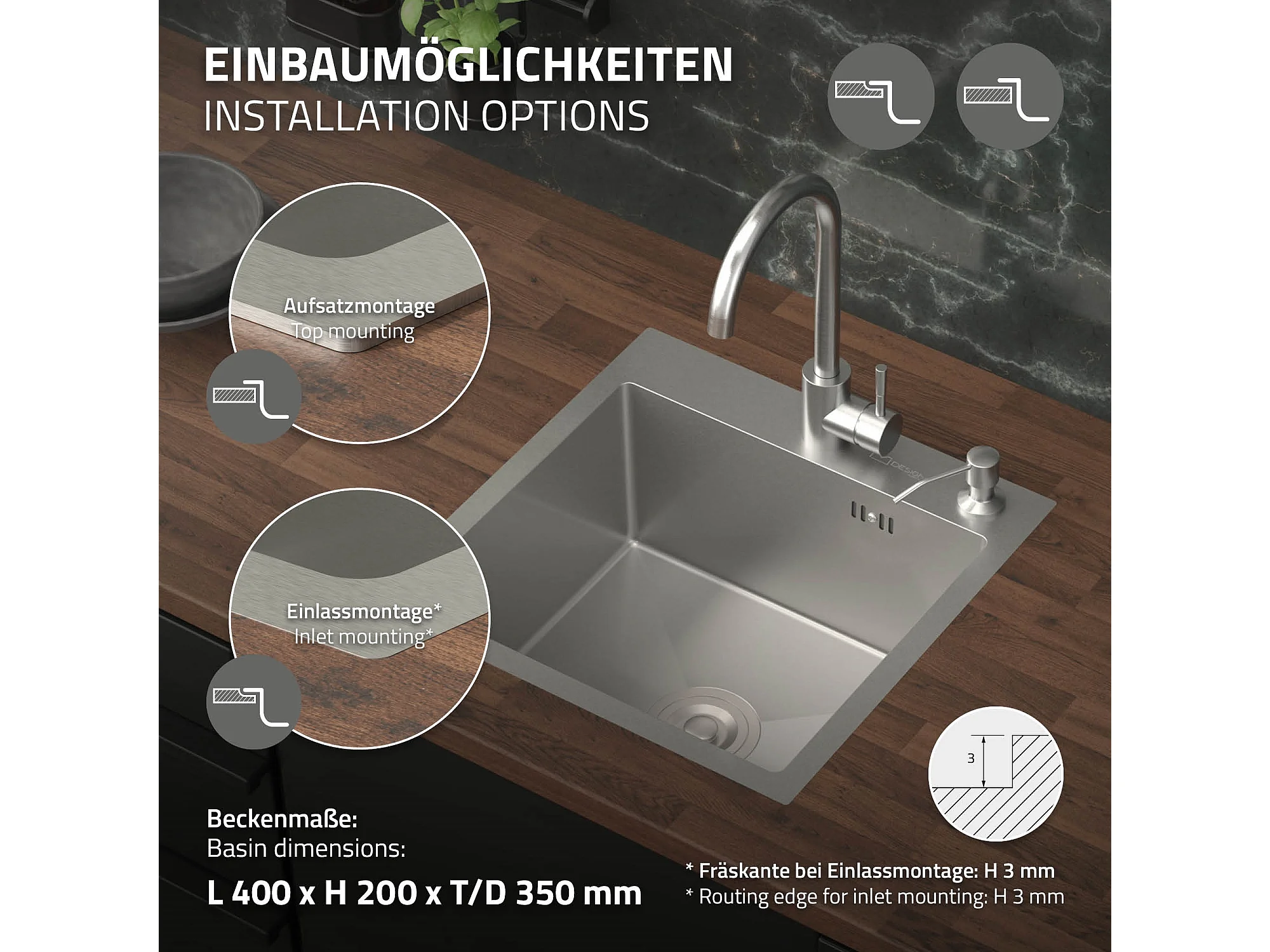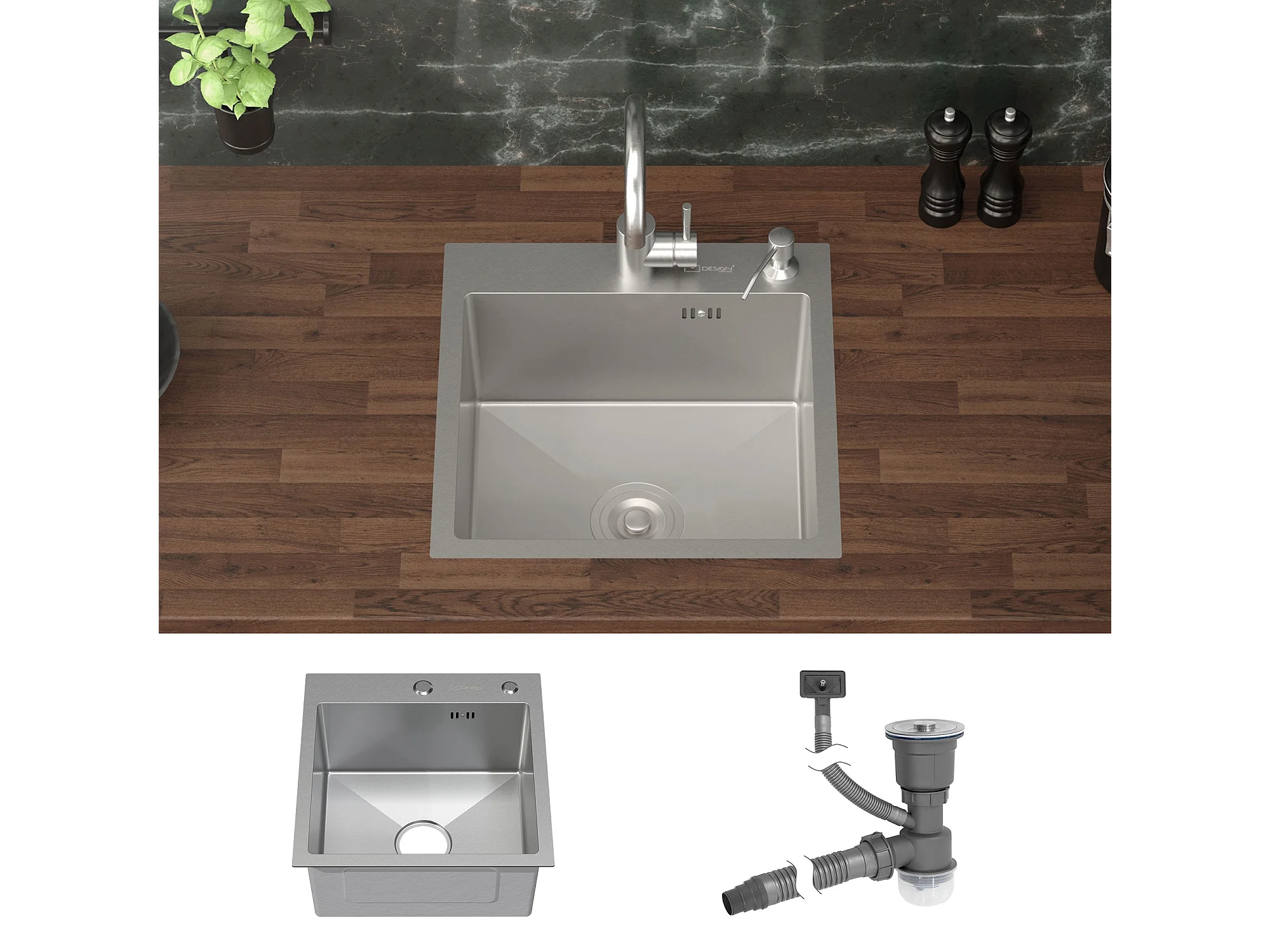 Évier de cuisine à encastrer en acier 55x45 cm avec vidage et distributeur savon
