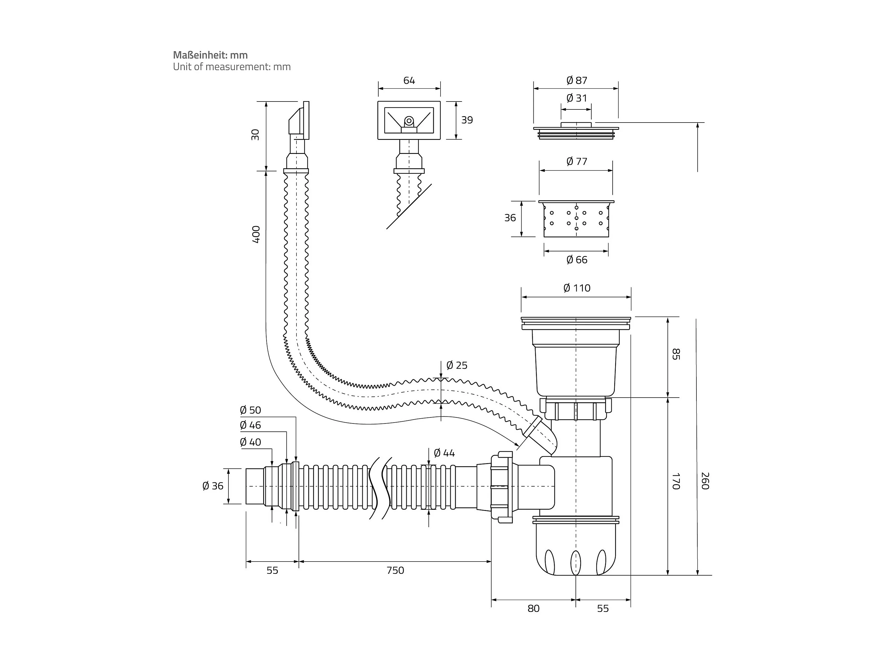 Évier de cuisine en acier inoxydable à encastrer argenté avec vidage 70x40 cm