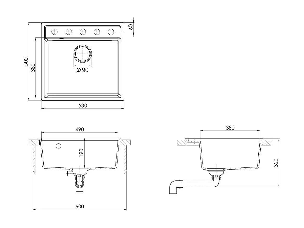 Évier de cuisine avec blanche 53 x 50 x 20.3 cm 02_0002384