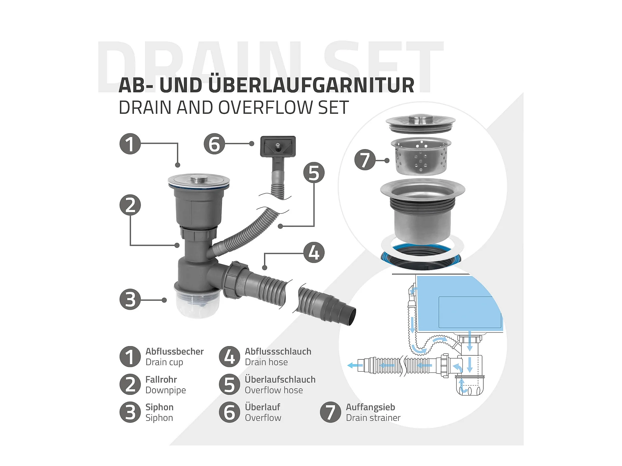 Évier de cuisine en acier inoxydable à encastrer argenté avec vidage 70x40 cm