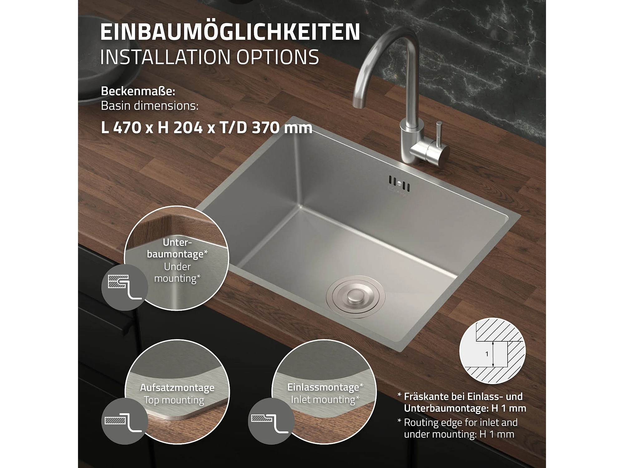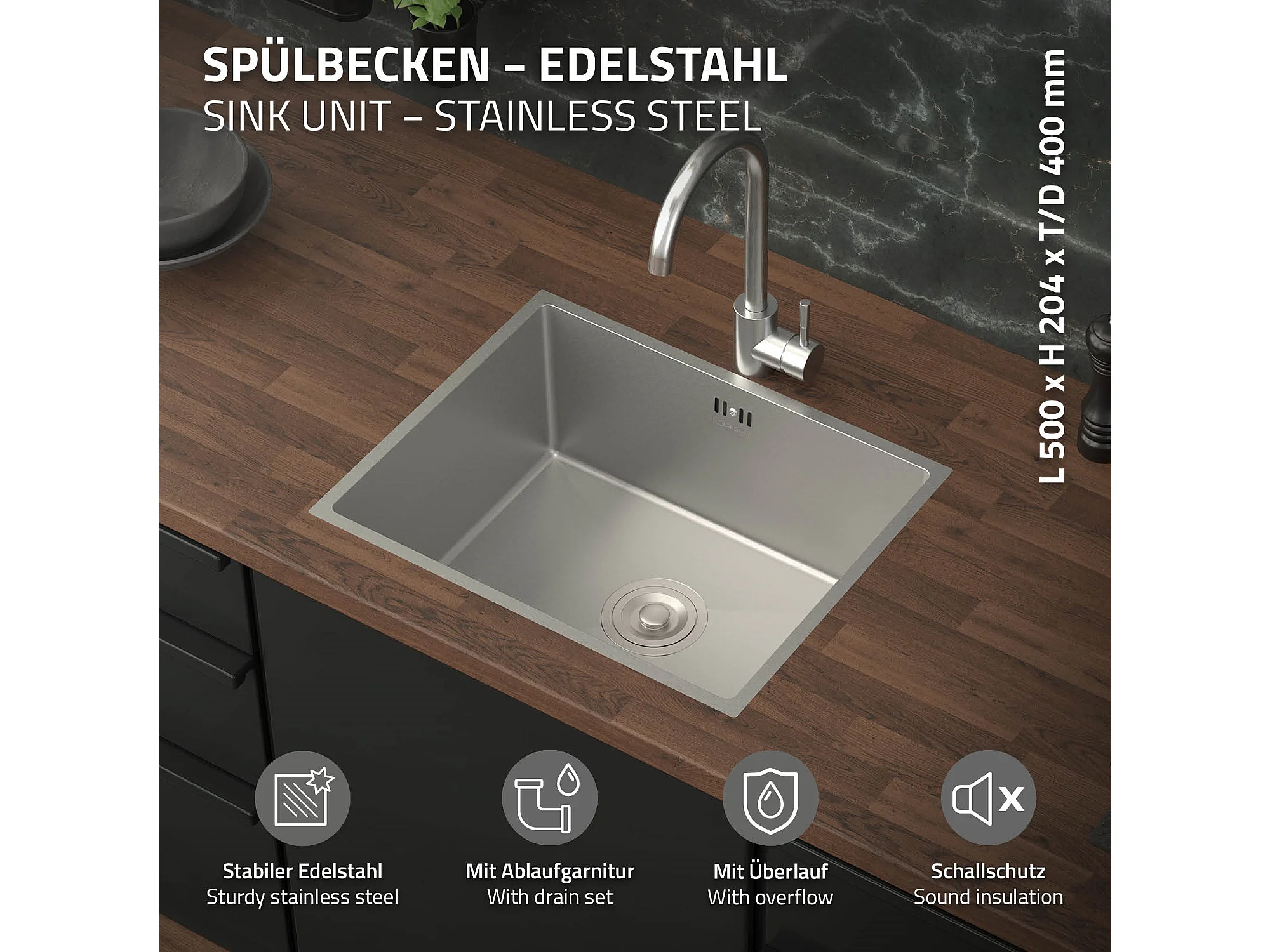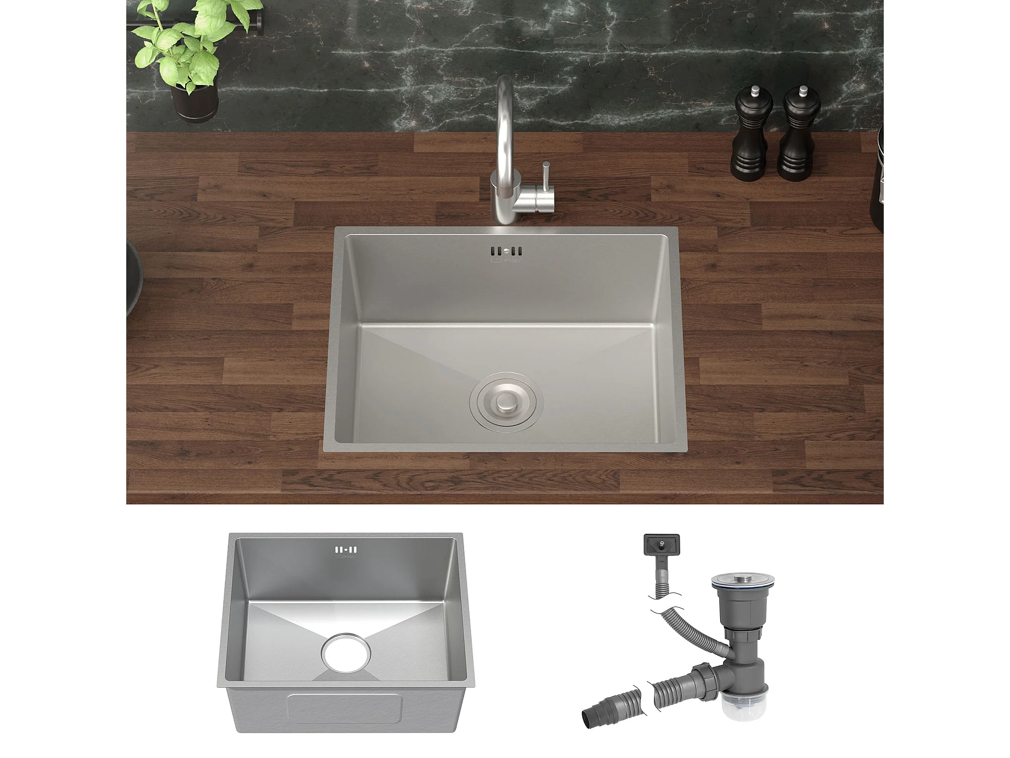Évier Inox 1 Bac 50x45x22 cm Argent - pour Petite Cuisine & Camping-car - Prépercé avec Filtre