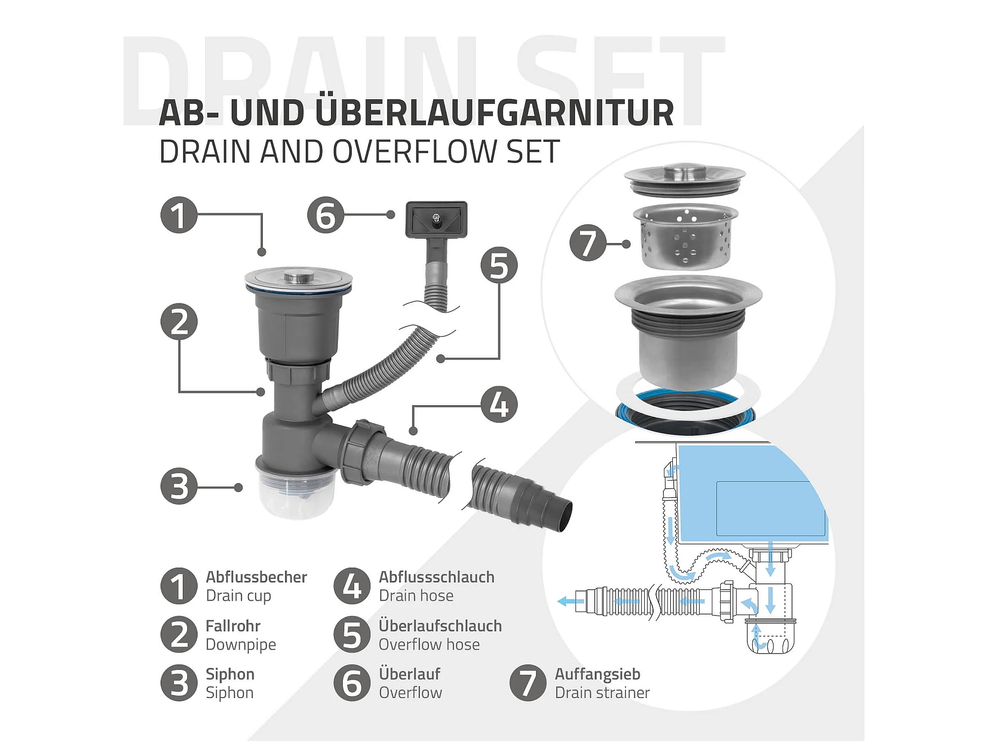Évier de cuisine en acier inoxydable à encastrer argenté avec vidage 70x40 cm