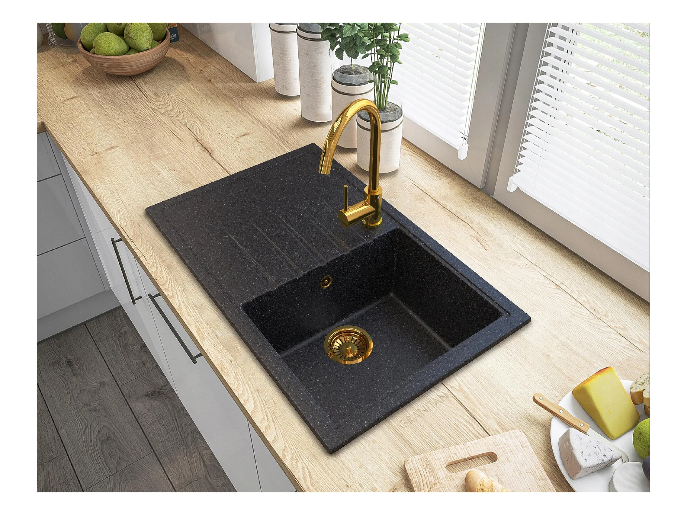 ÉVIER DE CUISINE EN GRANIT DORÉ ROBINETTERIE ERIS