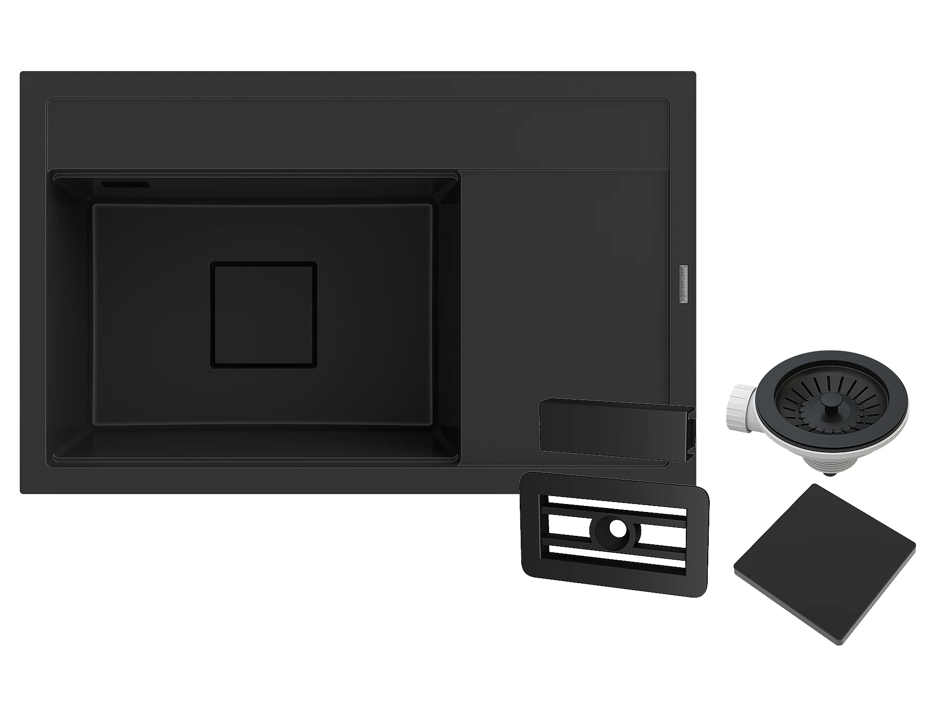 ÉVIER DE CUISINE EN GRANIT NOIR BOUCHON DE LUNETTE MODERNE RENDO