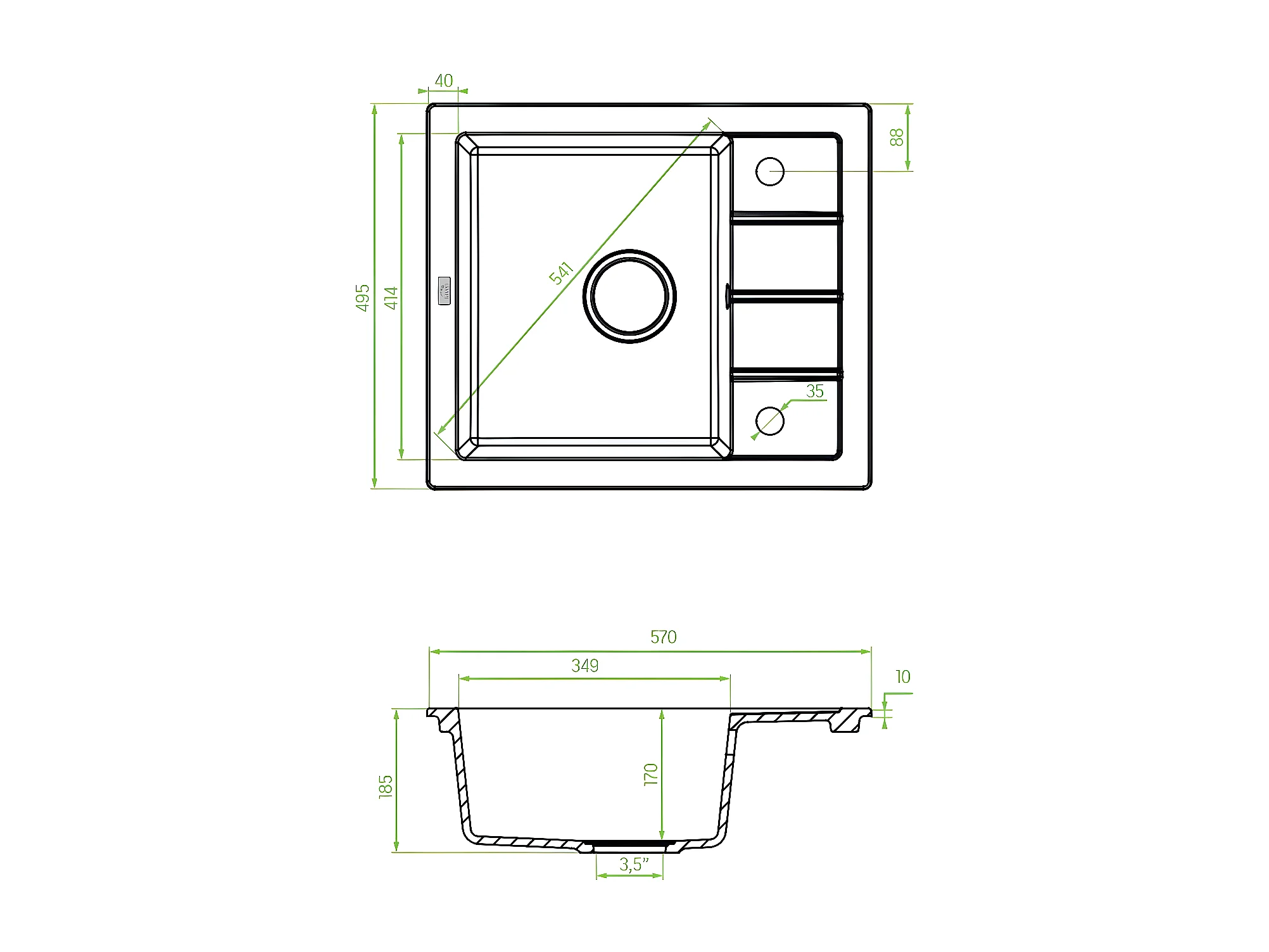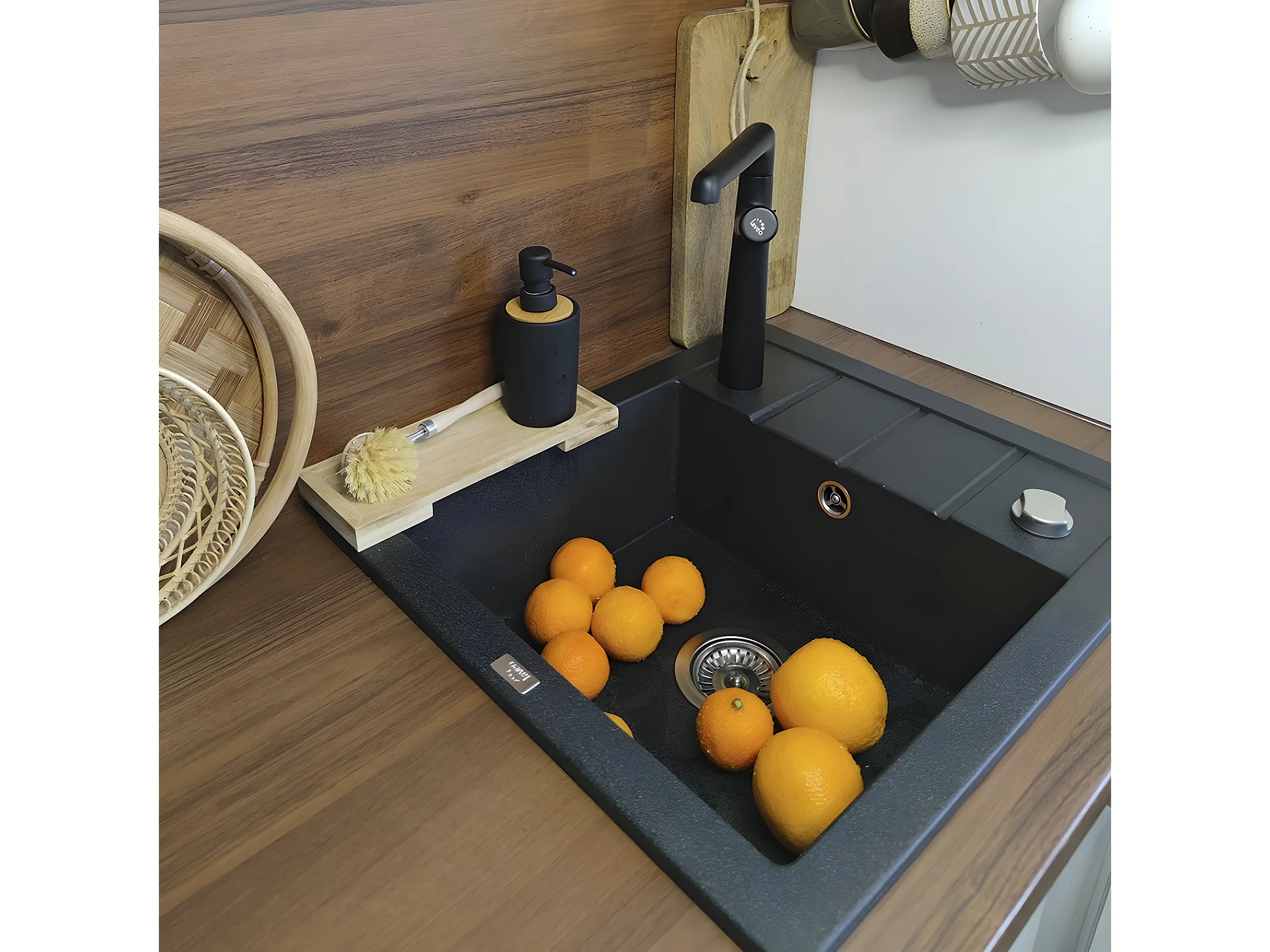 Evier de cuisine en granit noir - THIRTEEN - 49,5 x 57 cm, 1 bac