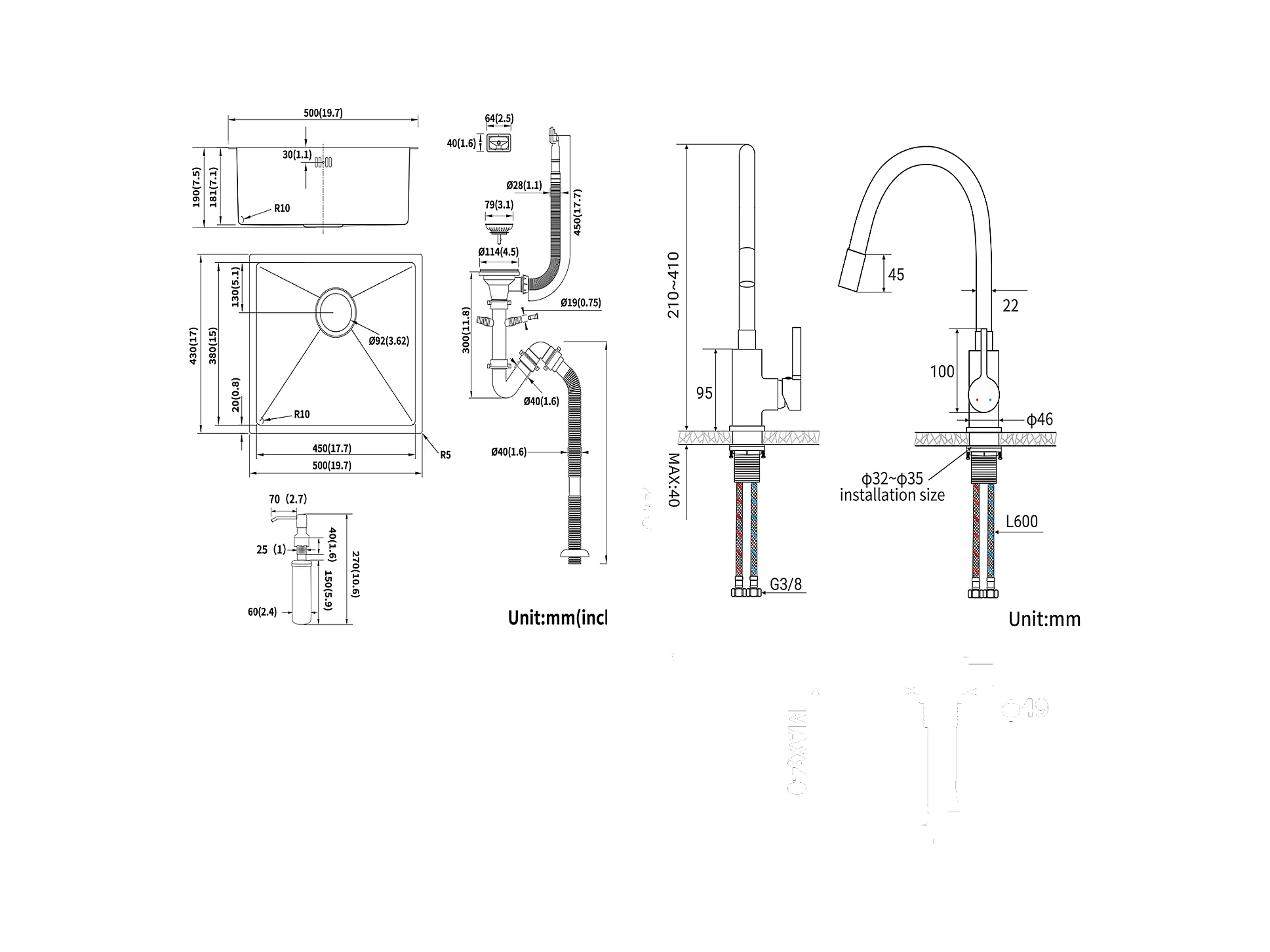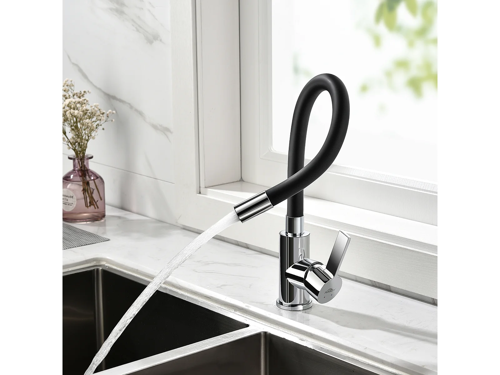 Évier de Cuisine Inox 1 Bac 50*43*18CM avec Distributeur de Savon+Robinet de Cuisine Flexible Bec Haut Orientable
