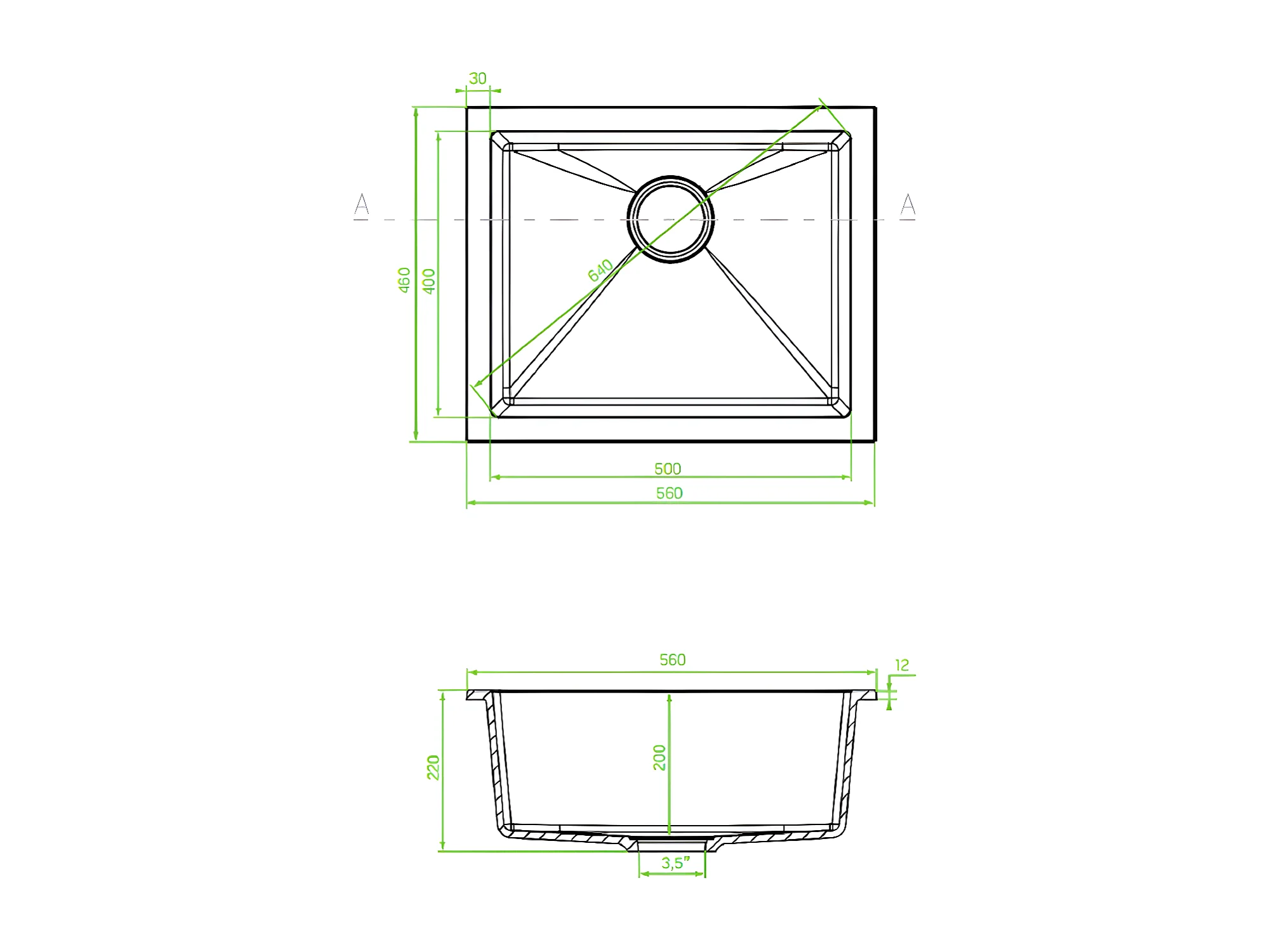 Evier de cuisine rond en granit beige IBIZA, 1 bac,56x46