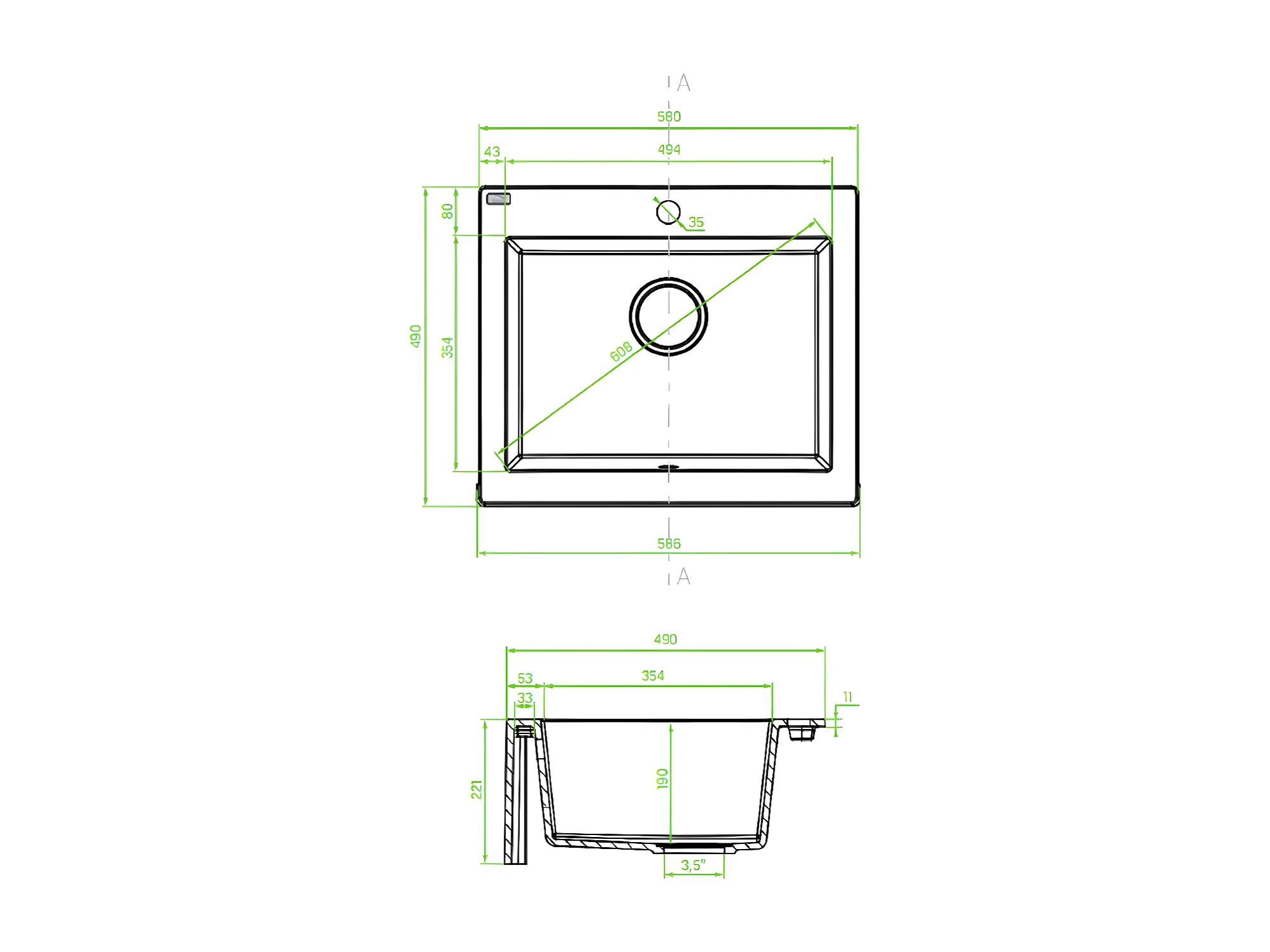 Evier de cuisine rond en granit beige KOMODO, 1 bac,49x58