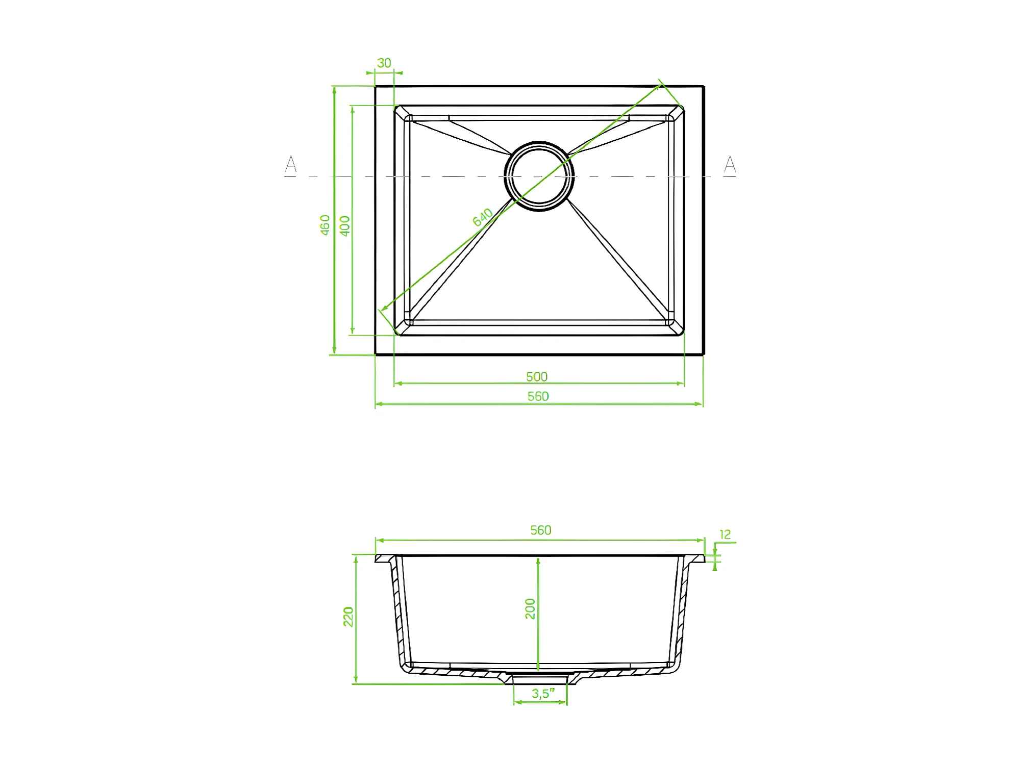 Evier de cuisine rond en granit noir IBIZA, 1 bac,56x46