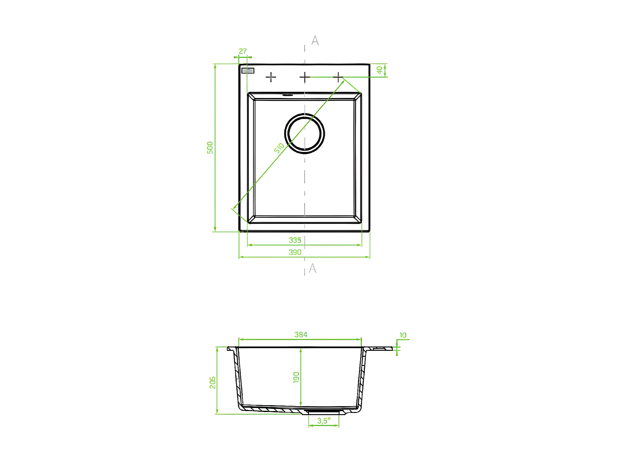 Evier de cuisine rond en granit noir MONCHICHI, 1 bac,50x39