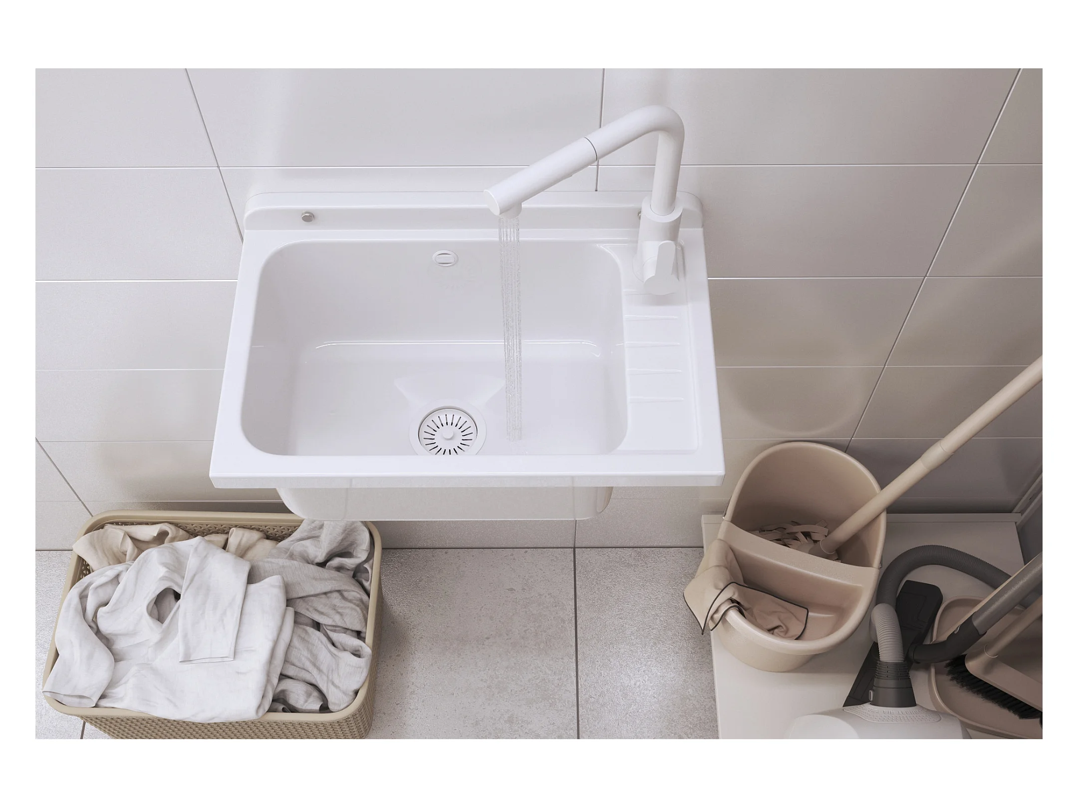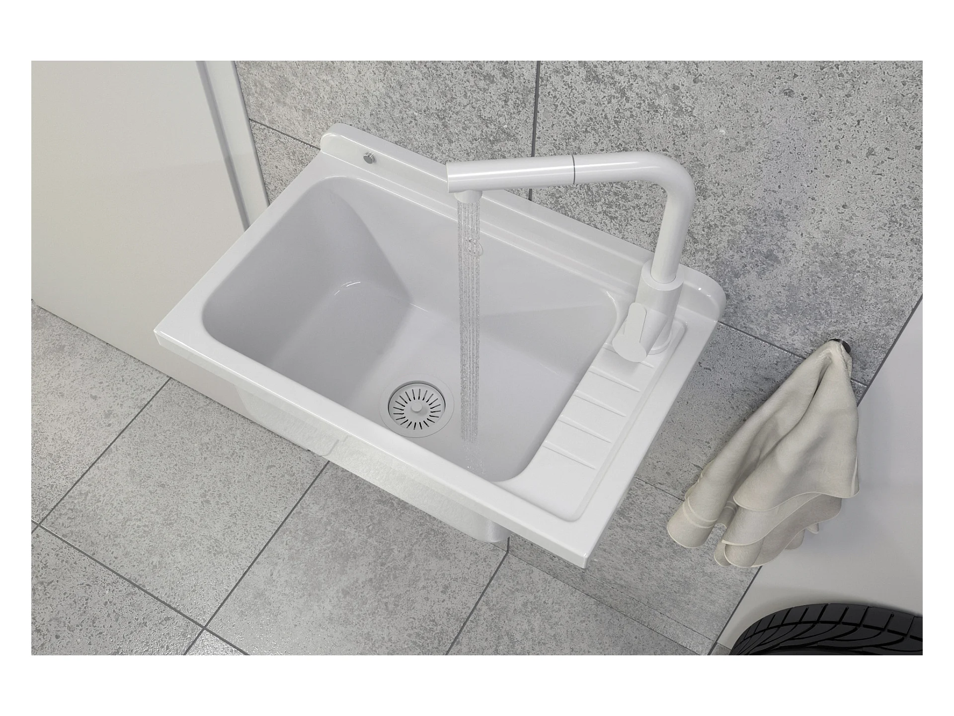 ÉVIER DE FERME BLANC ROBINETS MÉLANGEURS BEC EXTRACTIBLE BUANDERIE GARAGE MONZA