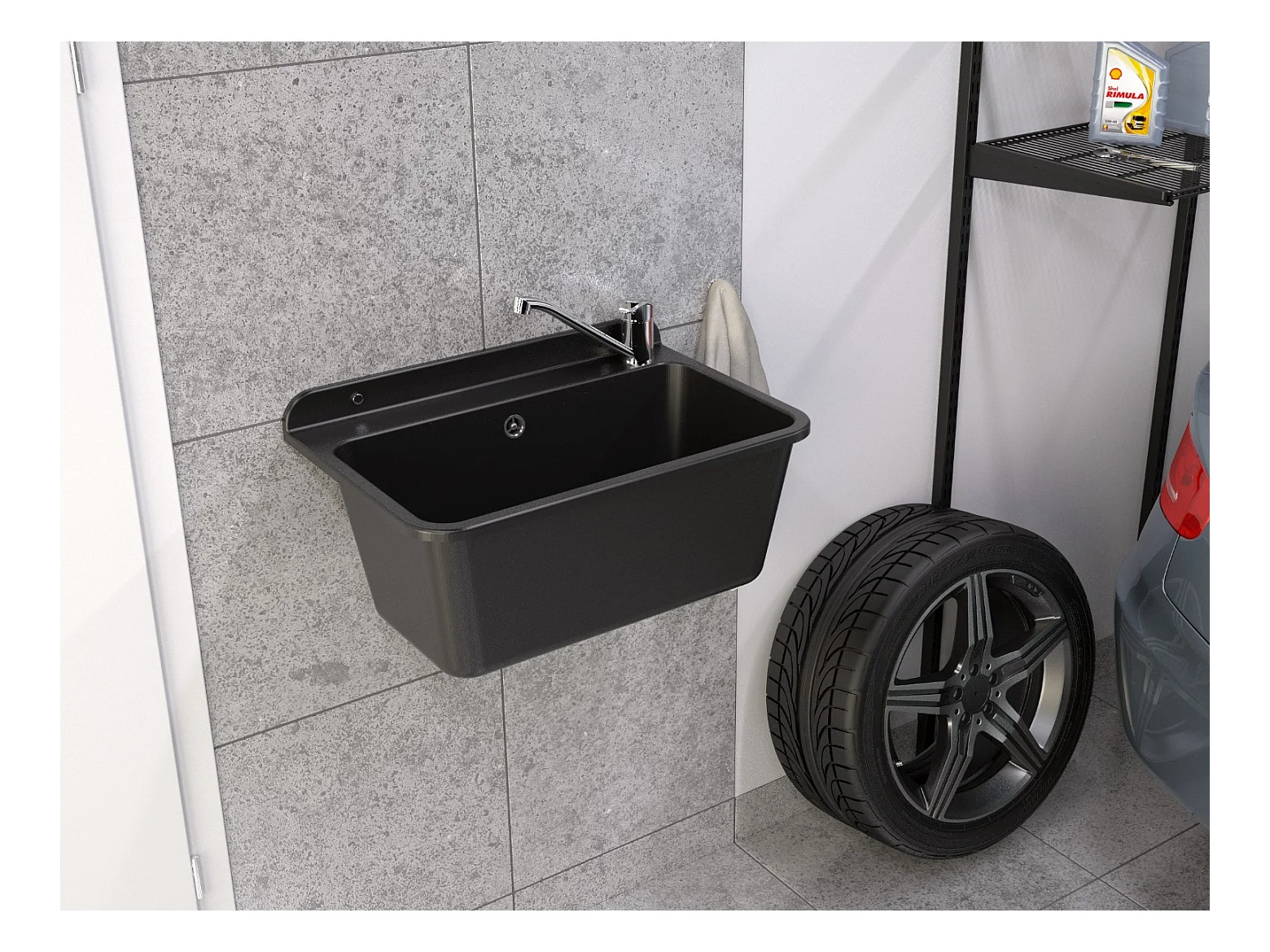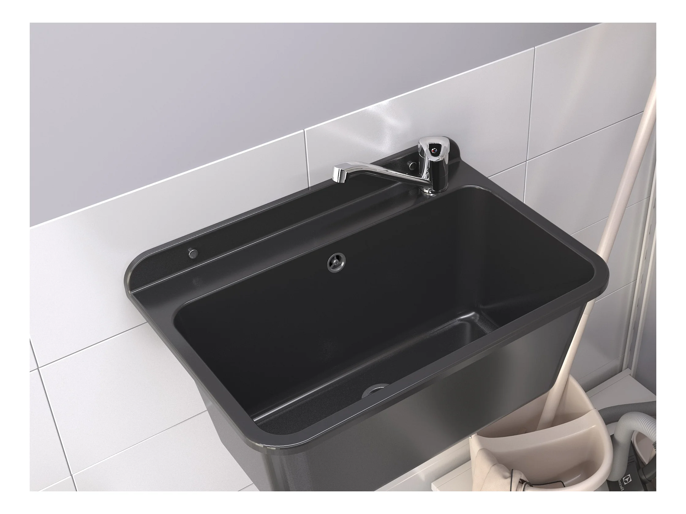 ÉVIER DE FERME GRAND BOL NOIR ROBINET CHROME