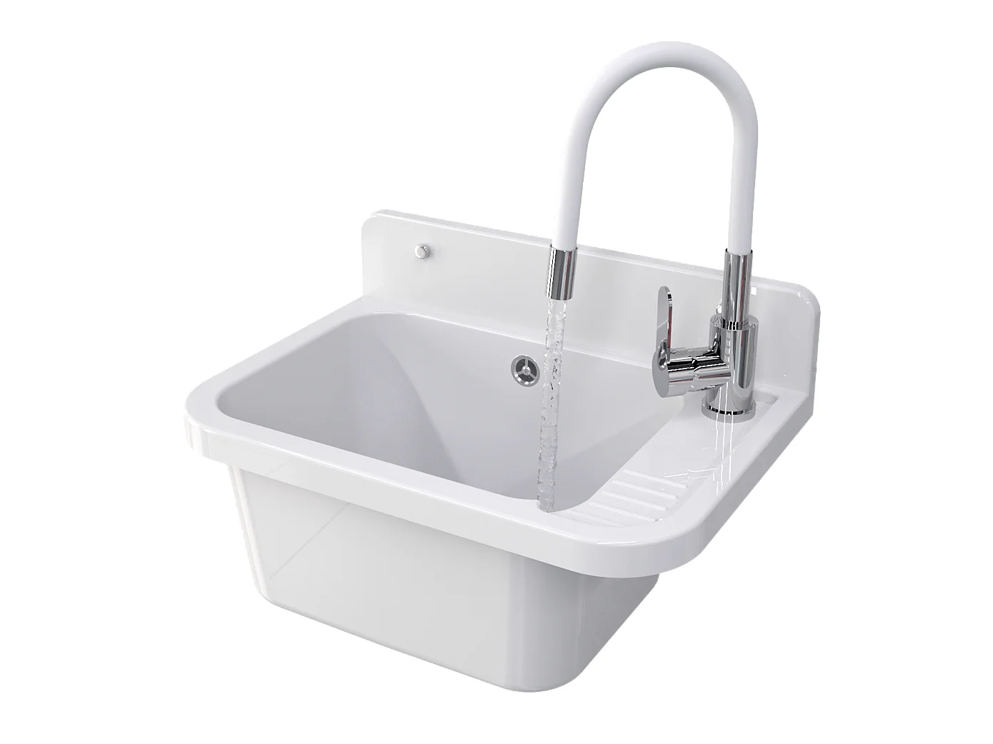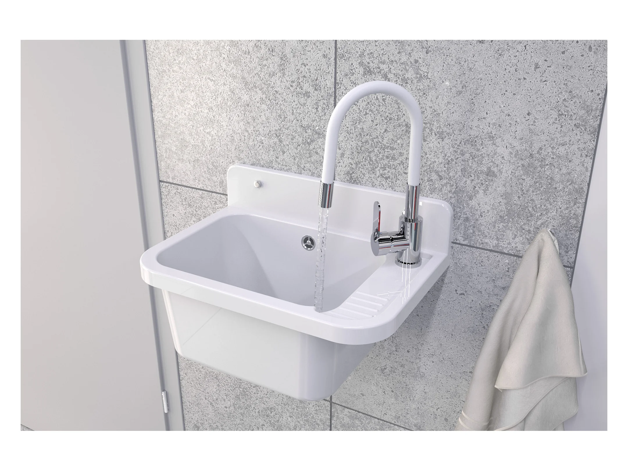 ÉVIER UTILITAIRE CUVE TECHNIQUE GARAGE BLANC ORTA ROBINETTERIE MURALE