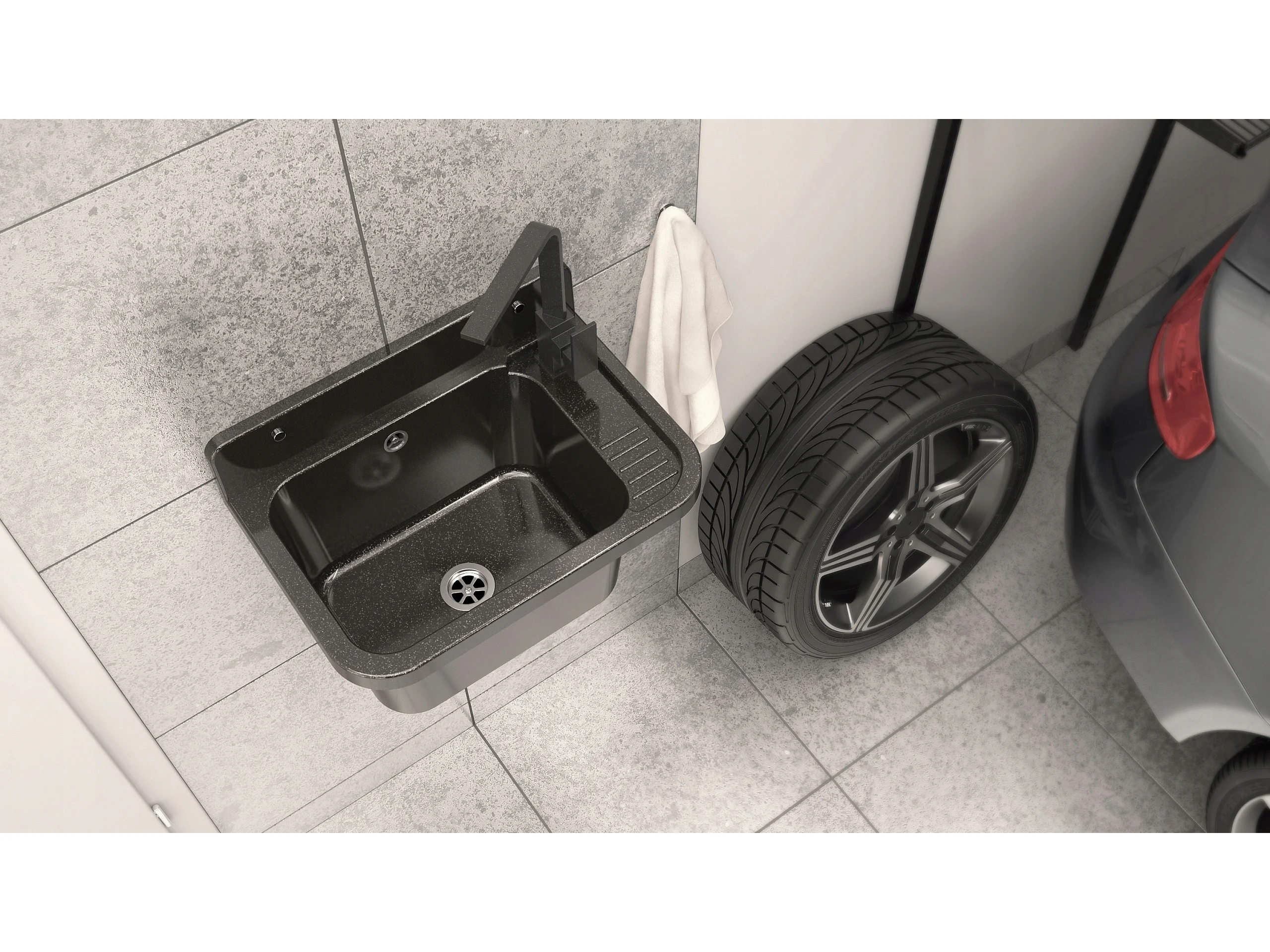 évier de ferme noir buanderie garage chaufferie robinet droit Paron