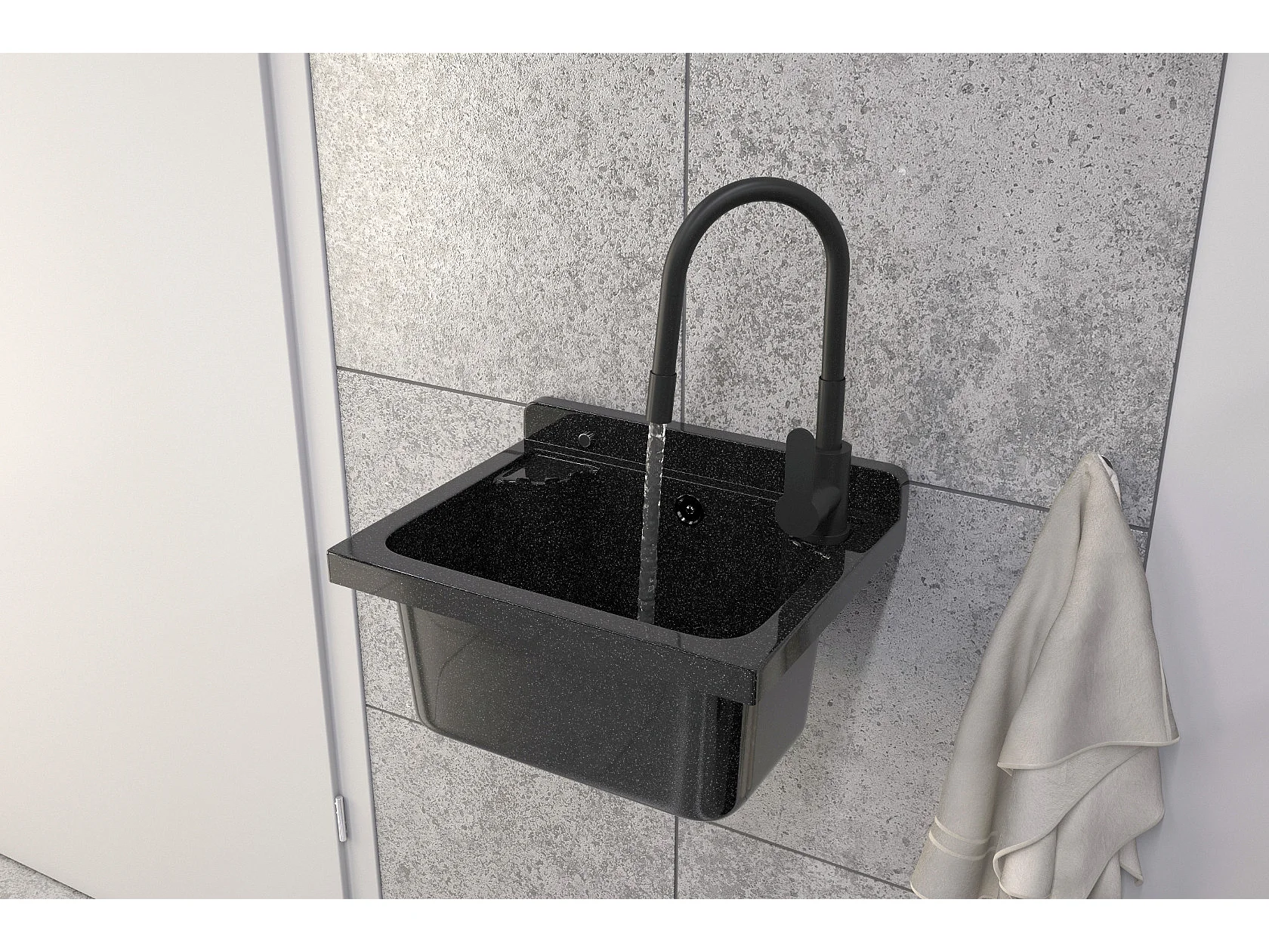 Évier Utilitaire Garage Chambre de Lavage Siphon Noir Grand Noir Pointillé - Polypropylène Résistant