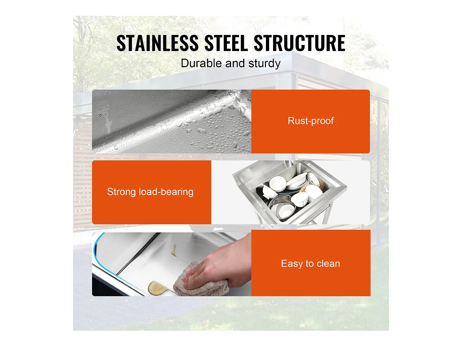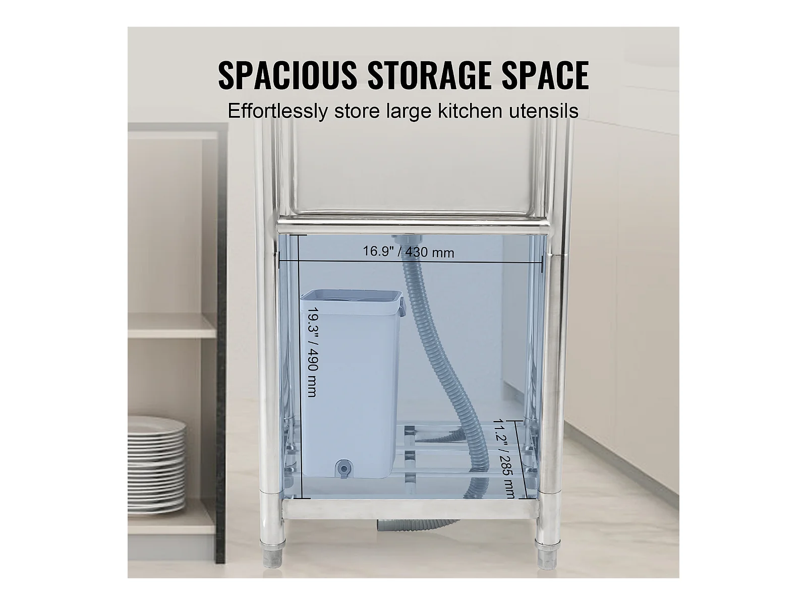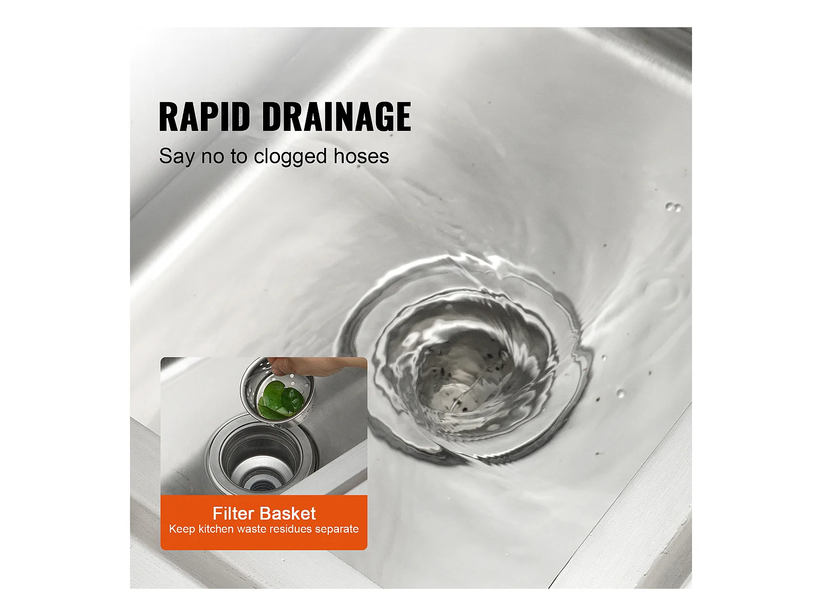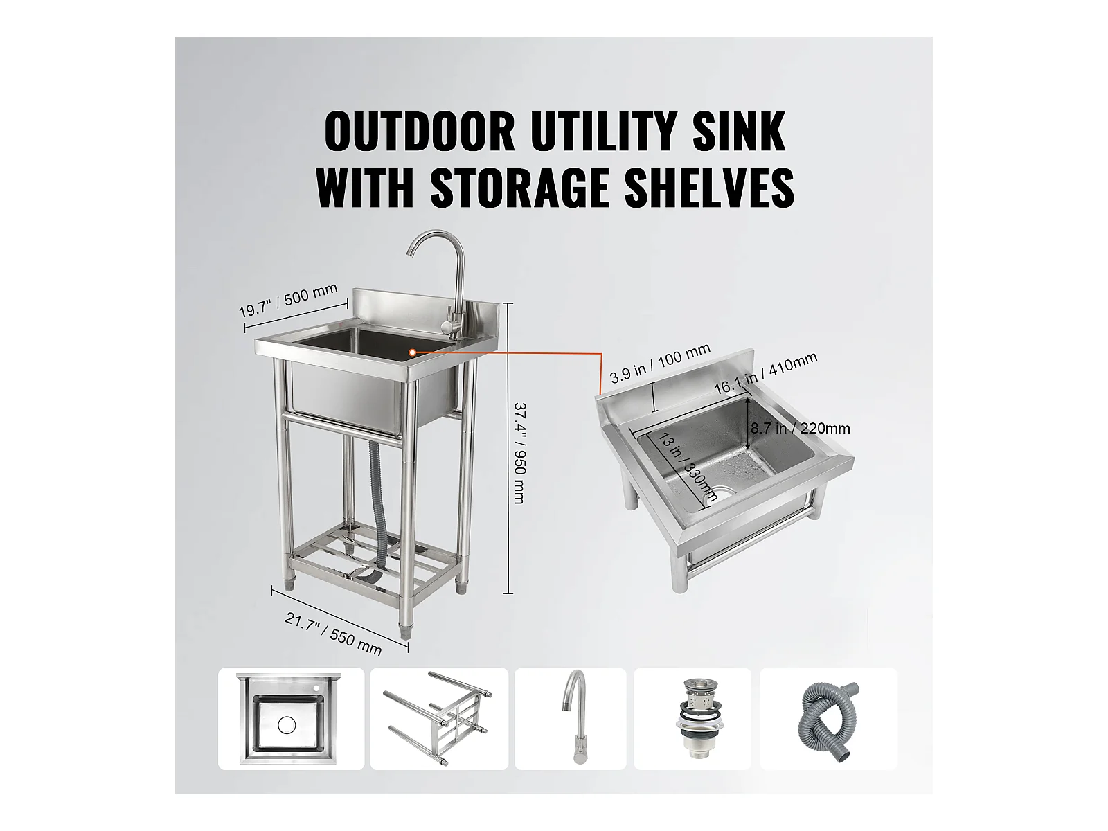 Évier de Préparation en Acier Inoxydable SucceBuy, Utilitaire Commercial à Cuve Simple 55 x 50 x 95 Cm