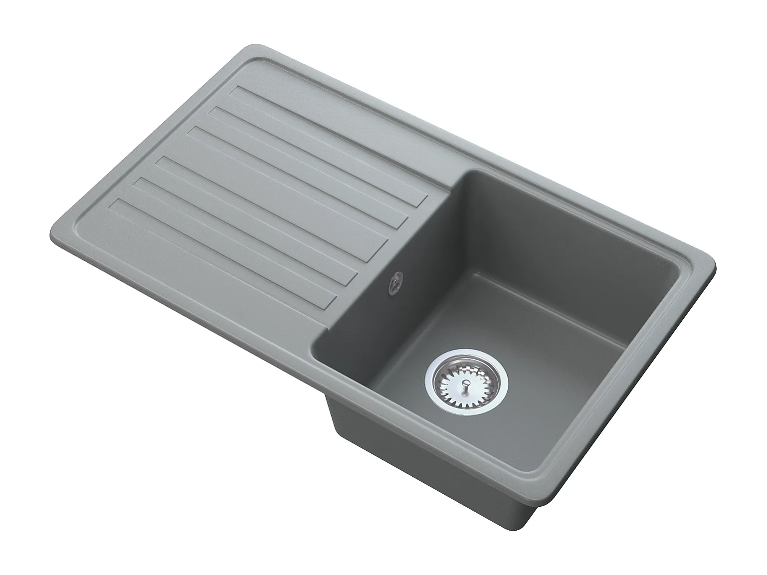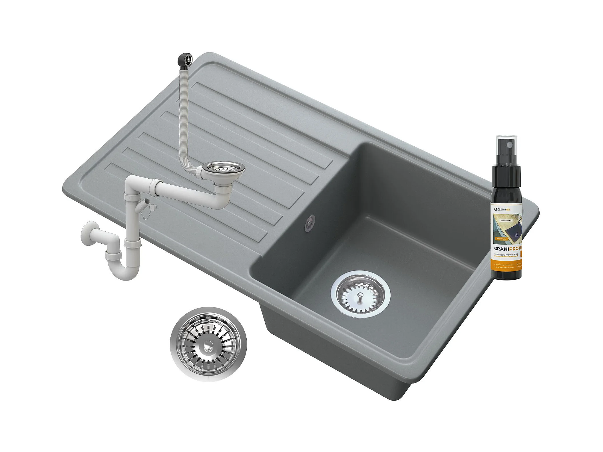 ÉVIER EN GRANIT 1 COMPARTIMENT ÉGOUTTOIR SIPHON GRIS CITRON