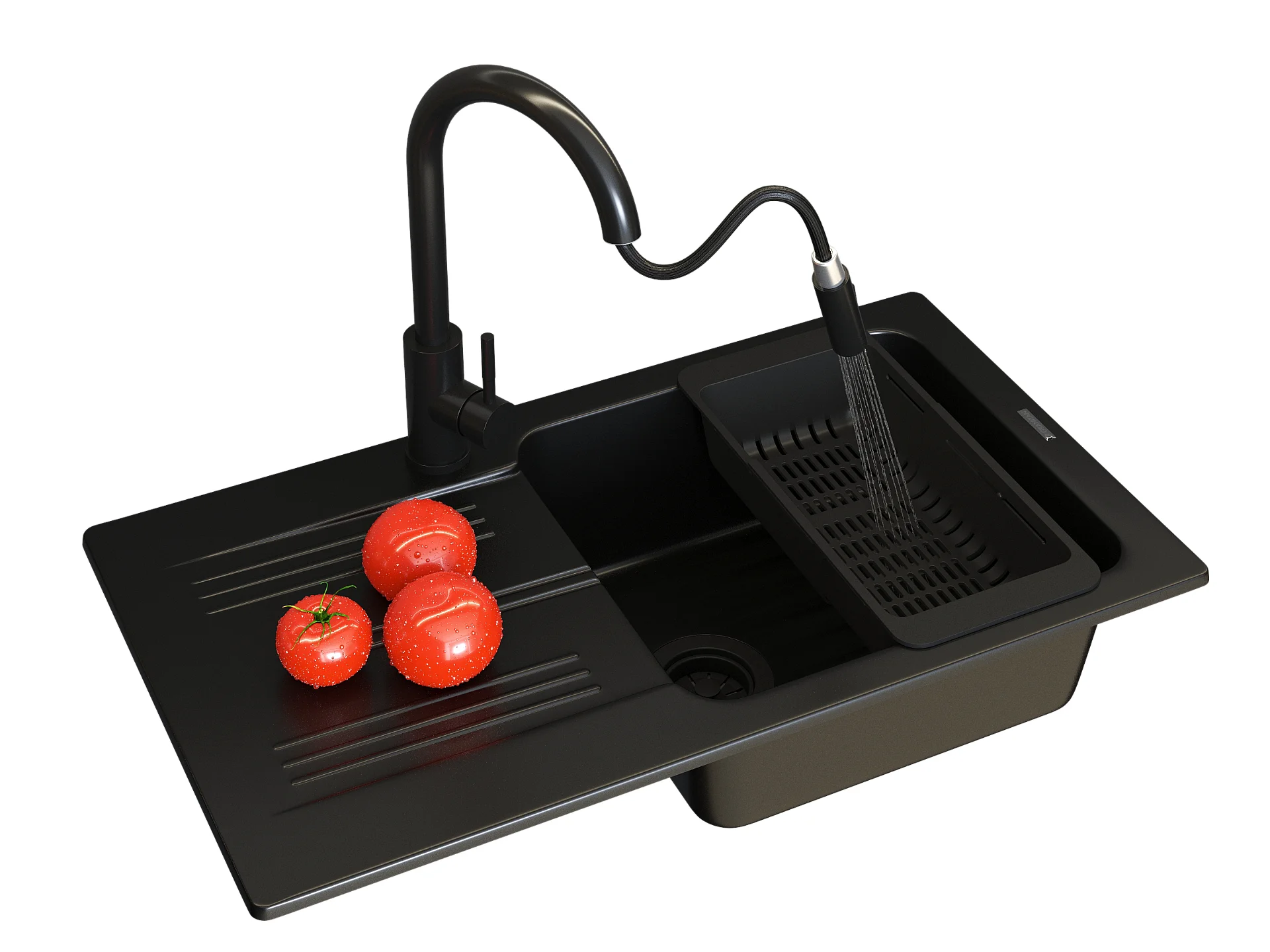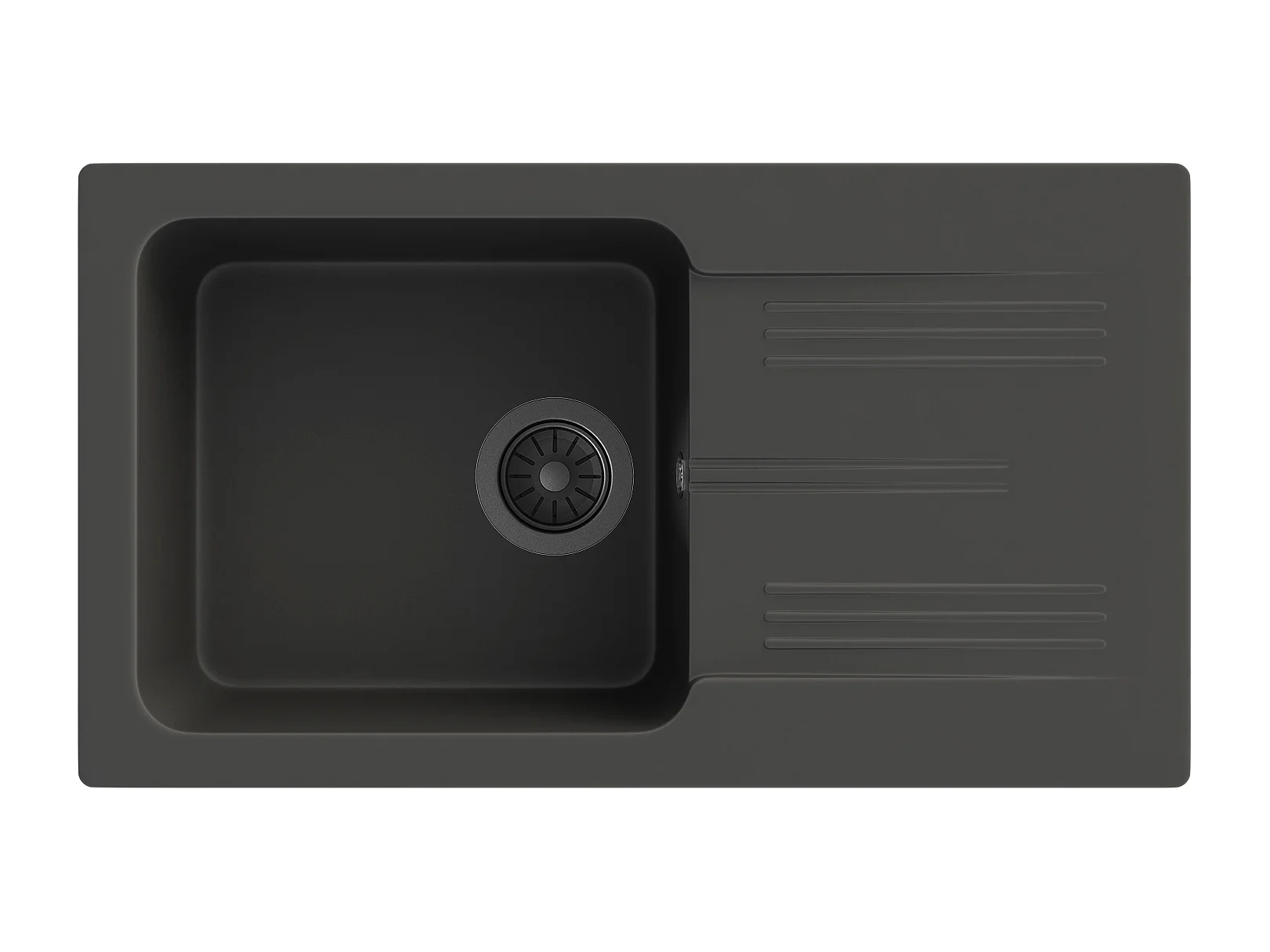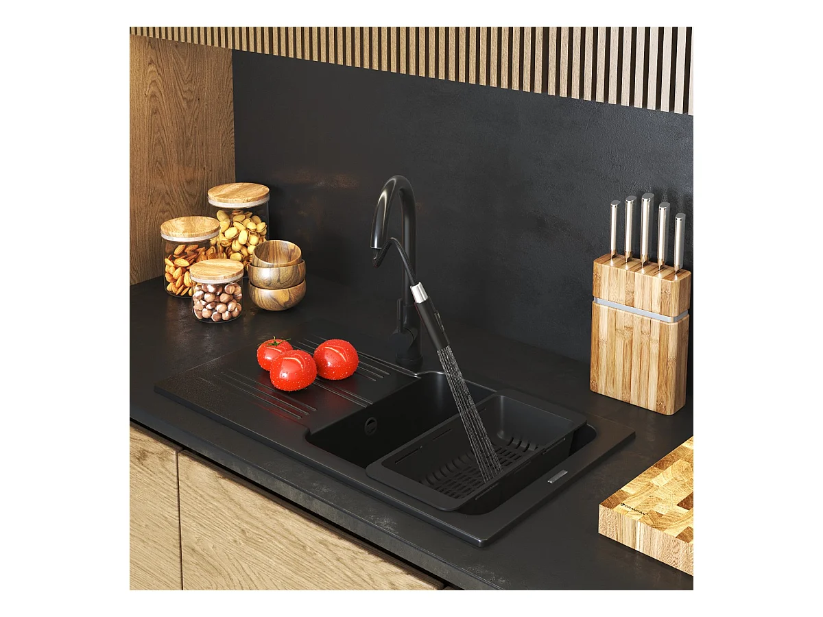 ÉVIER EN GRANIT ADA CUVE UNIQUE ROBINET NOIR PANIER SIPHON LOSETO