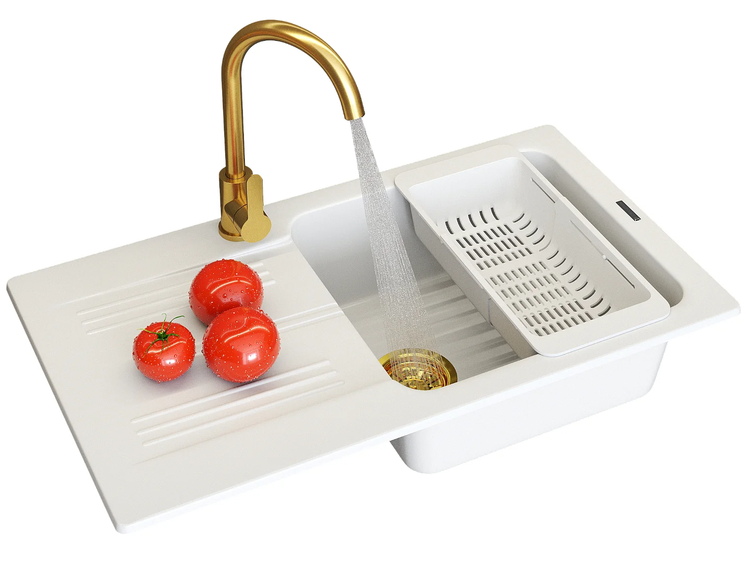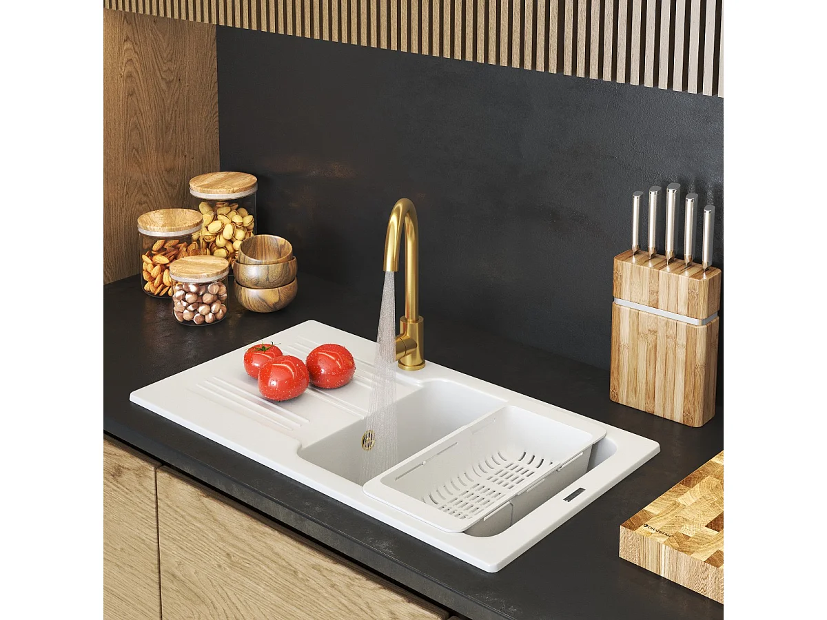 ÉVIER EN GRANIT ADA ÉVIER À UN BAC BLANC ROBINET SIPHON GOLD