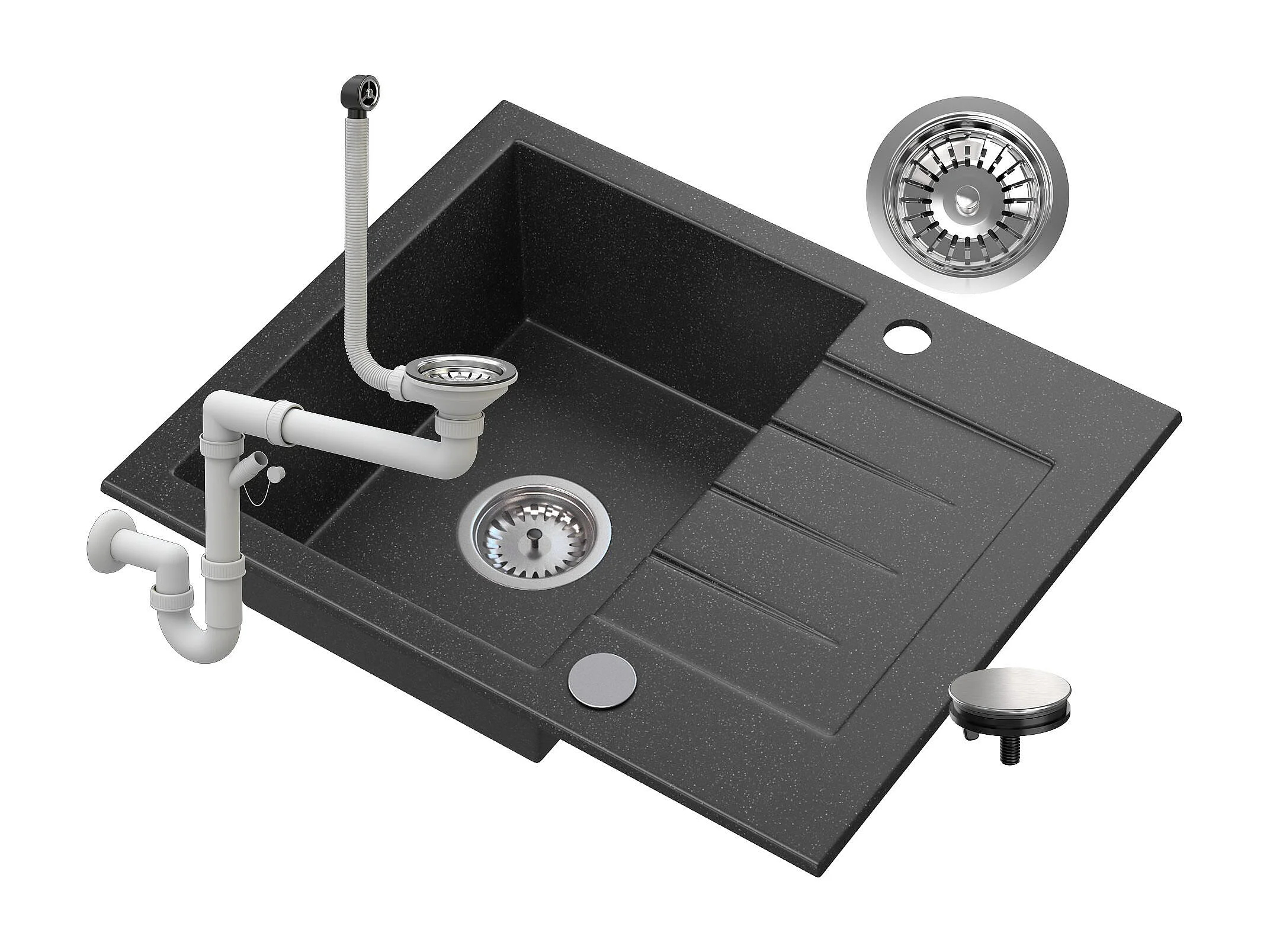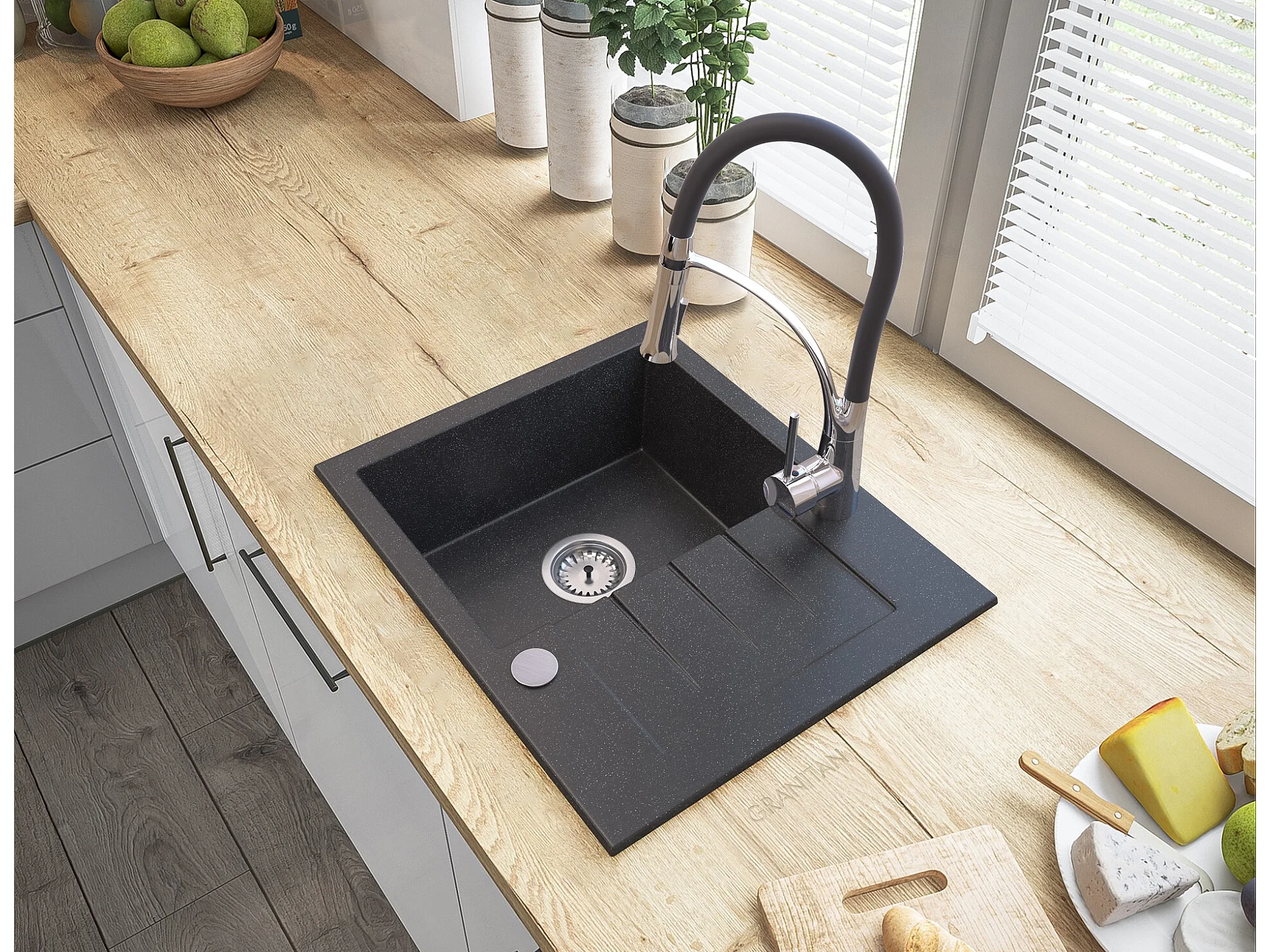 ÉVIER MONOCUVE EN GRANIT AVEC ÉGOUTTOIR SIPHON NOIR SET MILANO