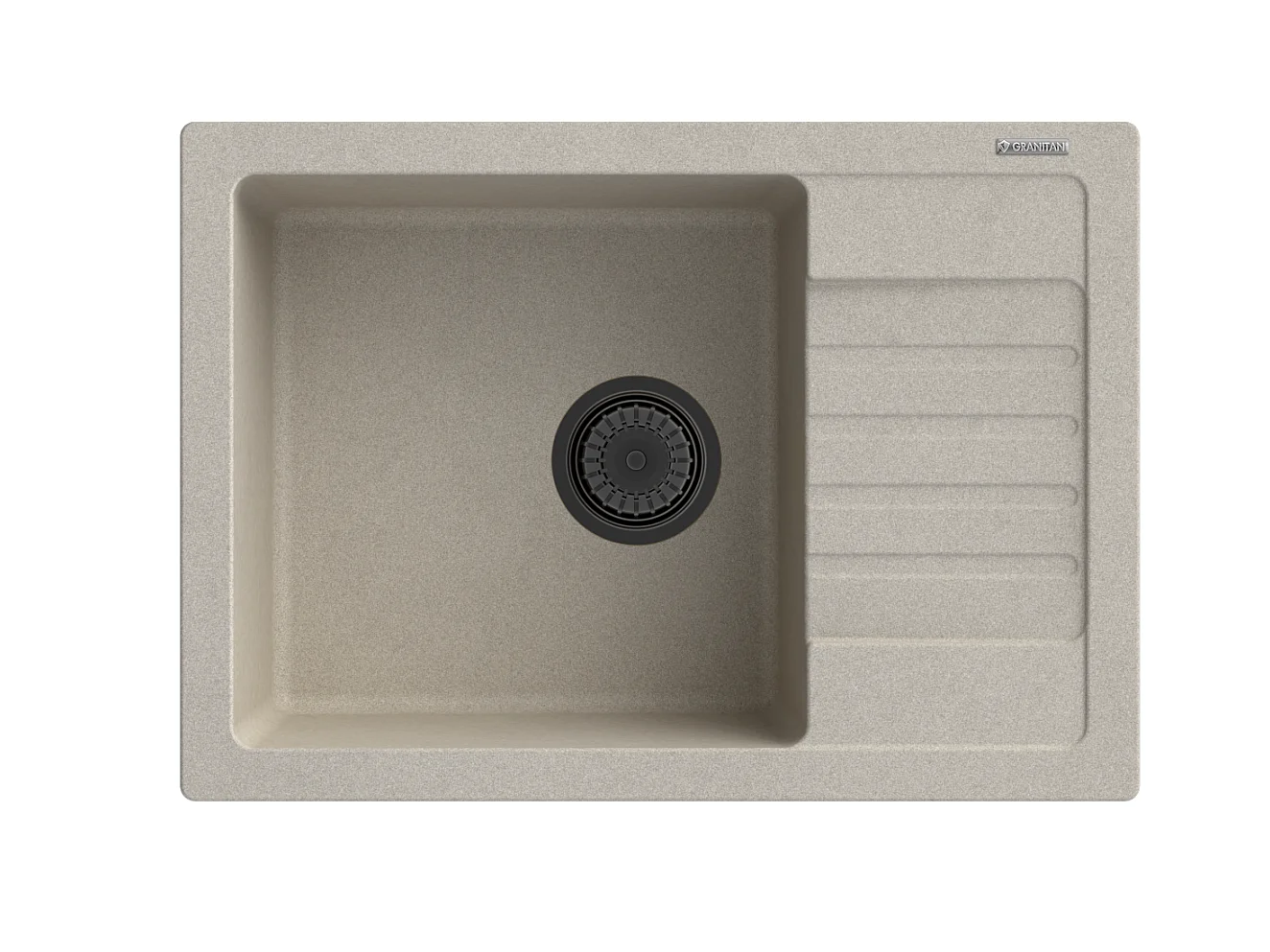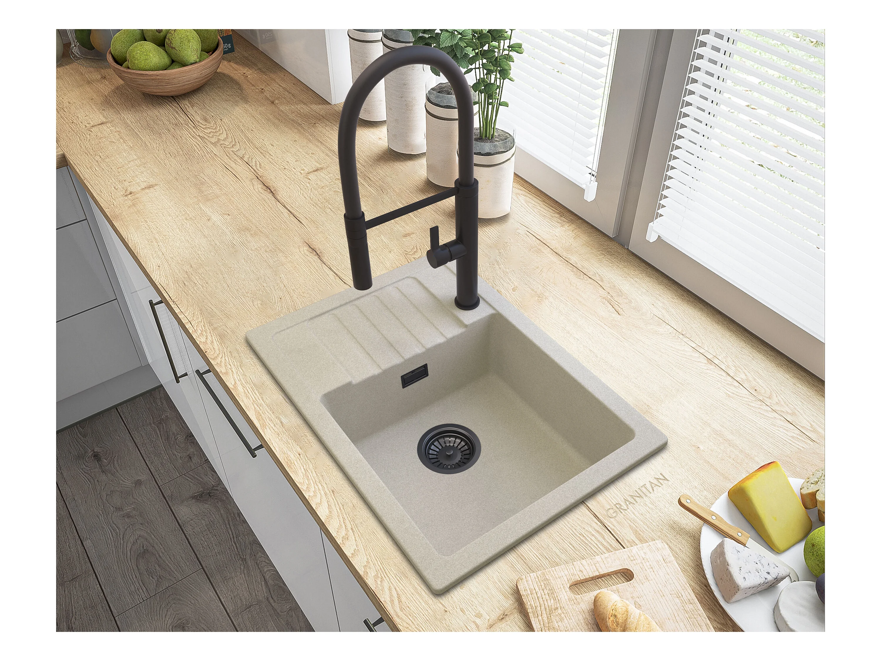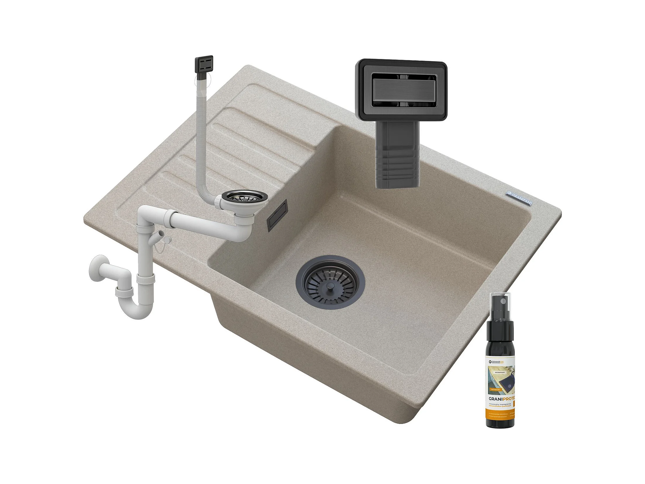 ÉVIER EN GRANIT BEIGE ARGOS + SIPHON CARRÉ NOIR