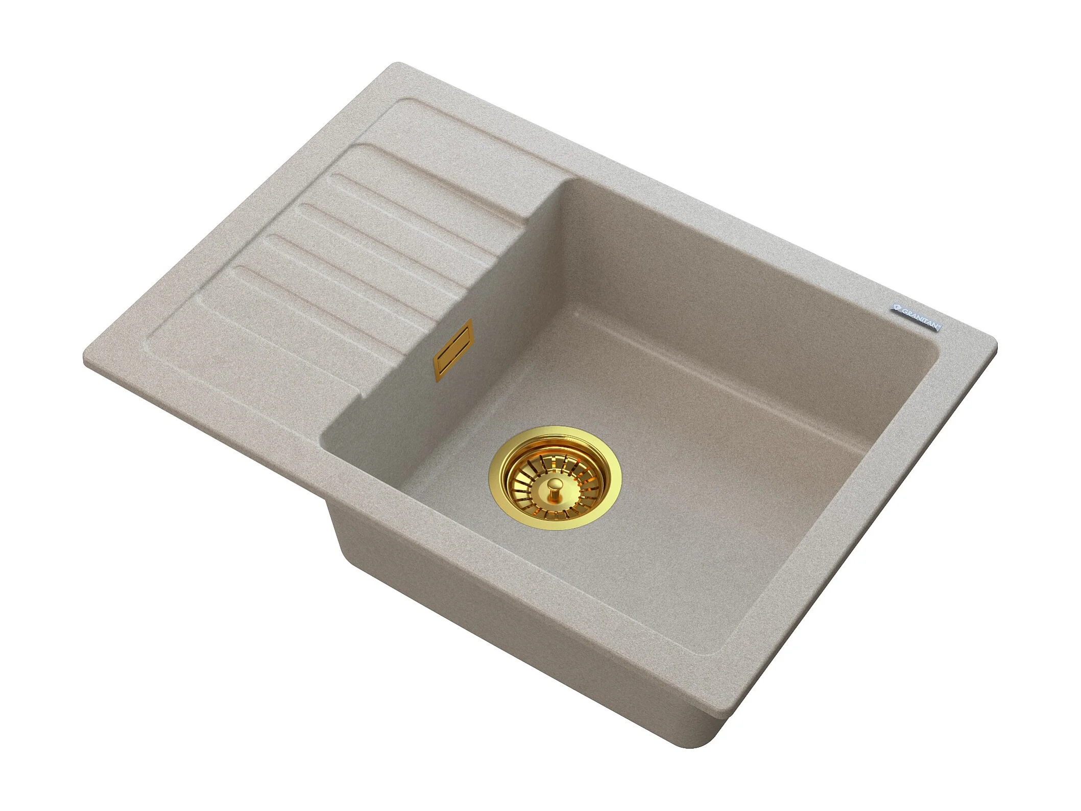 ÉVIER EN GRANIT BEIGE ARGOS + SIPHON SQUARE GOLD