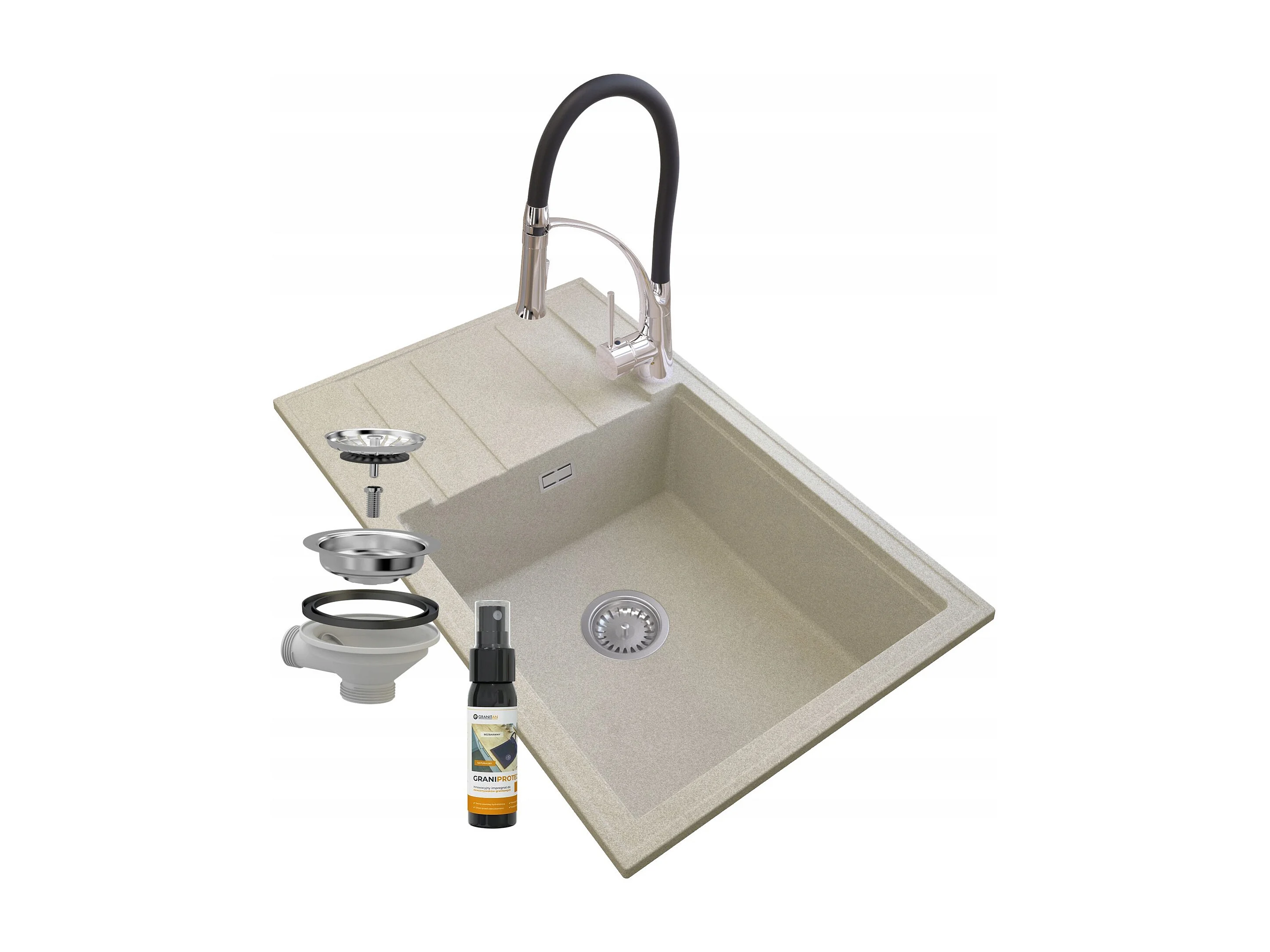 ÉVIER EN GRANIT BEIGE LOUIS SIPHON ROBINET NEXO CHROME
