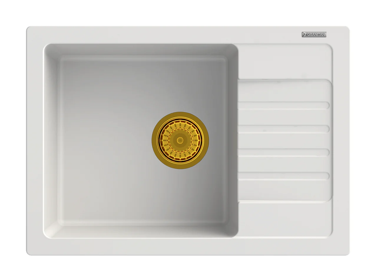 ÉVIER EN GRANIT BLANC ARGOS + SIPHON SQUARE GOLD