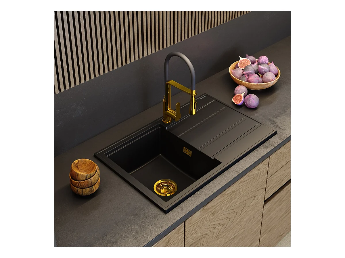 ÉVIER EN GRANIT BLANC ÉGOUTTOIR SIPHON GOLD TIMOR