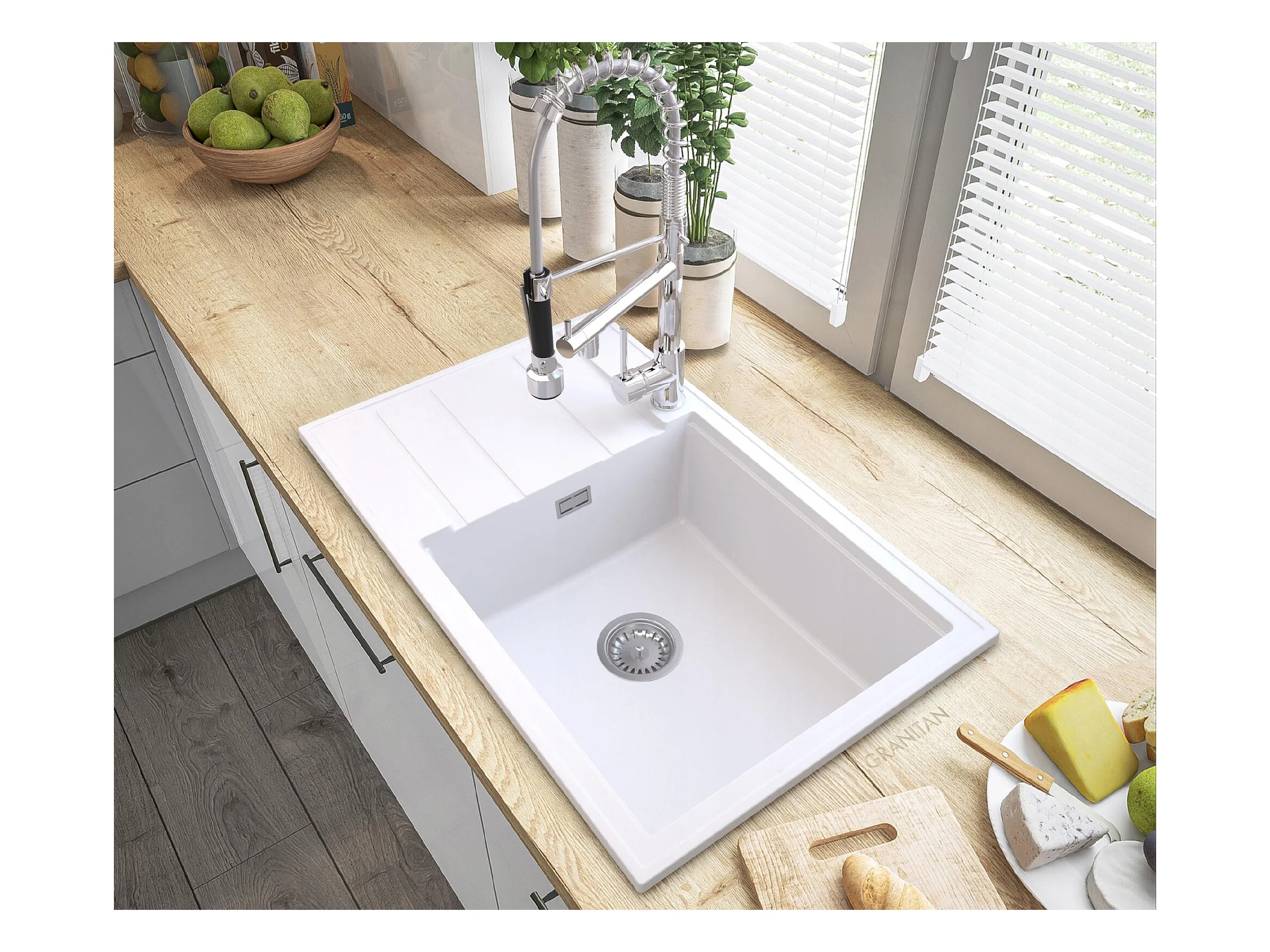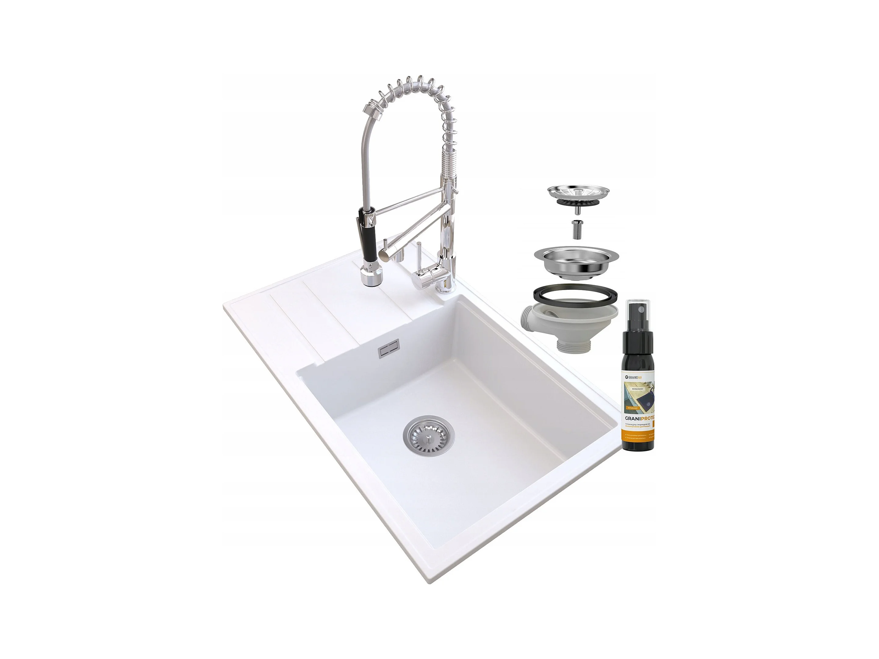 ÉVIER EN GRANIT BLANC LOUIS SIPHON BAT SPIRAL CHROME