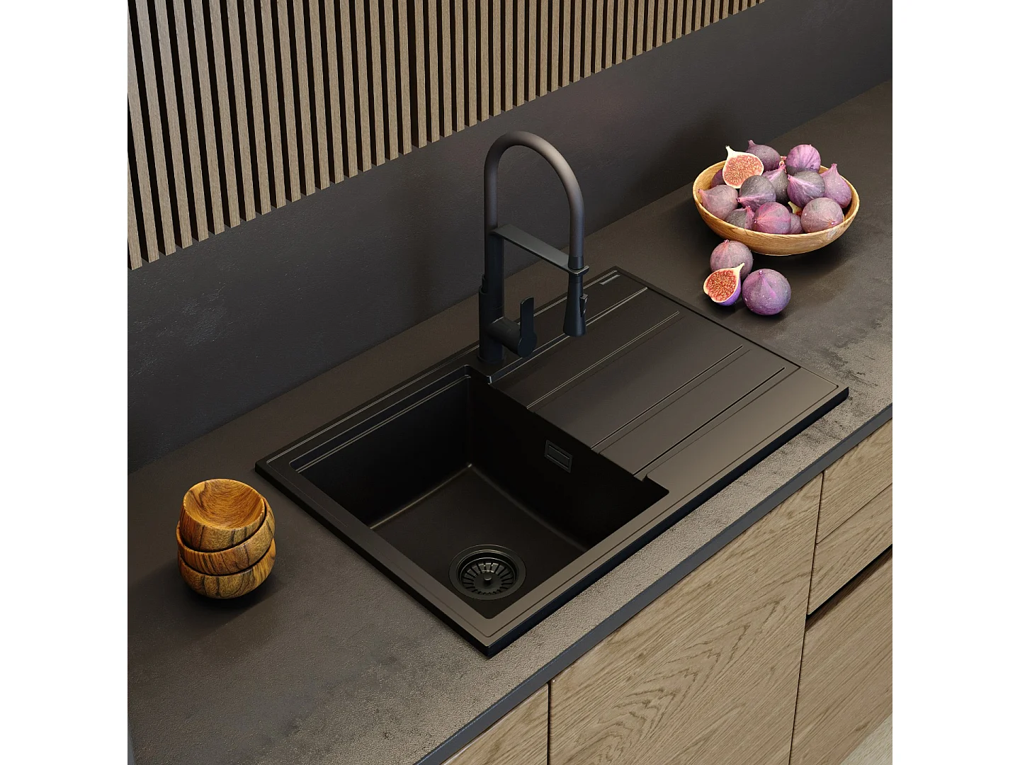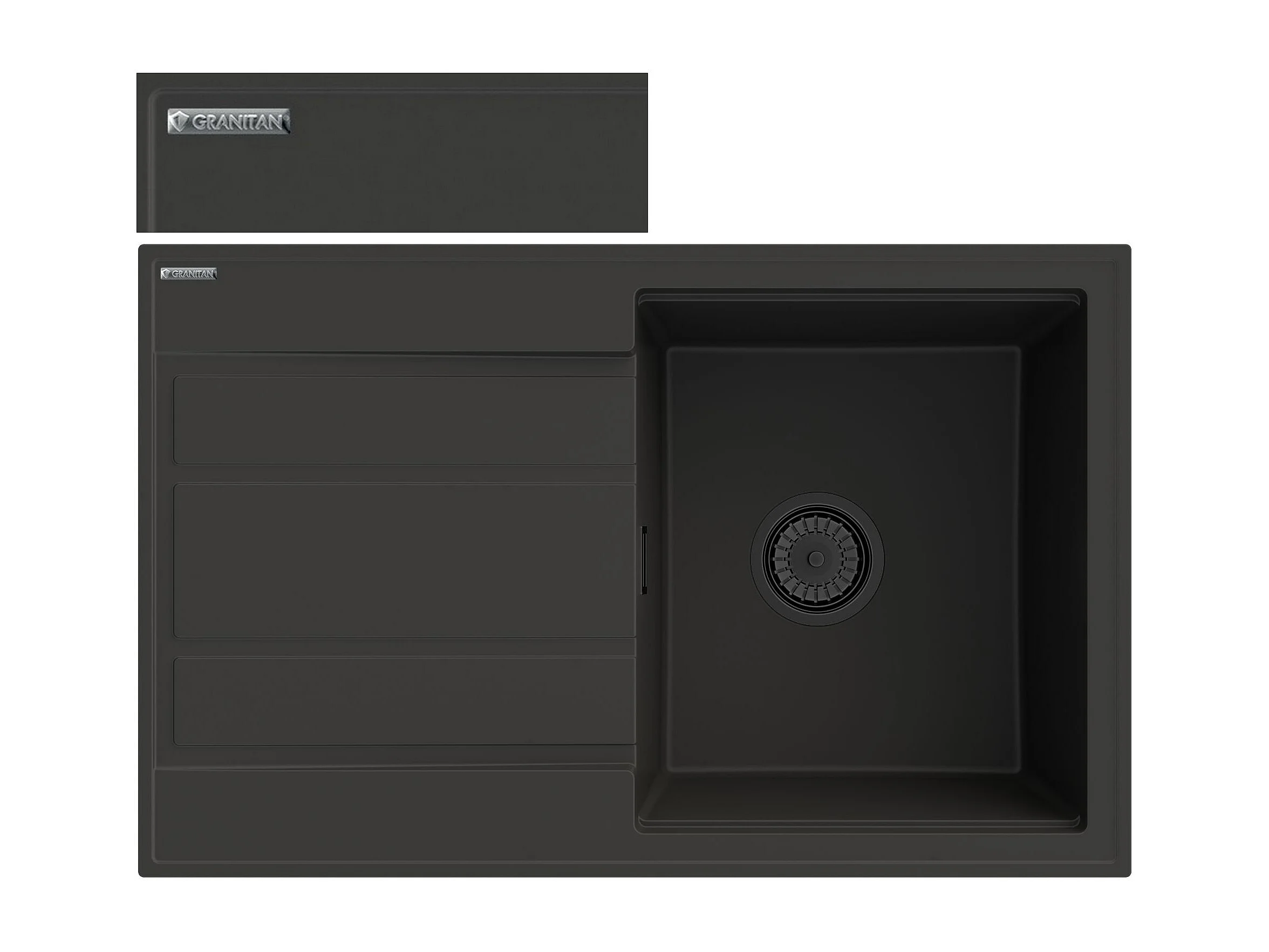 ÉVIER EN GRANIT ÉGOUTTOIR NOIR SIPHON TIMOR