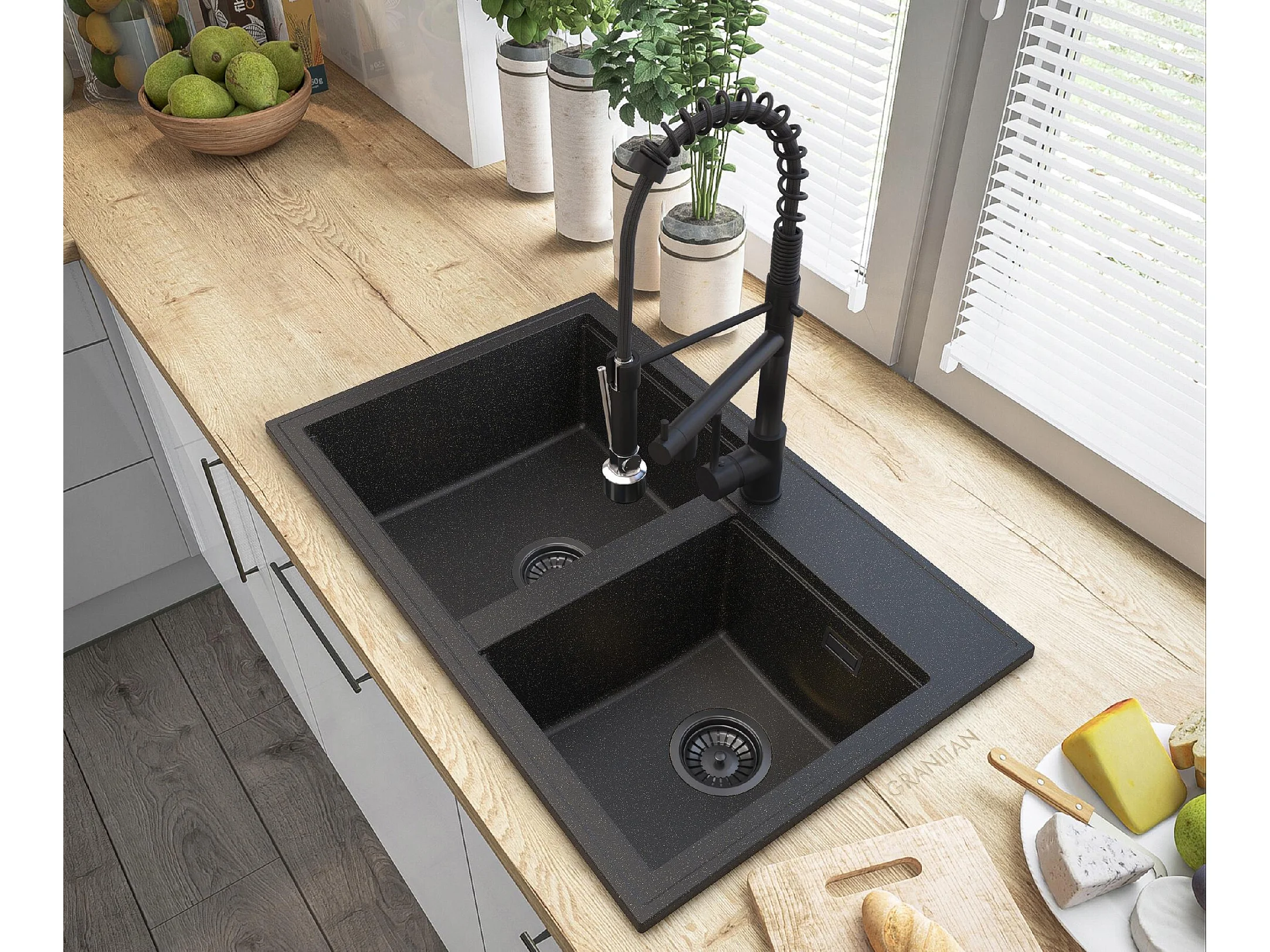 ÉVIER EN GRANIT GOLDEN HECTOR SIPHON ROBINET SPIRALE