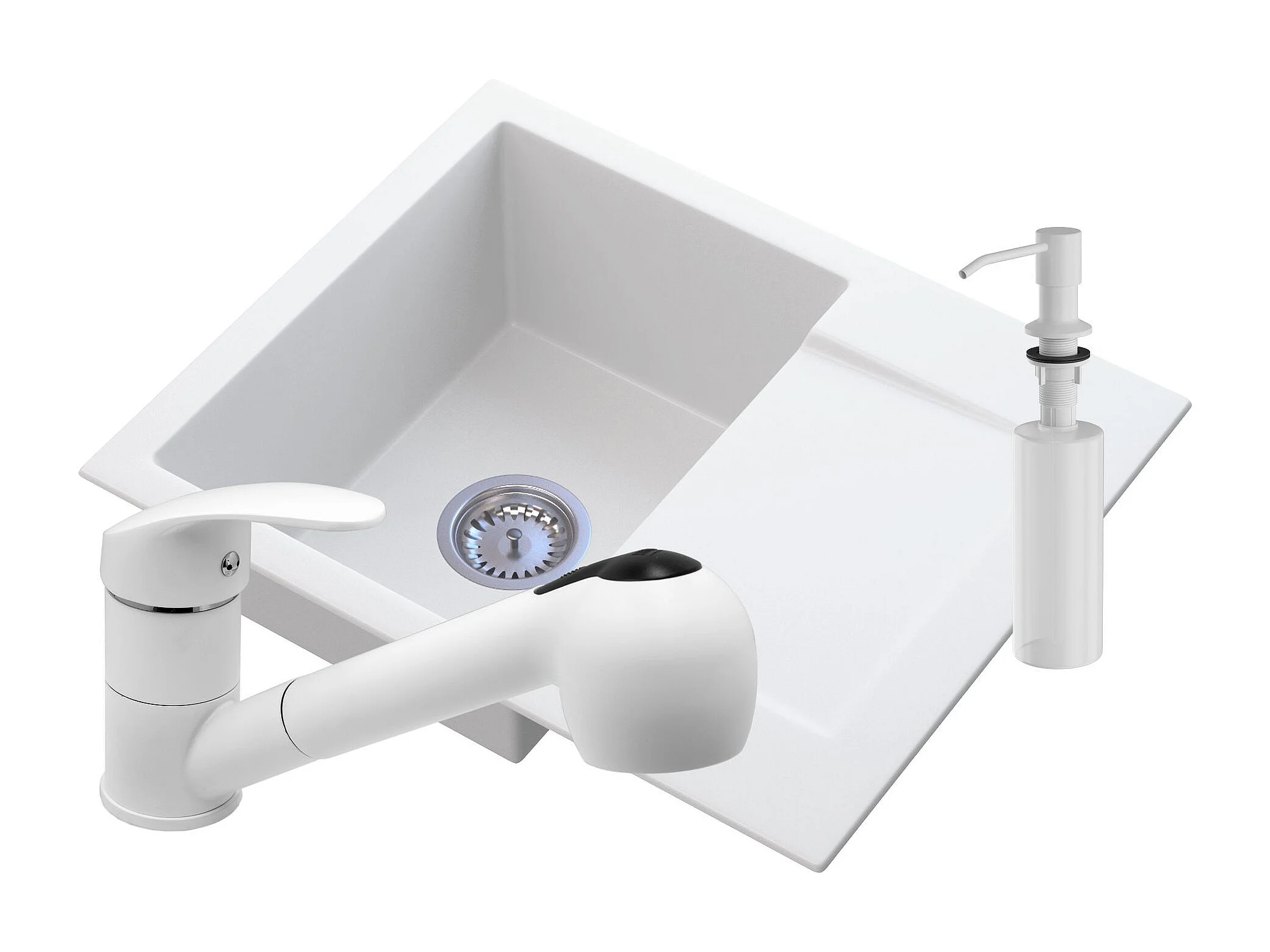 ÉVIER EN GRANIT + MITIGEUR EXTRACTIBLE + DISTRIBUTEUR +SIPHON