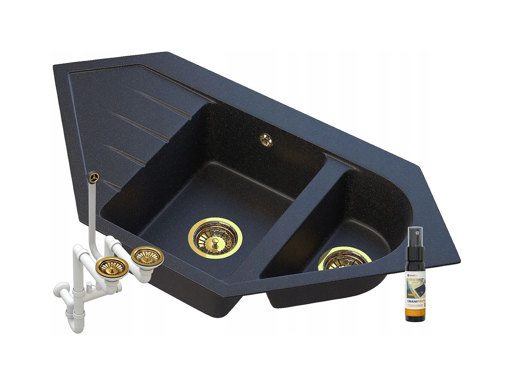 ÉVIER EN GRANIT NOIR AVEC DES GOUTTES D'OR