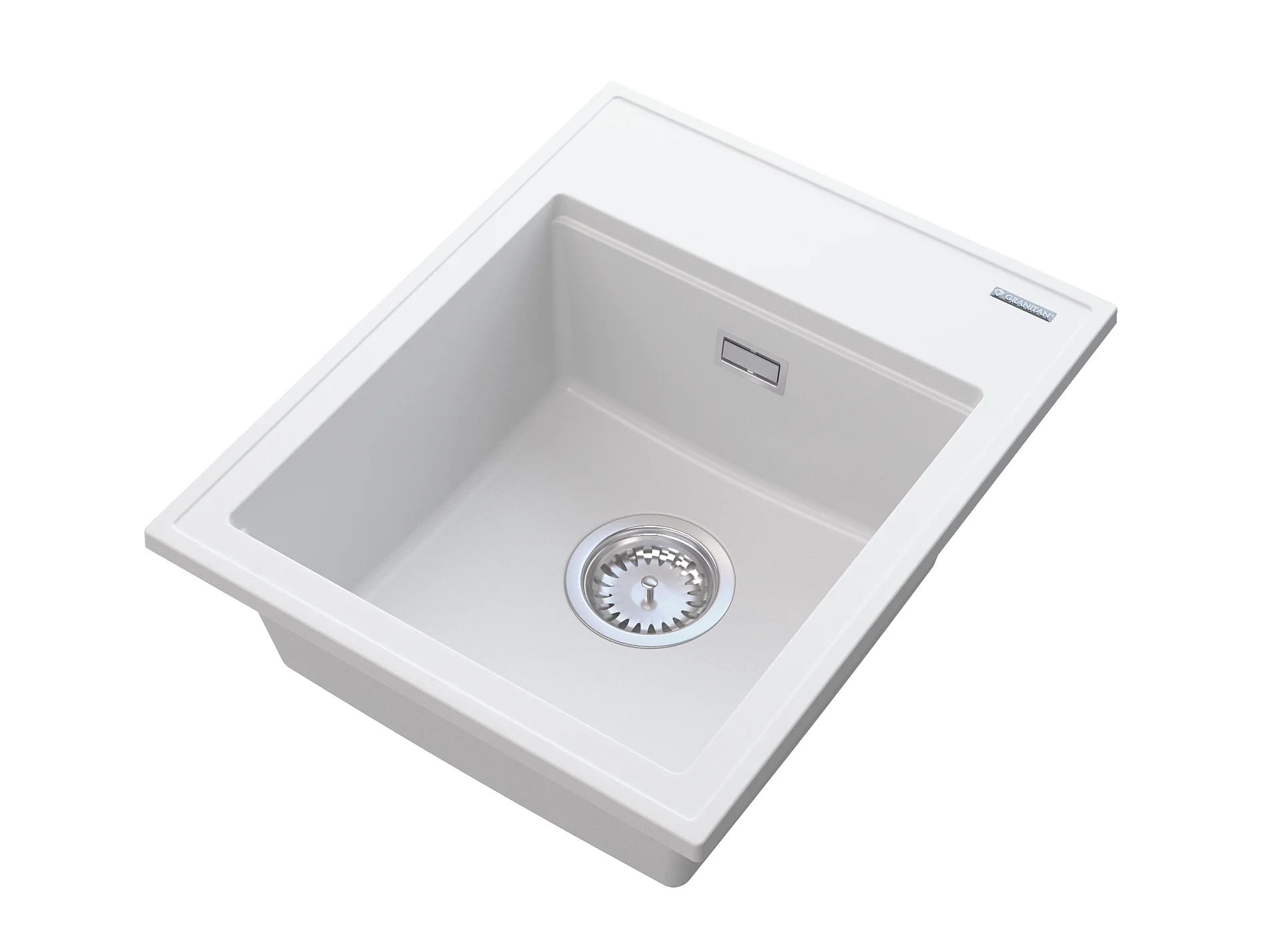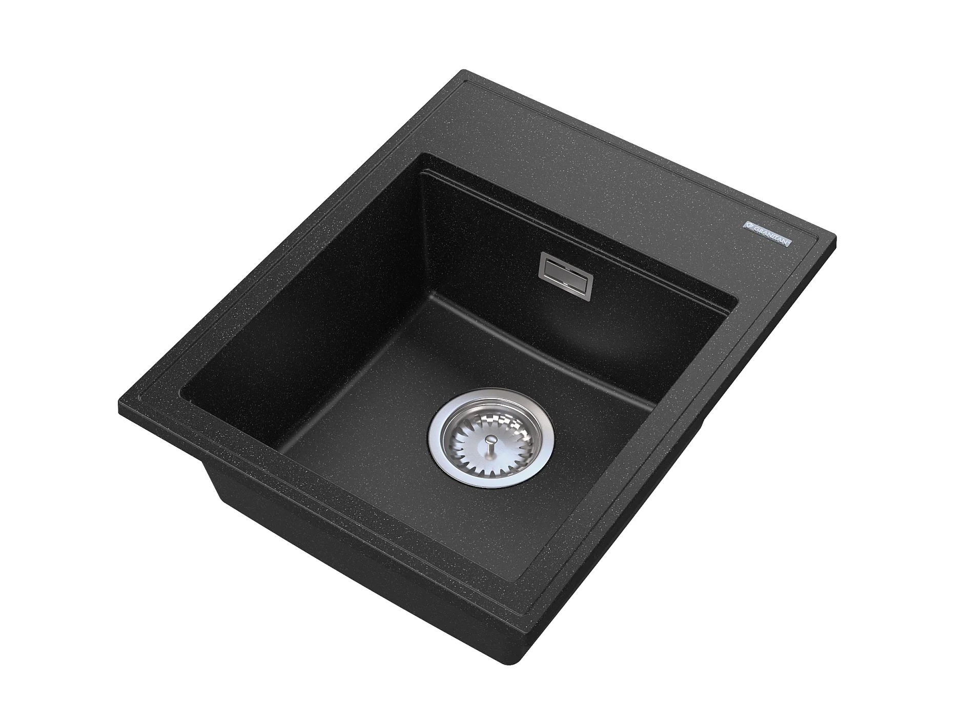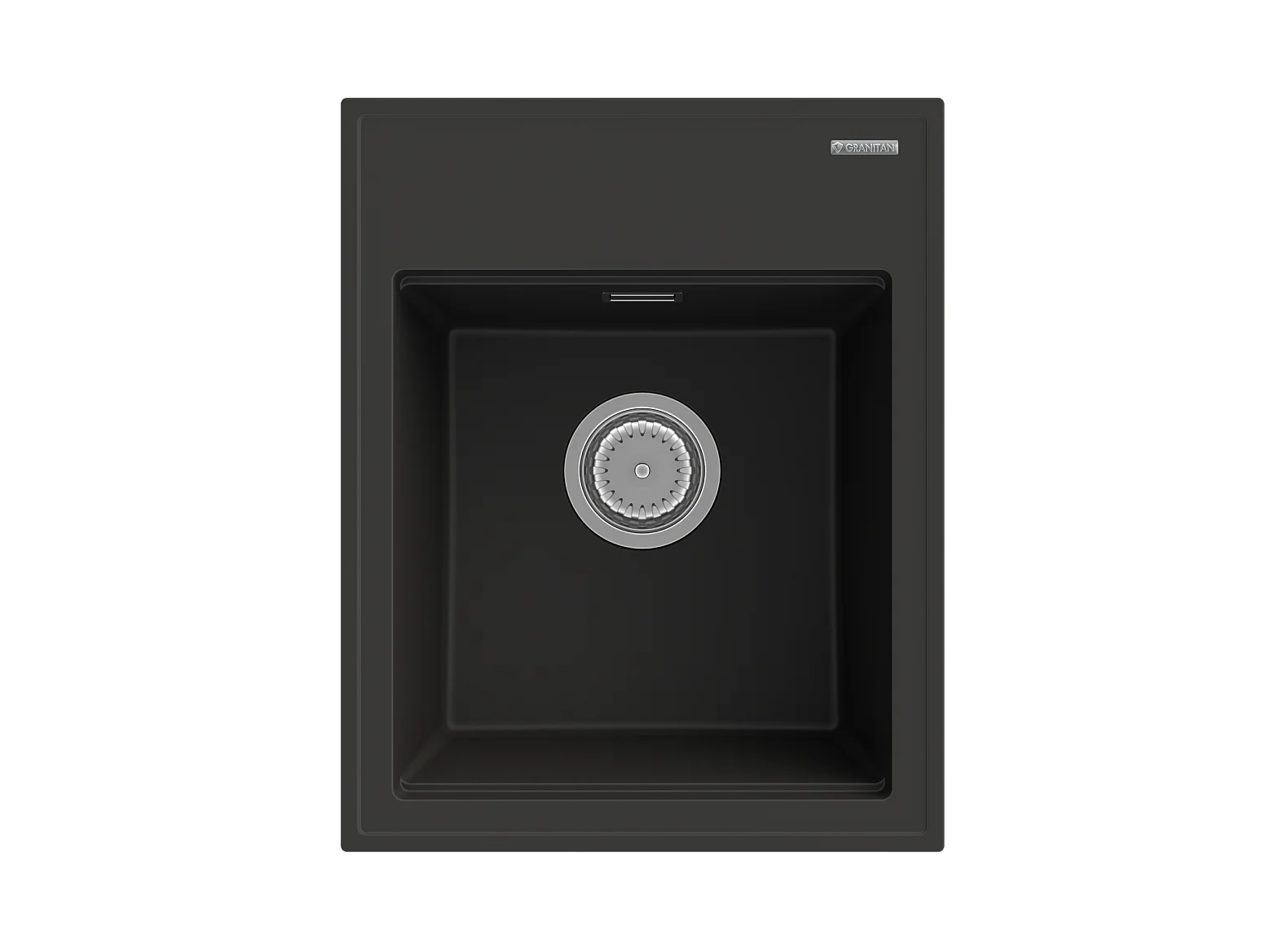 ÉVIER EN GRANIT NOIR AVEC SIPHON CHROMÉ ALOR