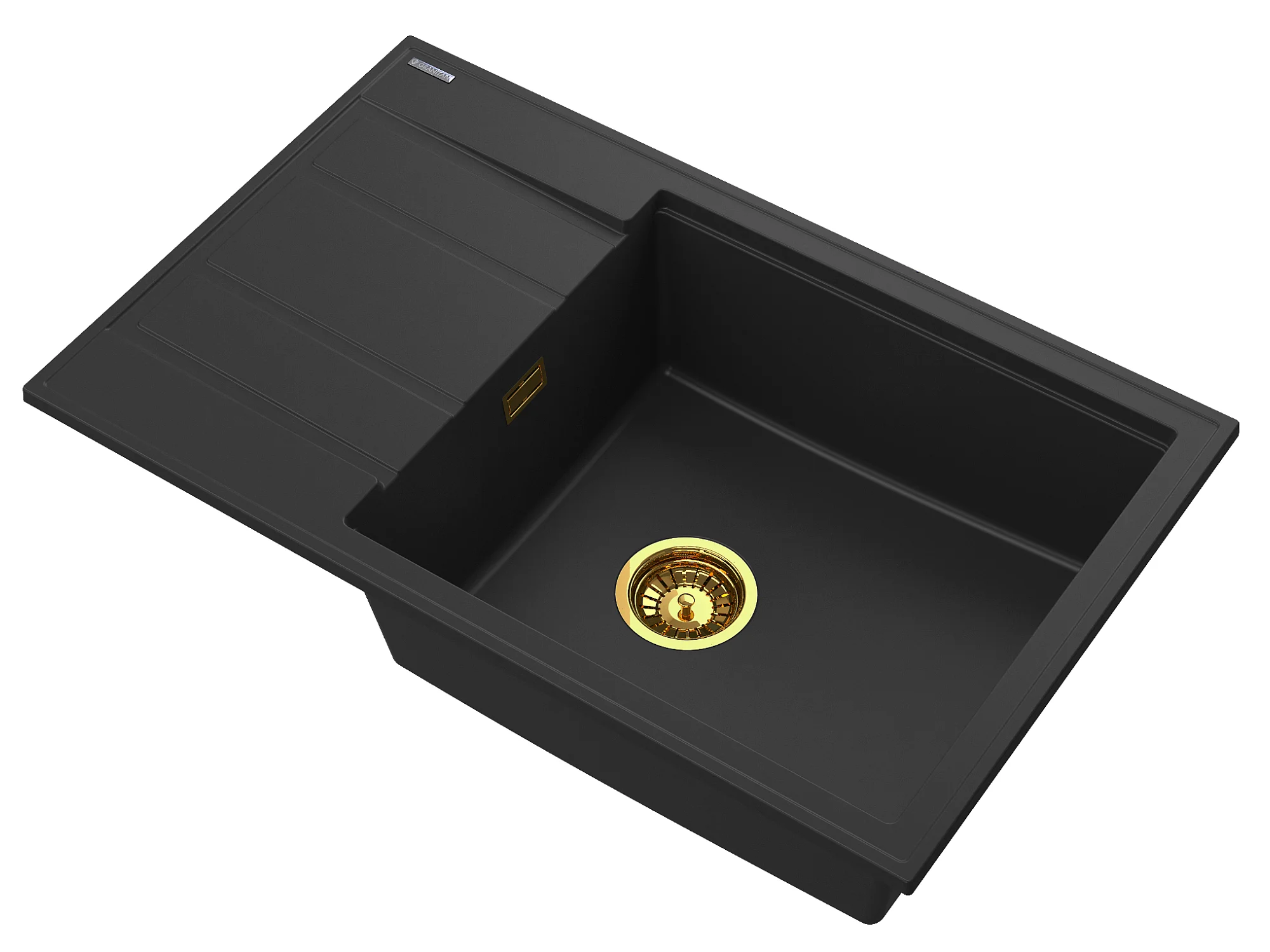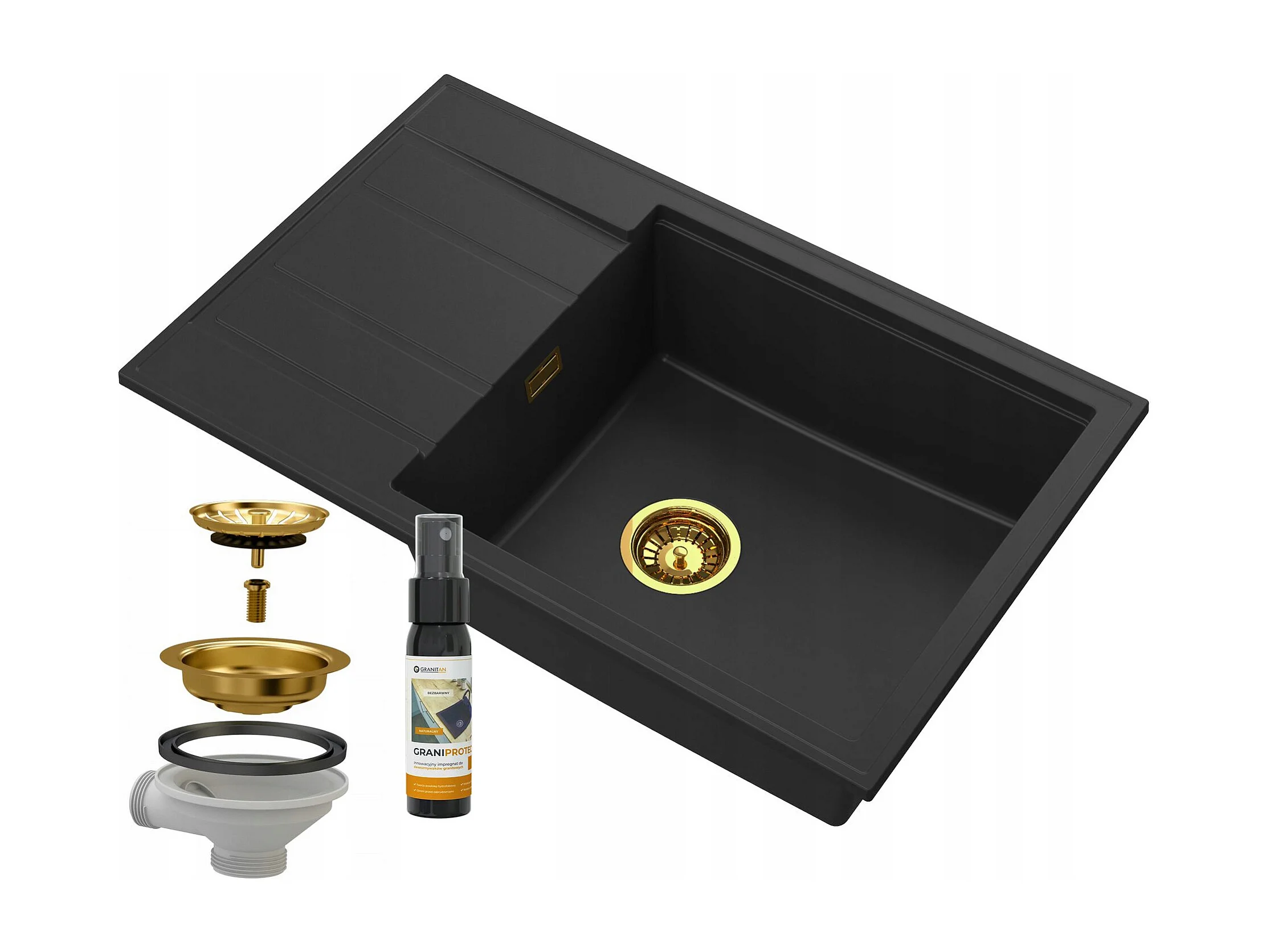 ÉVIER EN GRANIT NOIR LOUIS ÉGOUTTOIR SIPHON OR