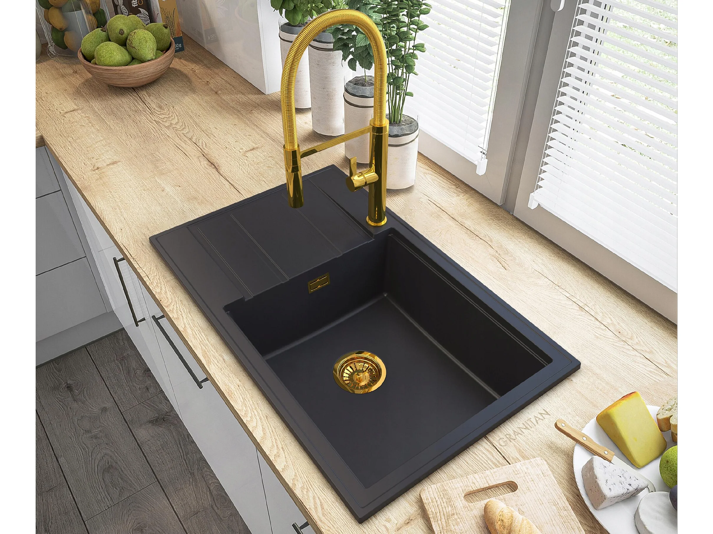 ÉVIER EN GRANIT NOIR LOUIS SIPHON GOLD BAT HIGH