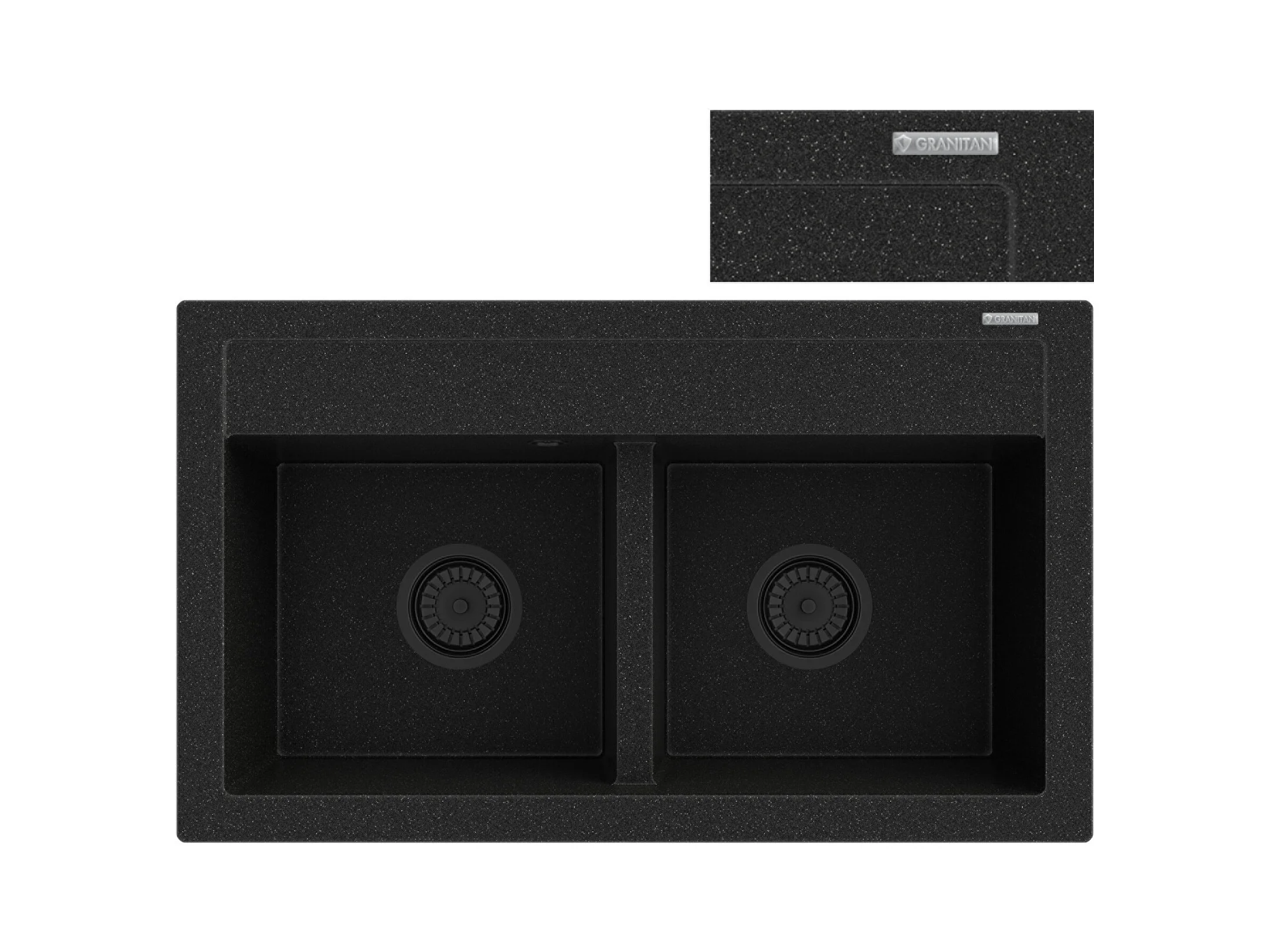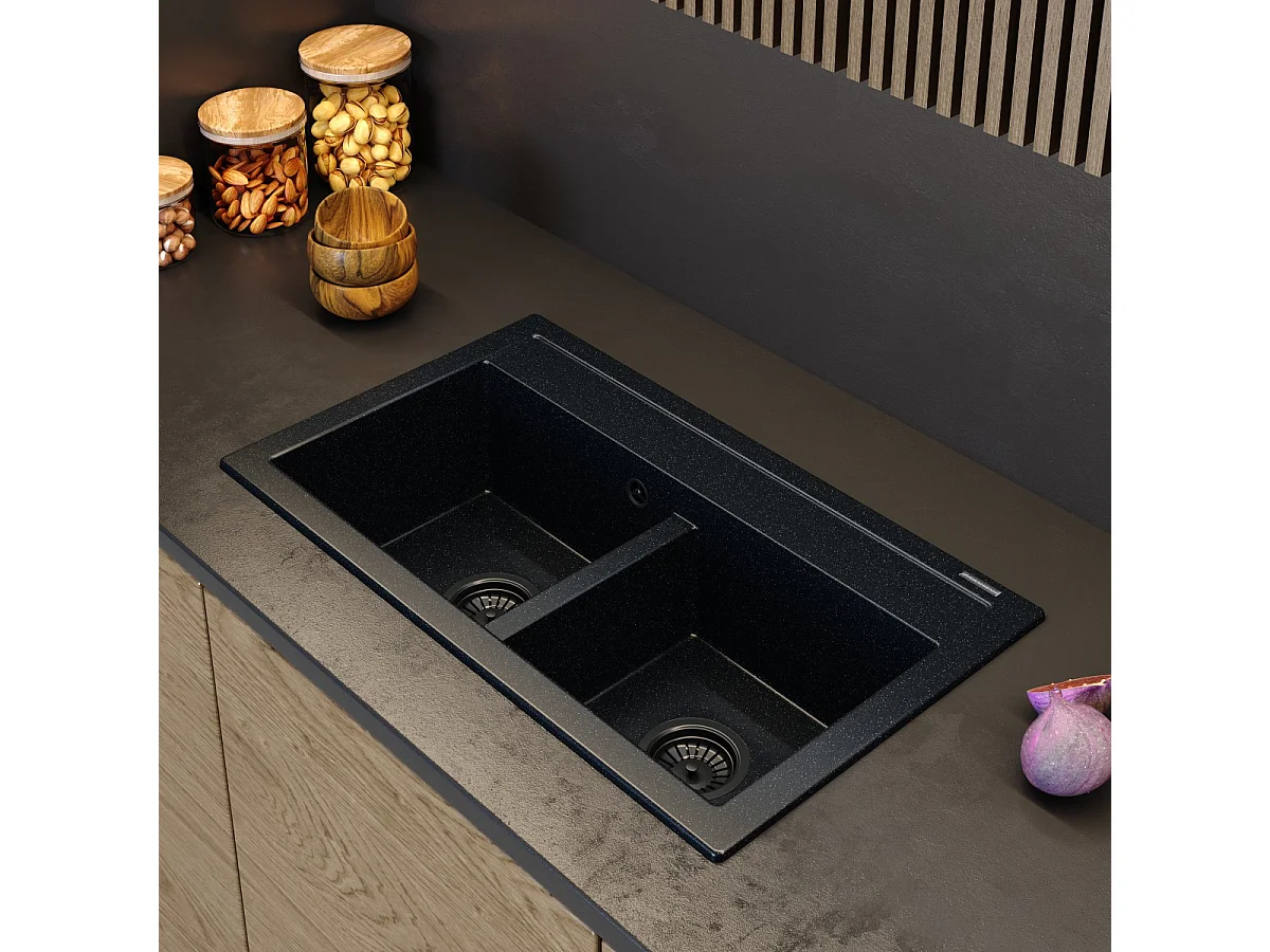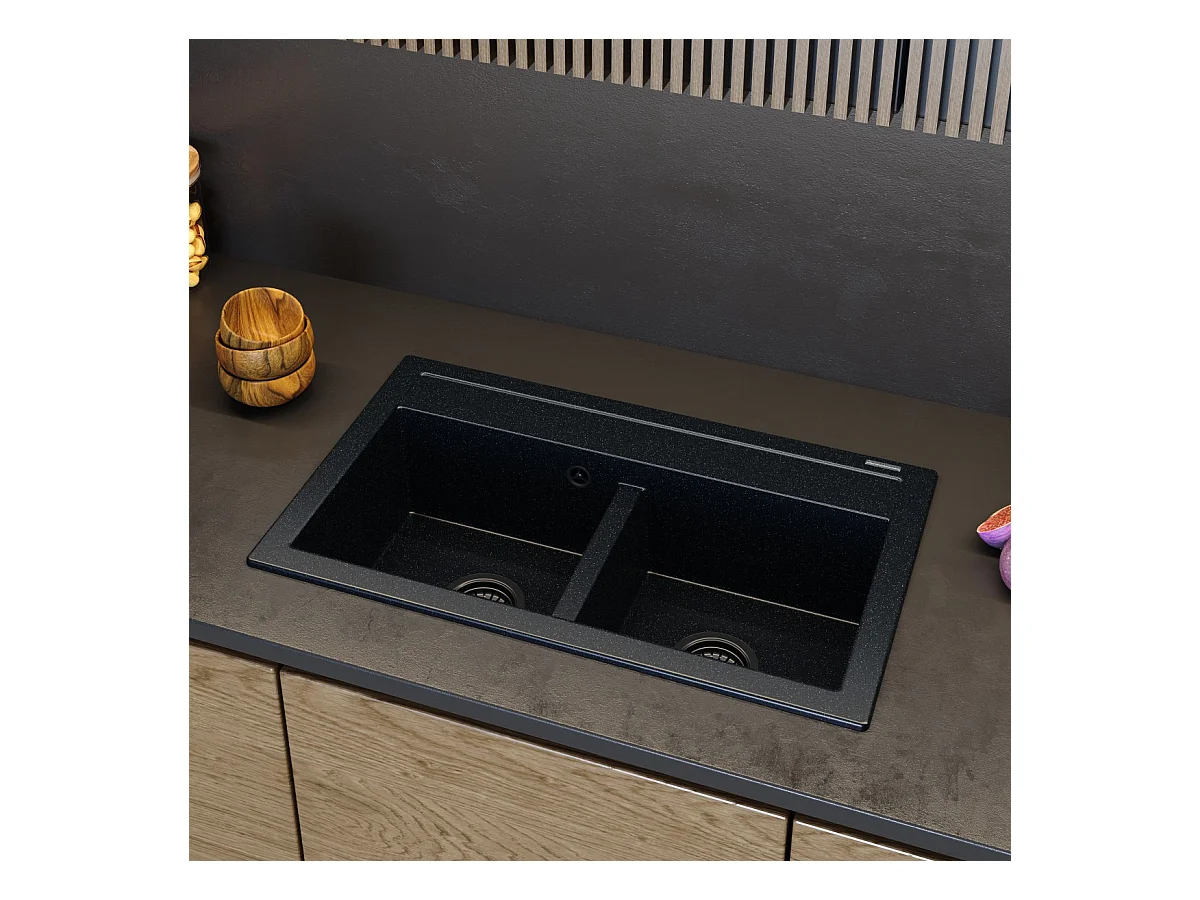 ÉVIER EN GRANIT NOIR MÉTALLIQUE SIPHON DUET
