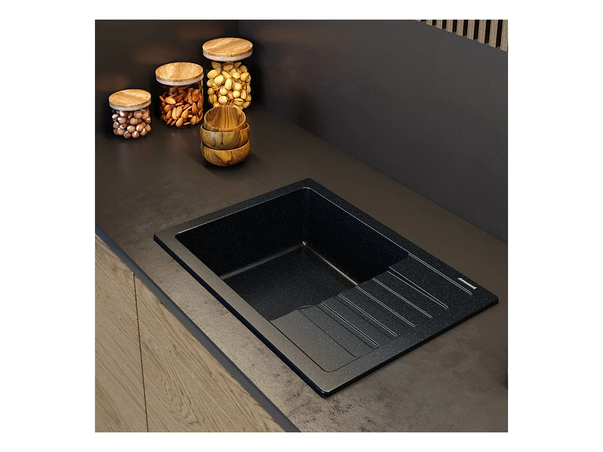 ÉVIER EN GRANIT NOIR MÉTALLISÉ SIPHON ARGOS